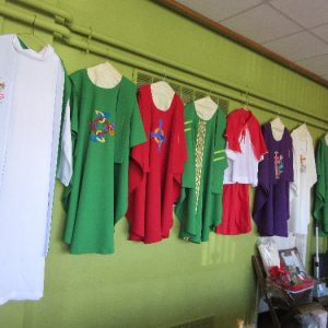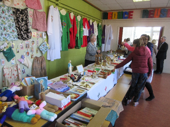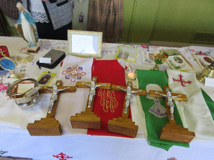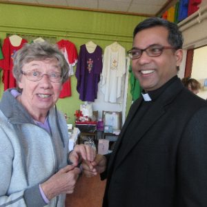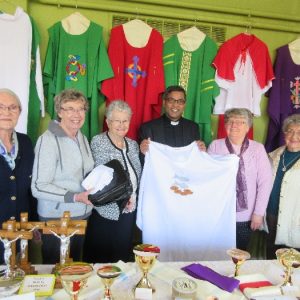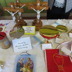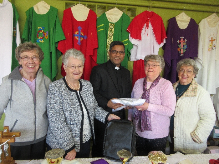 On Sunday 29th April the local branch of the Apostolic Workers held their annual display in St. Patrick’s Comprehensive School. The work of the past year was on display before it begins its journey to the missions. Our thanks to all the members and to the many parishioners who support this very important and valuable work of assisting the missions. The local branch presented Fr. Francis Xavier with a set of vestments and Mass Kit for him to bring home to India as a mark of appreciation for the new link and connection the parish has with his presence and the church in India.