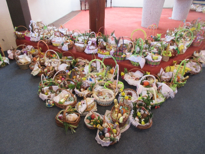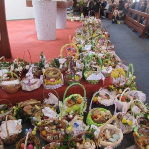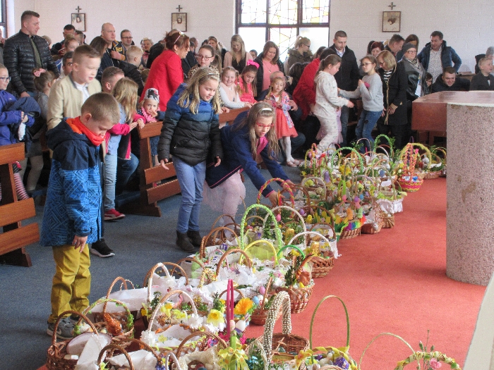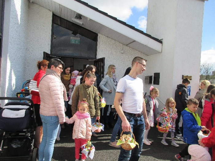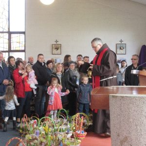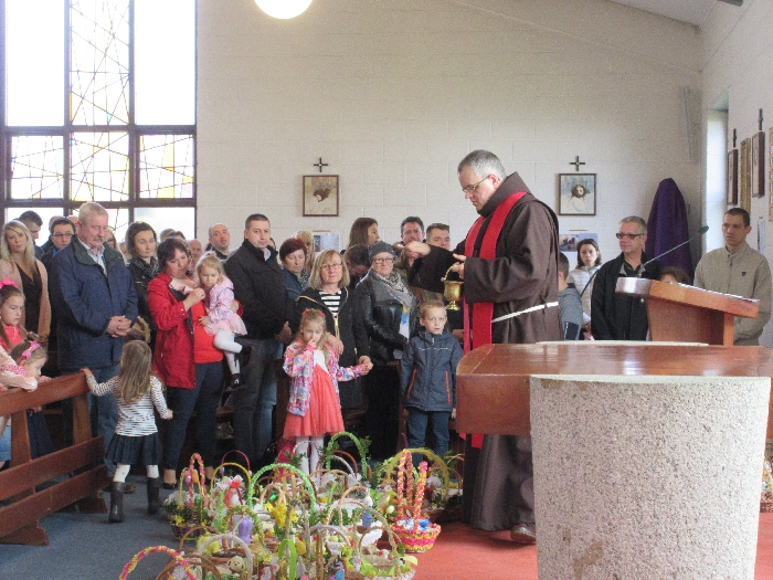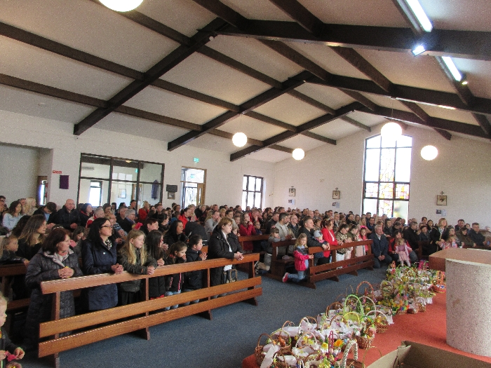 Fr Tom presided at the annual gathering of Polish people and people from other countries who come on Holy Saturday to SS John & Paul Church for the Annual Blessing of Food. This beautiful tradition has come to us in Ireland from Poland. On Holy Saturday people come to Church to have the food for Easter Breakfast blessed in thanksgiving for the gift of Christ’s Resurrection. Our thanks to Michelle Justice for the photos.