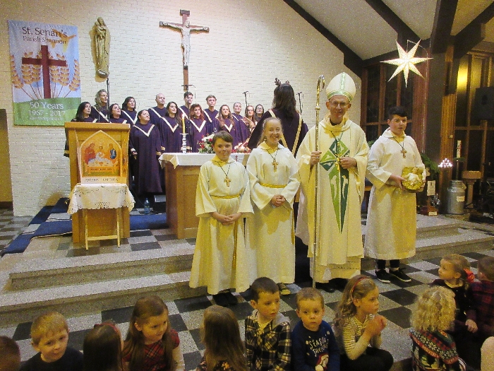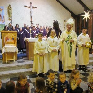 Bishop Fintan Monahan began our celebration of Christmas in Shannon when he celebrated Mass for children and young people in Mary Immaculate Church. This celebration was exactly 50 years to the day when when Shannon parishioners first gathered in Mary Immaculate Church for the first time as an Independent Parish. Shannon Gospel Choir provided the music and Maria and Orlaith from our Youth ministry co-ordinated the Liturgy.