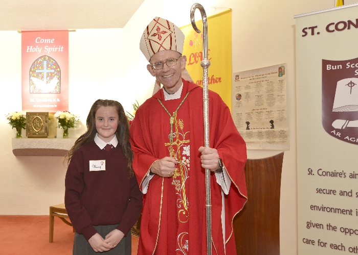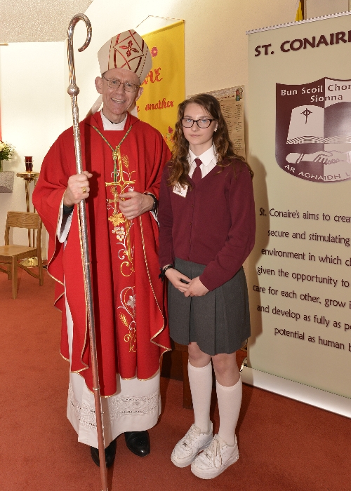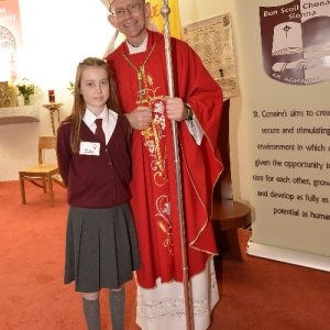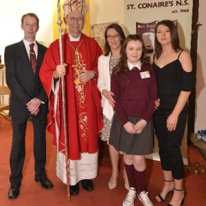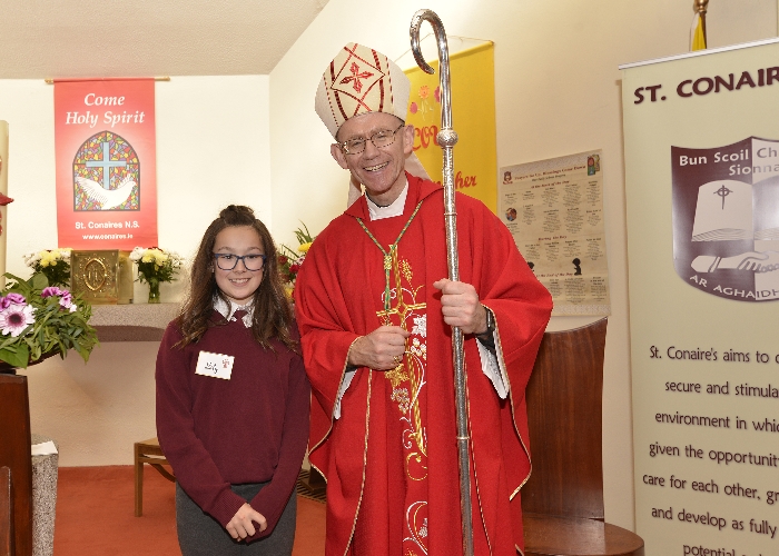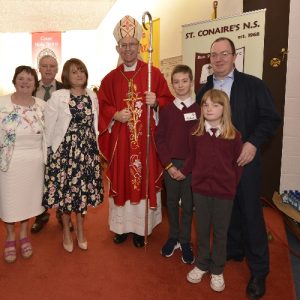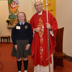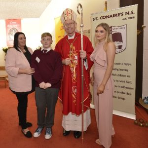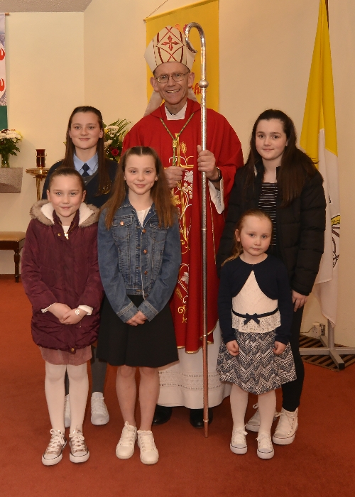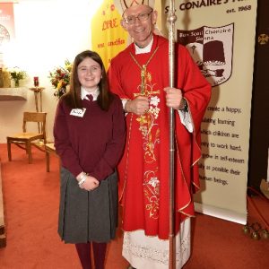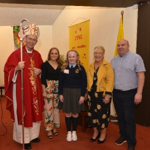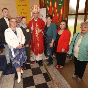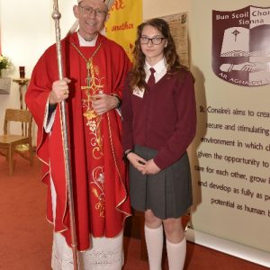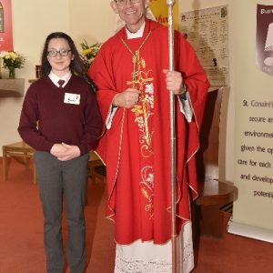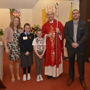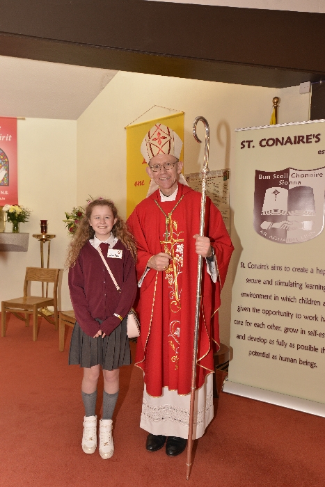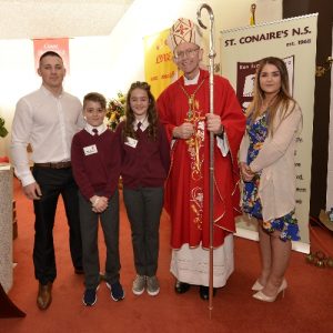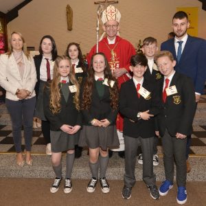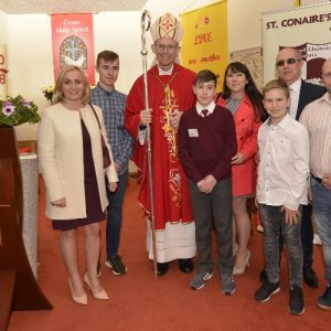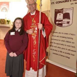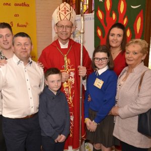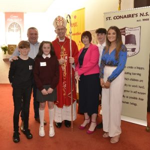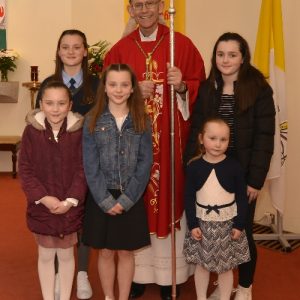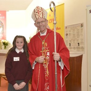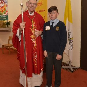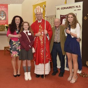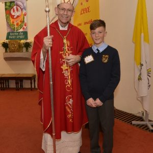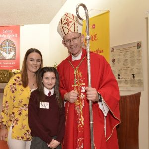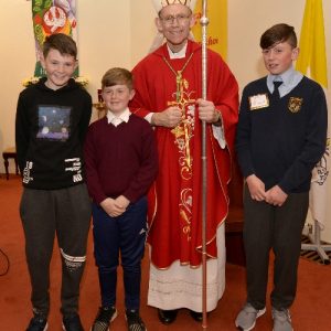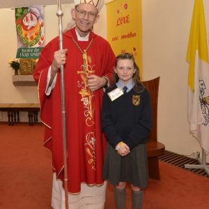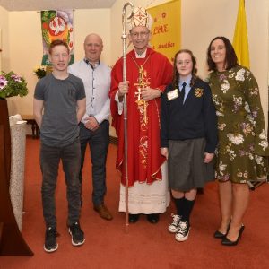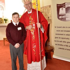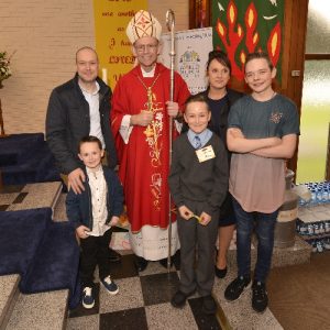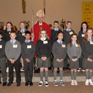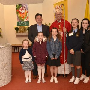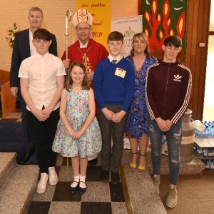 On Tuesday 17th April we welcomed Bishop Fintan to the parish where he confirmed 42 pupils from St. Conaire’s school at a ceremony in SS John & Paul Church. The school choir provided beautiful instrumental music and singing for the occasion. After the ceremony Bishop Fintan spent time with the teachers and families. On Wednesday 18th April, Bishop Fintan began the day by confirming 41 pupils from St Senan’s, St Tola’s, Gaelscoil Donncha Rua, St John’s, and one pupil from St Anne’s School, Ennis at a ceremony in Mary Immaculate Church.