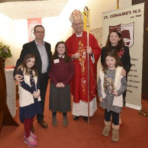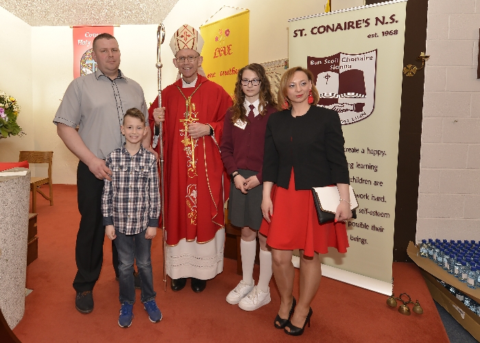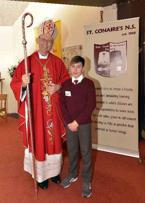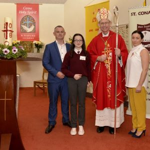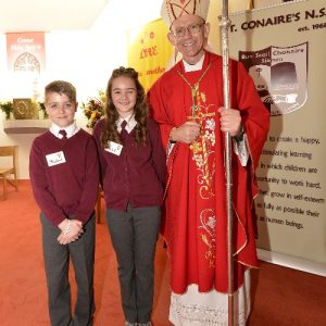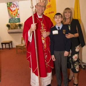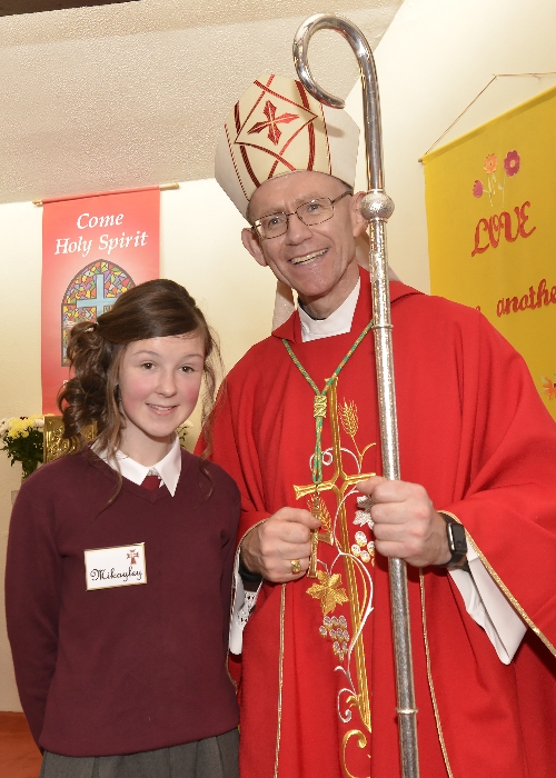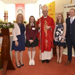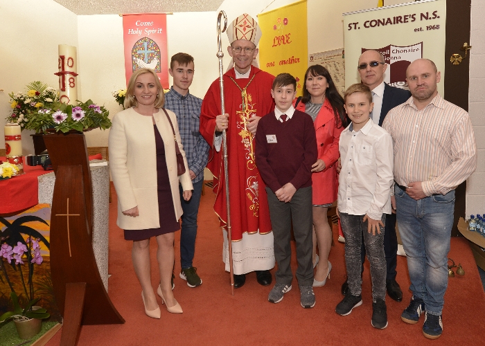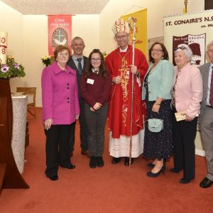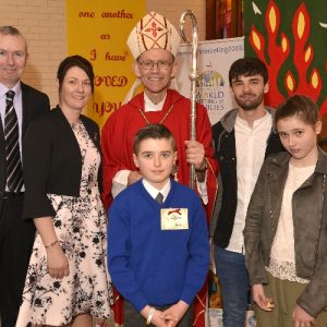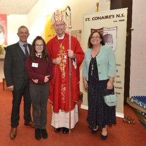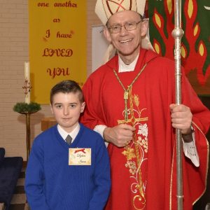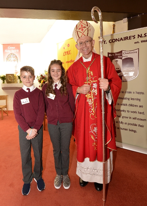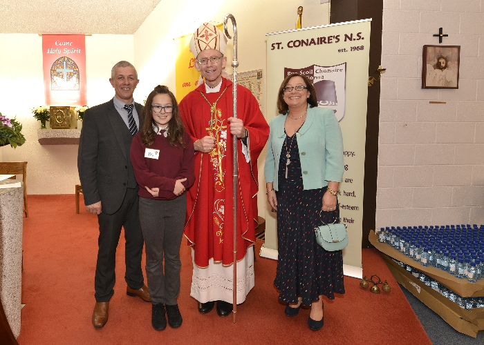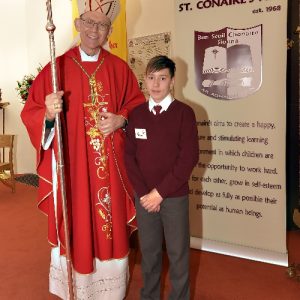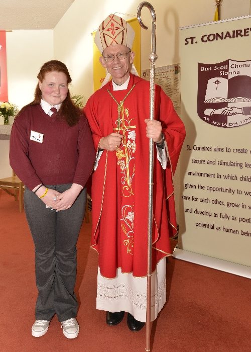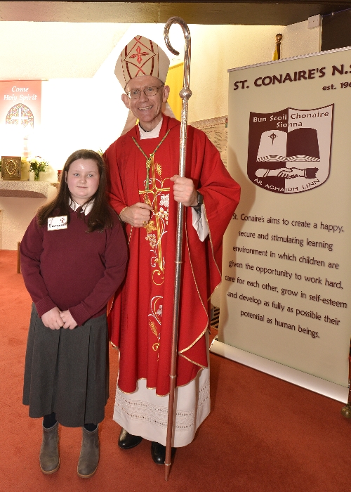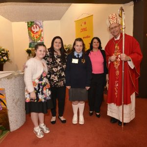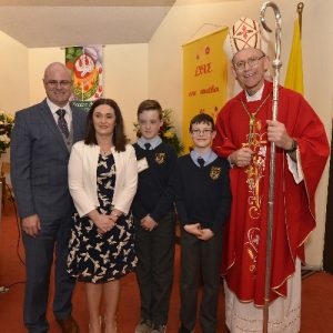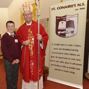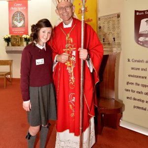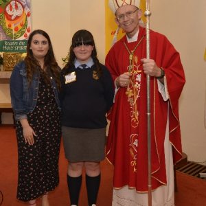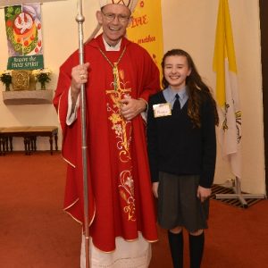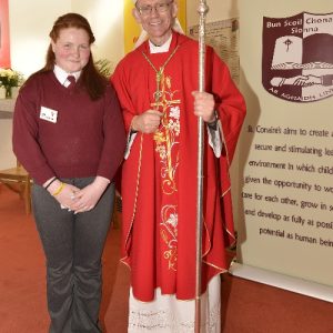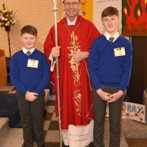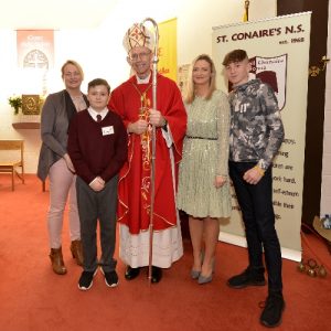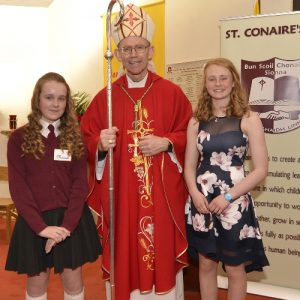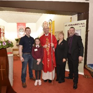 On Tuesday 17th April we welcomed Bishop Fintan to the parish where he confirmed 42 pupils from St. Conaire’s school at a ceremony in SS John & Paul Church. The school choir provided beautiful instrumental music and singing for the occasion. After the ceremony Bishop Fintan spent time with the teachers and families. On Wednesday 18th April, Bishop Fintan began the day by confirming 41 pupils from St Senan’s, St Tola’s, Gaelscoil Donncha Rua, St John’s, and one pupil from St Anne’s School, Ennis at a ceremony in Mary Immaculate Church.