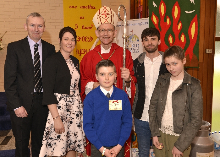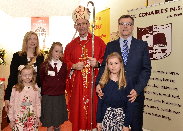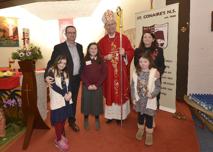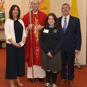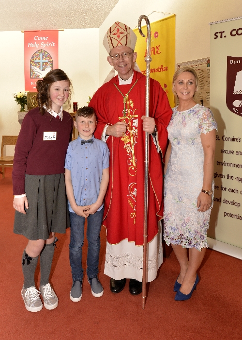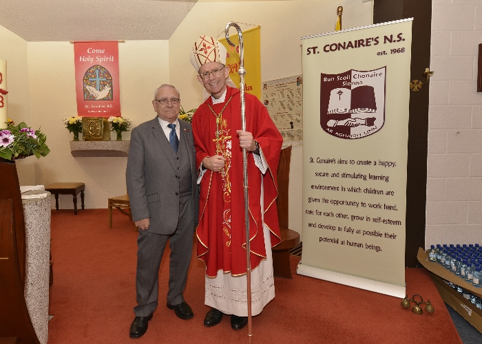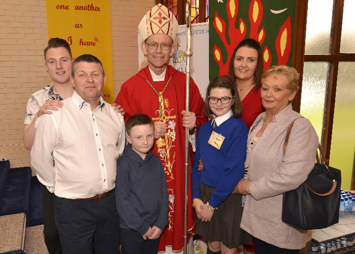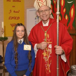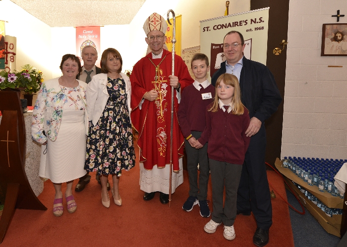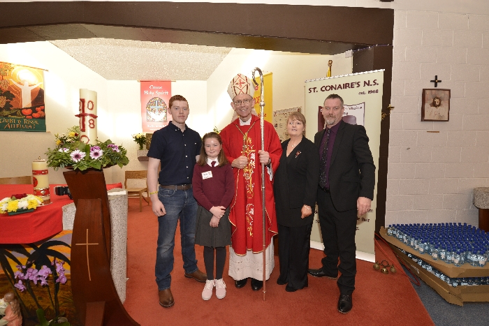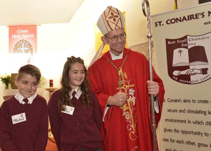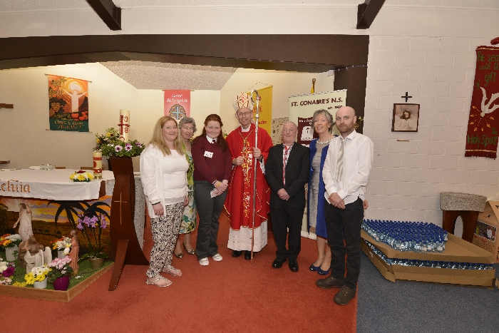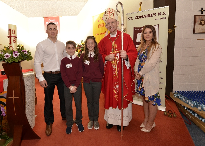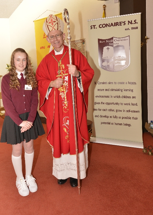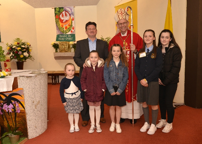 On Tuesday 17th April we welcomed Bishop Fintan to the parish where he confirmed 42 pupils from St. Conaire’s school at a ceremony in SS John & Paul Church. The school choir provided beautiful instrumental music and singing for the occasion. After the ceremony Bishop Fintan spent time with the teachers and families. On Wednesday 18th April, Bishop Fintan began the day by confirming 41 pupils from St Senan’s, St Tola’s, Gaelscoil Donncha Rua, St John’s, and one pupil from St Anne’s School, Ennis at a ceremony in Mary Immaculate Church.