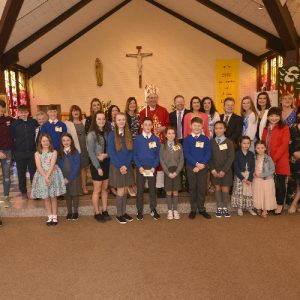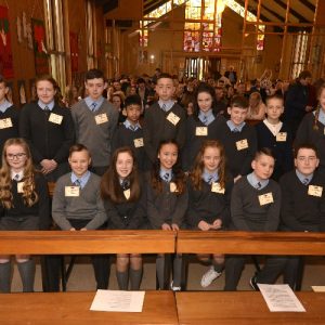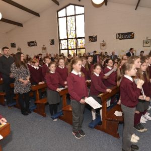 This year the host choir was from St. Senan’s school conducted by Kate Lynch with organist Annette Ahlsved. In the afternoon Bishop Fintan concluded his visit to the parish with the celebration of Confirmation for 41 pupils from St. Aidan’s School. Renee Hayes conducted the choir with Doireann Wylde and Don O’Sullivan joining musicians from the school. Our thanks to all involved in helping our young people prepare for the sacrament, our teachers, school staff, Faith Friends Leaders, our sacristans, Mary Coneely and Michelle Justice, Joe Buckley for photographs and Theresa Campbell, our website manager. Our thanks to Joe Buckley for the photos.