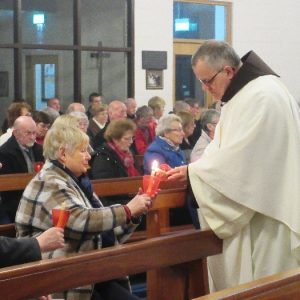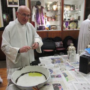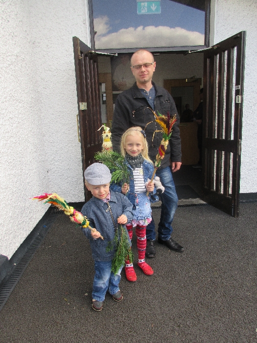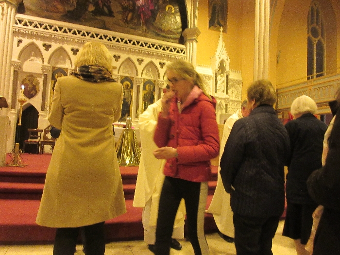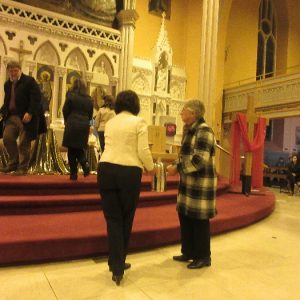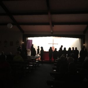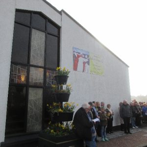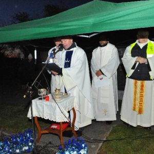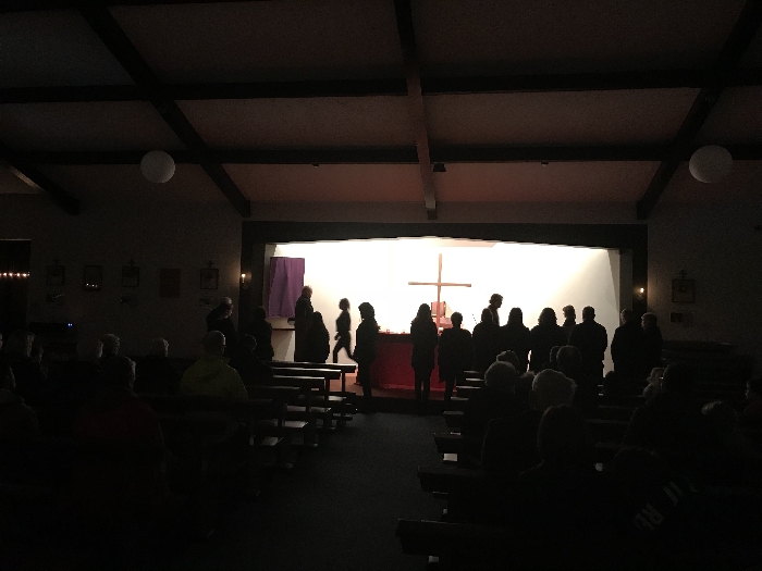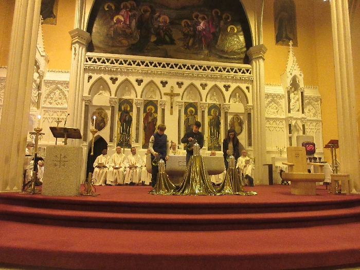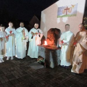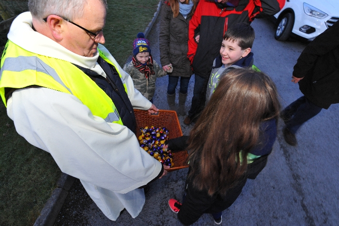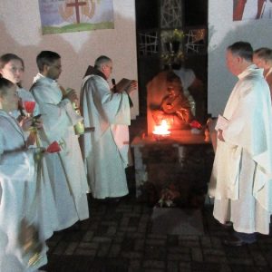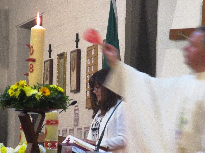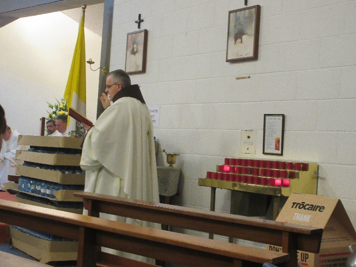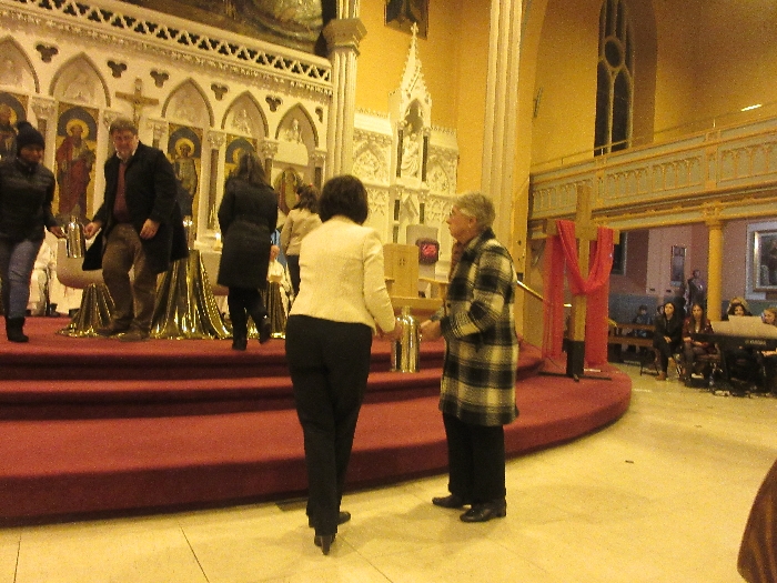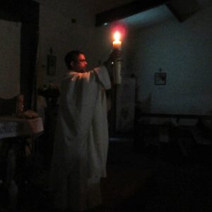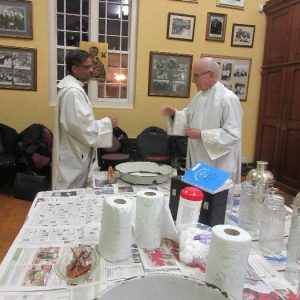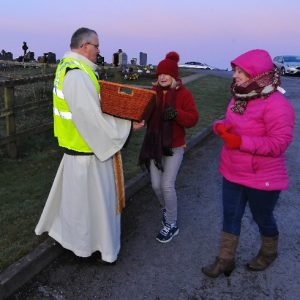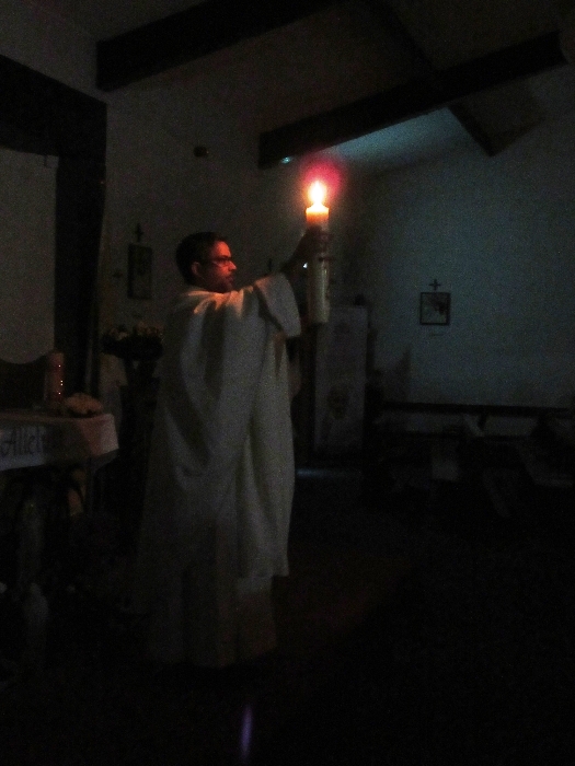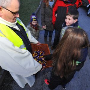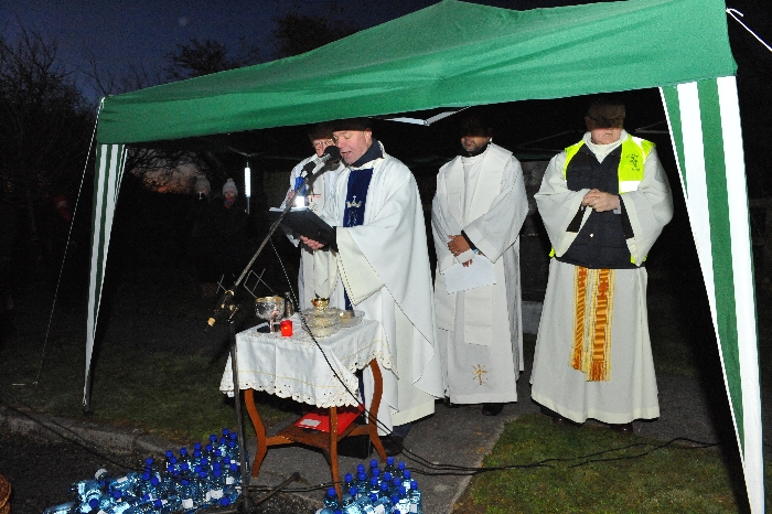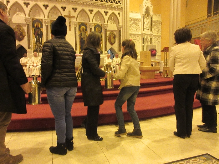 The oil of Cathecumen used in Baptism , the oil of Chrism used in Baptism, Confirmation and Ordination and the oil of the Sick. Bishop Fintan invites the priests present with the support of the people to renew their Priestly commitment. After Mass the priests gathered in the Chapter Room of the Cathedral to bring the Holy oils home to their respective parishes. All the priests of the parish concelebrated the Mass of the Lord’s Supper on Holy Thursday evening in SS John & Paul Church. Fr Arnold was the principal celebrant and washed the feet of some parishioners. Mary Hynds, on behalf of parishioners, invited the priests to renew their commitment to priesthood. At the end of the Mass the procession to the Altar of repose in Cuan Na nÓg took place where a vigil of watching and waiting was held until 10pm. The highlight of Holy week is the Easter Vigil. This year it was celebrated in SS. John & Paul Church at 9pm on Holy Saturday.