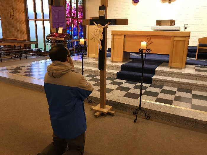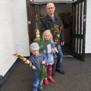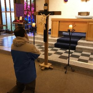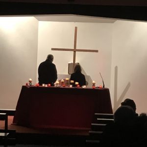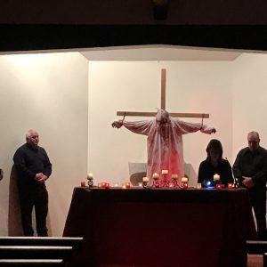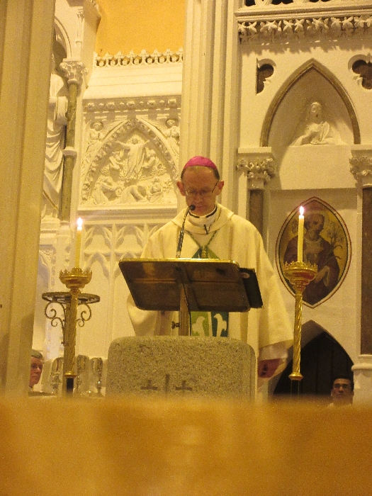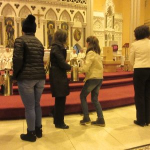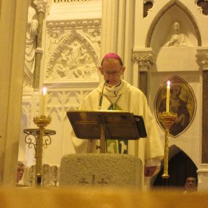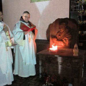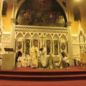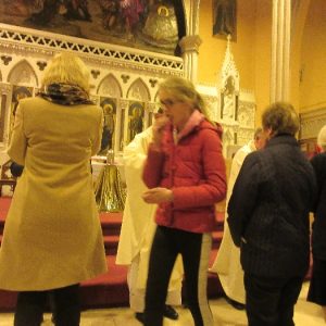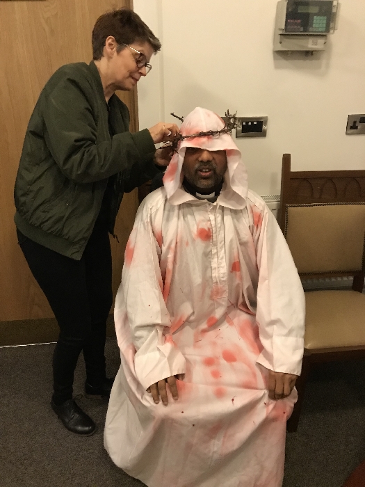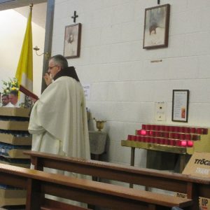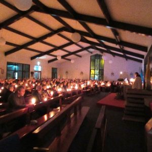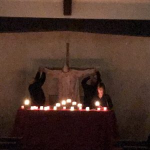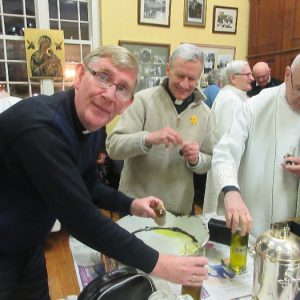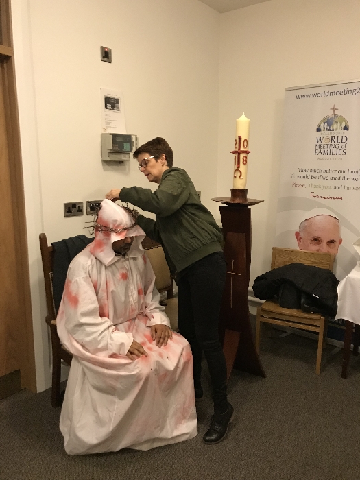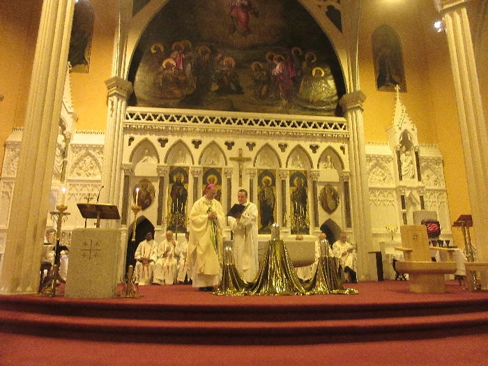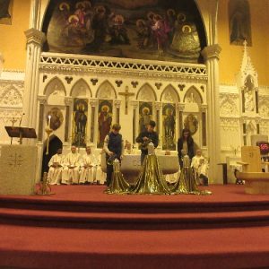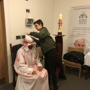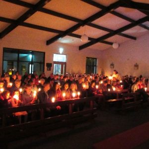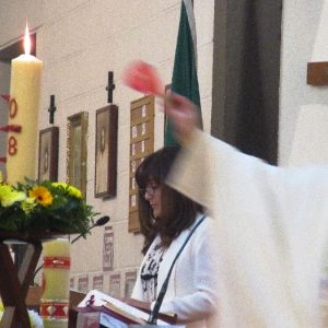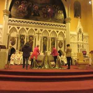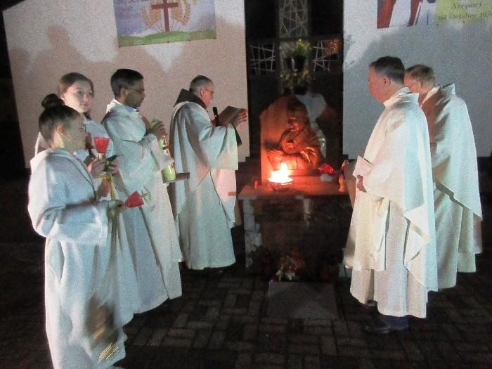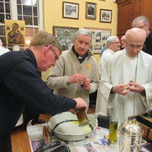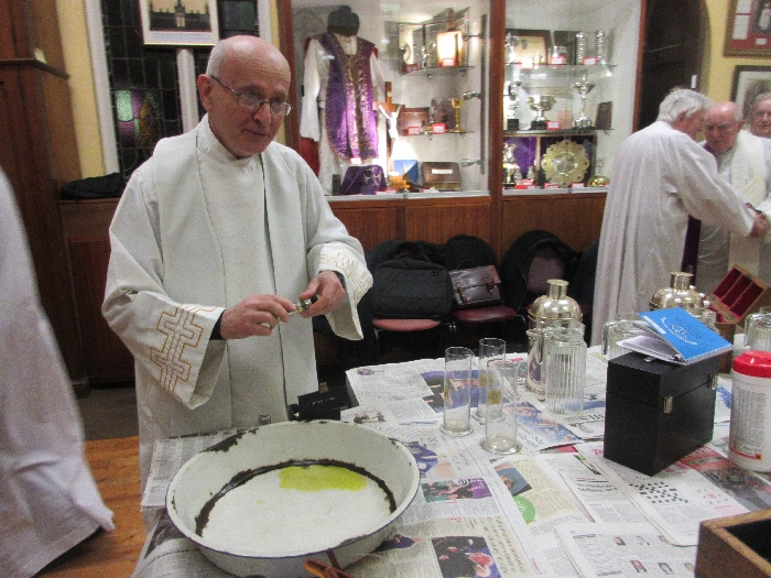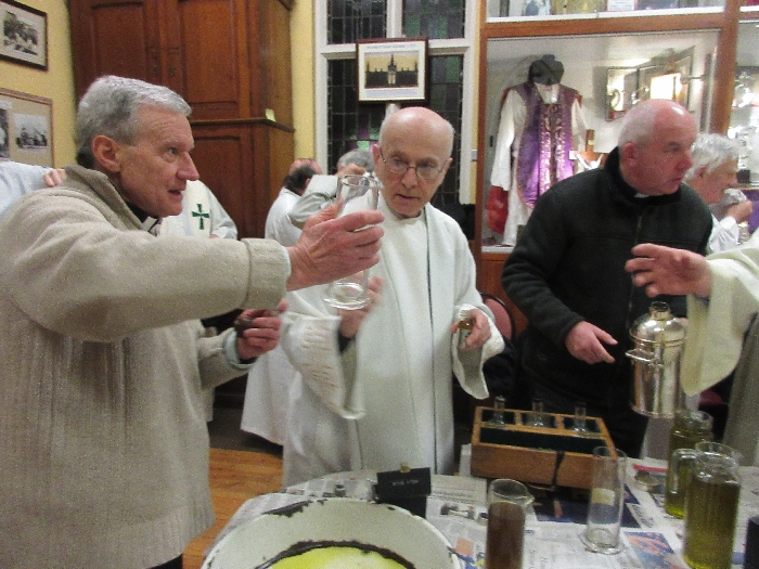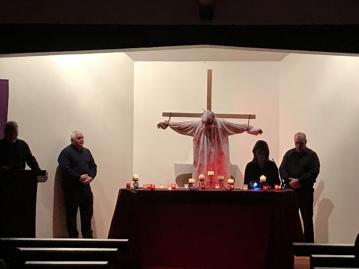 The oil of Cathecumen used in Baptism , the oil of Chrism used in Baptism, Confirmation and Ordination and the oil of the Sick. Bishop Fintan invites the priests present with the support of the people to renew their Priestly commitment. After Mass the priests gathered in the Chapter Room of the Cathedral to bring the Holy oils home to their respective parishes. All the priests of the parish concelebrated the Mass of the Lord’s Supper on Holy Thursday evening in SS John & Paul Church. Fr Arnold was the principal celebrant and washed the feet of some parishioners. Mary Hynds, on behalf of parishioners, invited the priests to renew their commitment to priesthood. At the end of the Mass the procession to the Altar of repose in Cuan Na nÓg took place where a vigil of watching and waiting was held until 10pm. The highlight of Holy week is the Easter Vigil. This year it was celebrated in SS. John & Paul Church at 9pm on Holy Saturday.