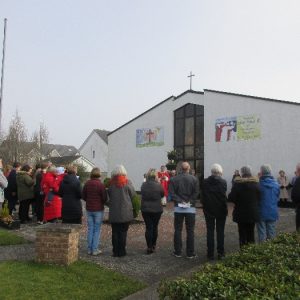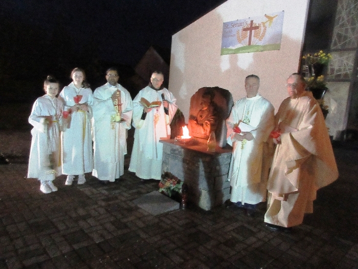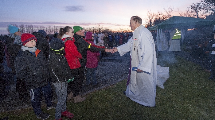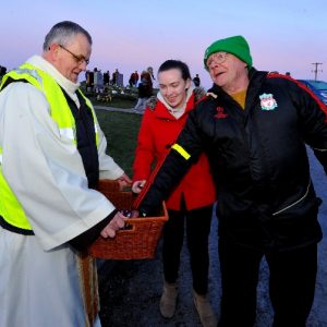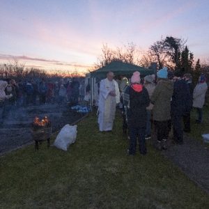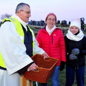 All the priests of the parish concelebrated and Fr Tom presided. The Blessing of the Easter fire took place in the Jubilee Garden of SS John & Paul Church. The Senior Choir of the Church, under the direction of Mary Lahiff, enhanced the celebration with beautiful music and singing. As the Dawn broke in Shannon on Easter Sunday hundreds of people gathered in the cold but beautiful morning in Illaunmanagh Cemetery for the celebration of Dawn Easter Mass. Fr Arnold celebrated the Eucharist, assisted by the priests of the parish. The Folk Group provided the music and singing and thanks to Christy Collins and Colin Fogarty for the Easter Fire. Our thanks to Michelle Justice and Joe Buckley for the photos.