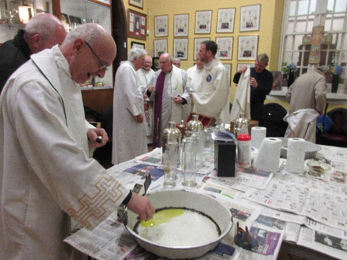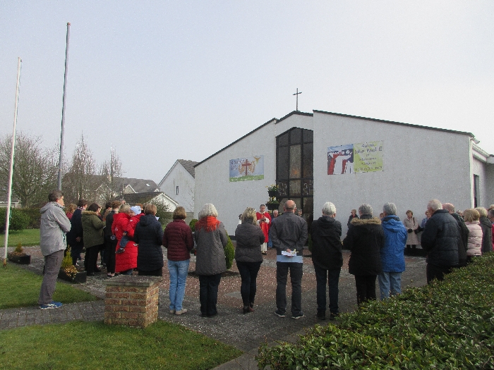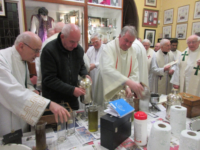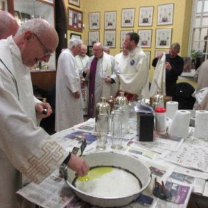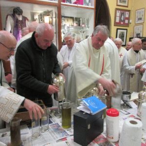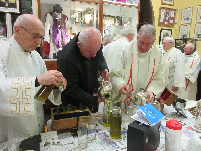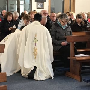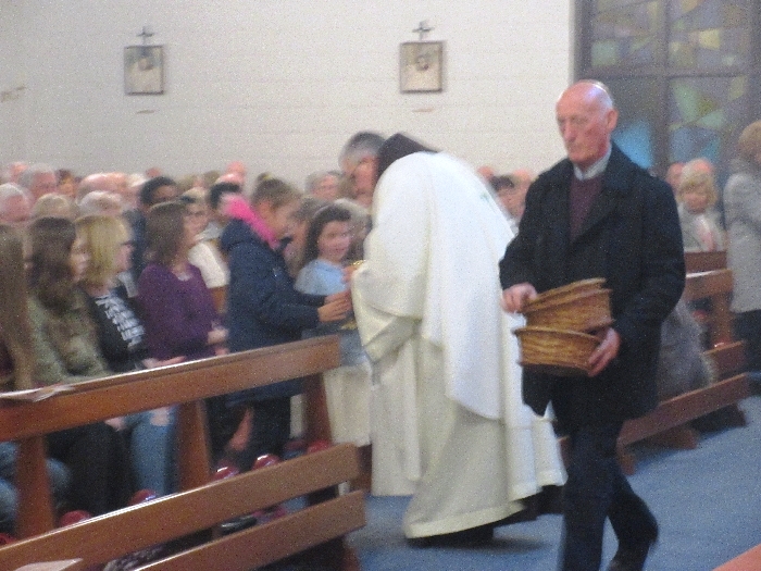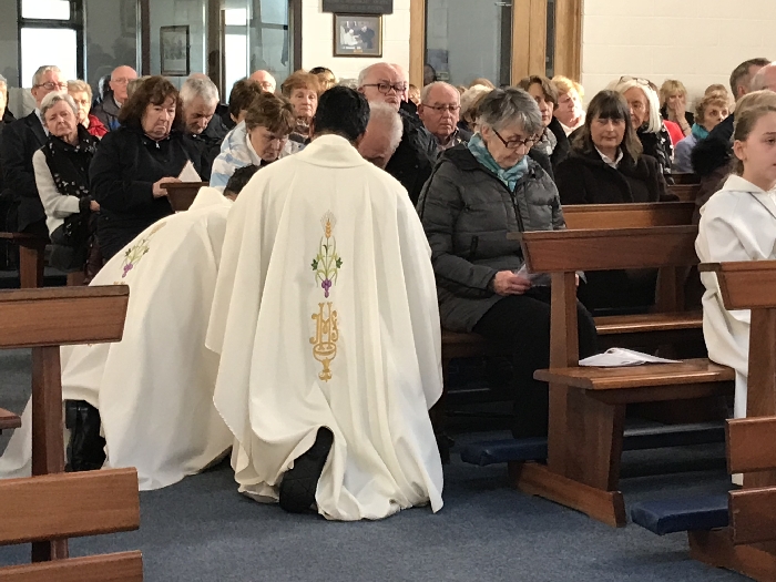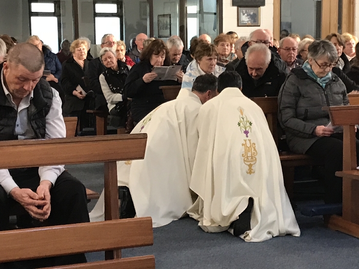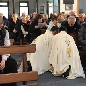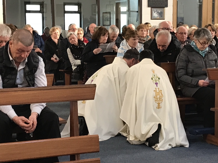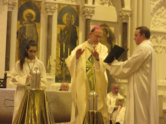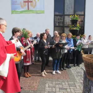Holy Week celebrations began at the Vigil Mass on Saturday evening when Fr. Tom blessed the palm. At 10am on Sunday morning Fr. Arnold and the folk group led the Liturgy at the Jubilee Garden. Fr. Francis Xavier and the choir of Mary Immaculate Church continued the celebrations at 11am. Fr. Tom was joined by Bishop Willie Walsh and Fr. Peadar O’Loughlin SSC for the final Mass of Palm Sunday. The senior choir of SS John & Paul Church led by its director, Mary Lahiff, led the procession from the Jubilee Garden of SS John & Paul Church for the celebration of Sunday Eucharist. Our thanks to Michelle Justice for the photos. Bishop Fintan was joined by the Priests of the Diocese, our Deacon Martin Shanahan, and parishioners from many parishes throughout the Diocese for the annual Mass of Chrism in the Cathedral of SS. Peter & Paul Ennis on Wednesday evening. At this Mass the Holy Oils used in the celebration of the sacraments in the Diocese throughout the coming year were blessed by Bishop Fintan.