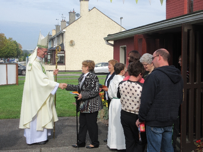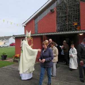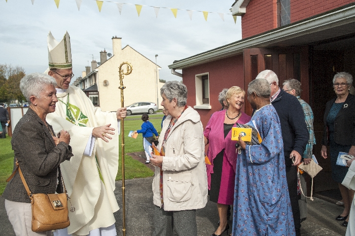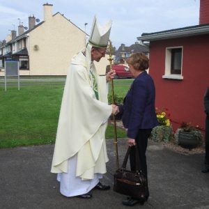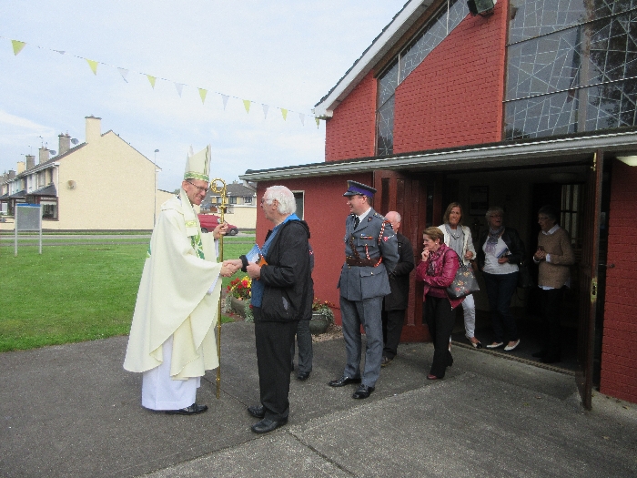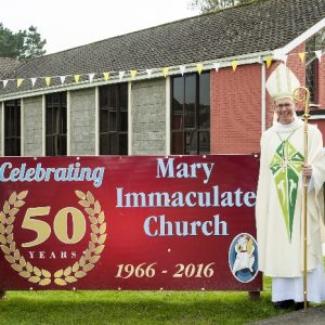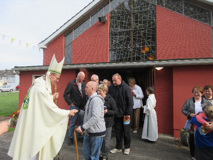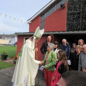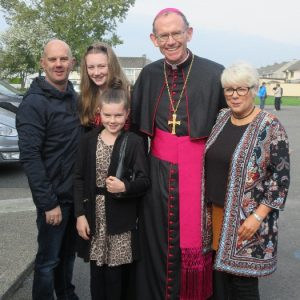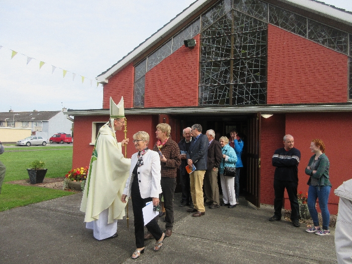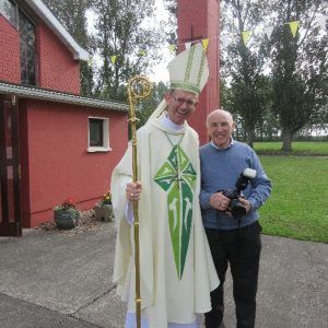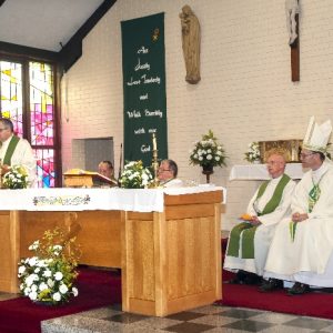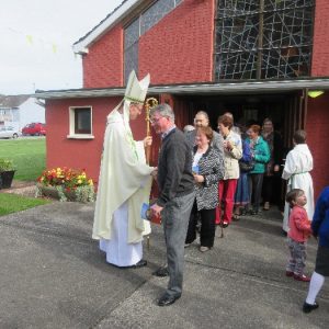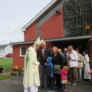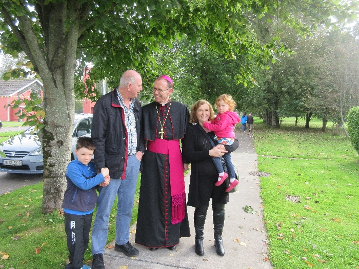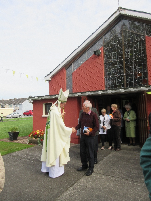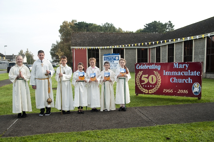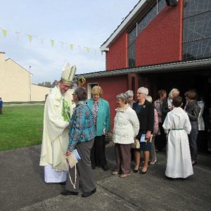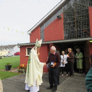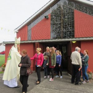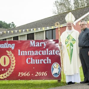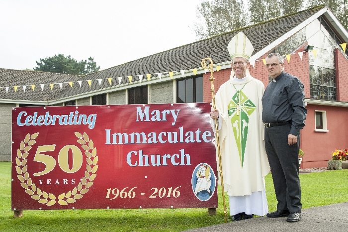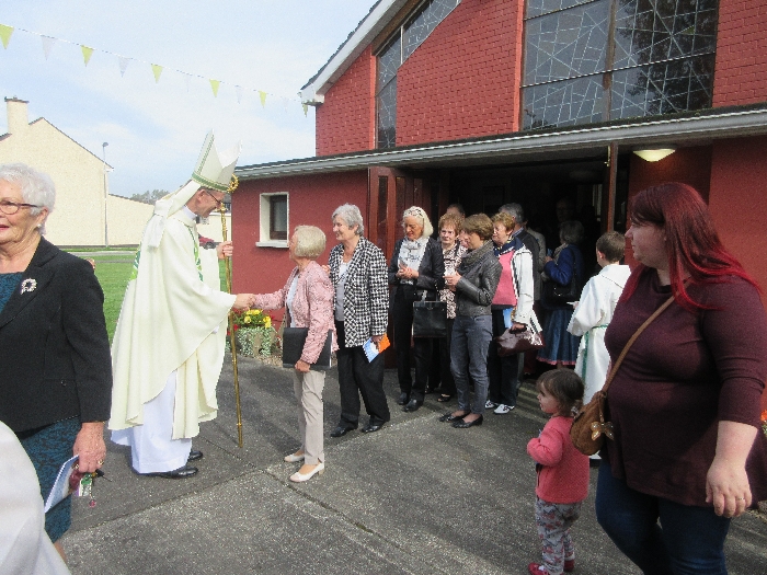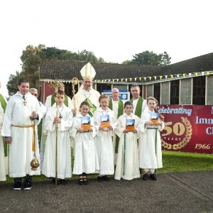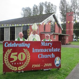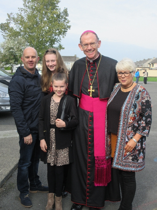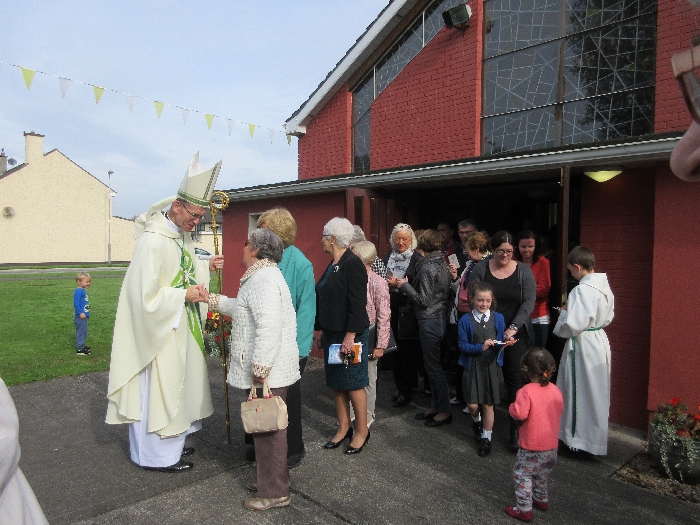 An important milestone in the history of Shannon took place on the Sunday 9th October when the newly ordained Bishop of Killaloe, Bishop Fintan Monahan, on his first visit to the Parish since his ordination on 25th September, celebrated the 11am Mass in Mary Immaculate Church. It was 50 years to the weekend when the Church was first blessed and dedicated. In its fifty years of service to the community, two priests have been ordained in the Church,Pat Byrne SVD from De Lacey Park and Fergal O’Neill, Ballycaseymore Hill. Both Fr Pat & Fr Fergal joined the priests of the parish, Fr Tom, Canon Brendan and Fr Arnold in celebrating the Mass of Thanksgiving with Bishop Fintan.