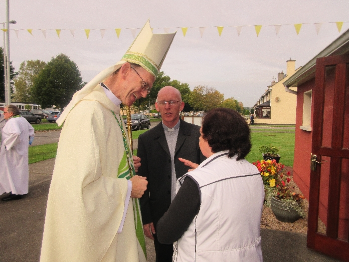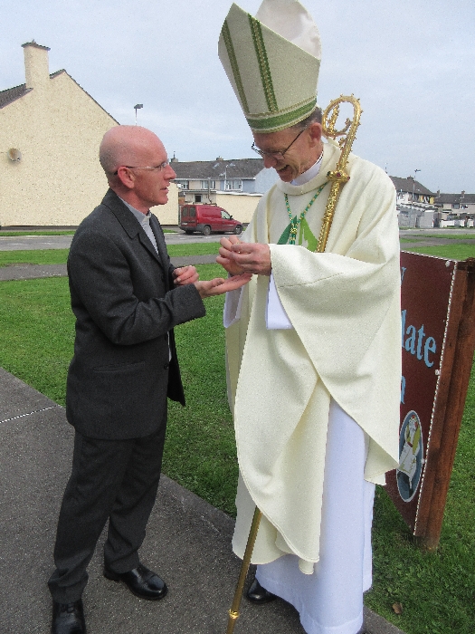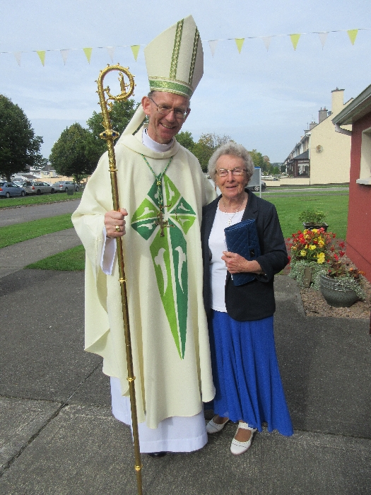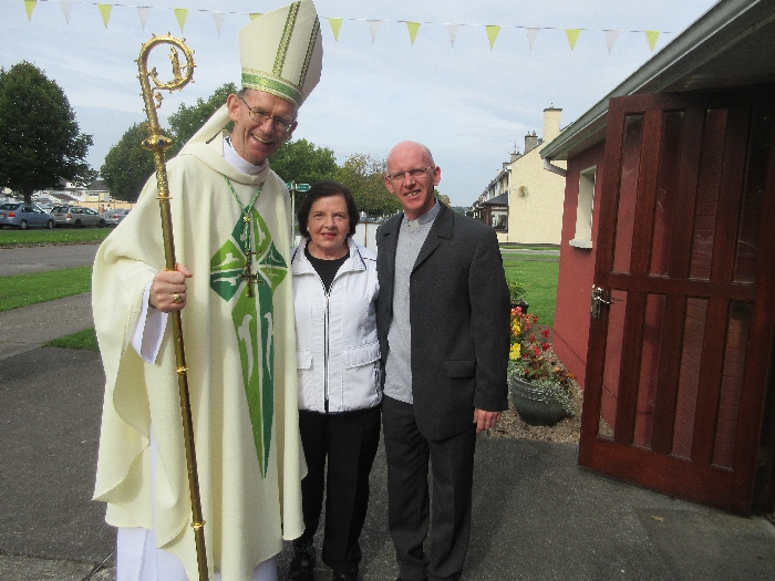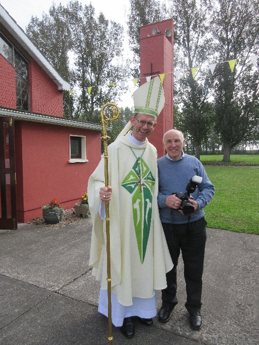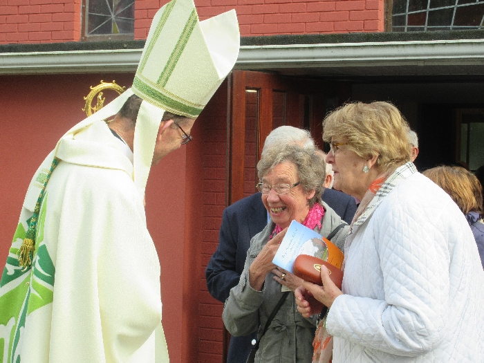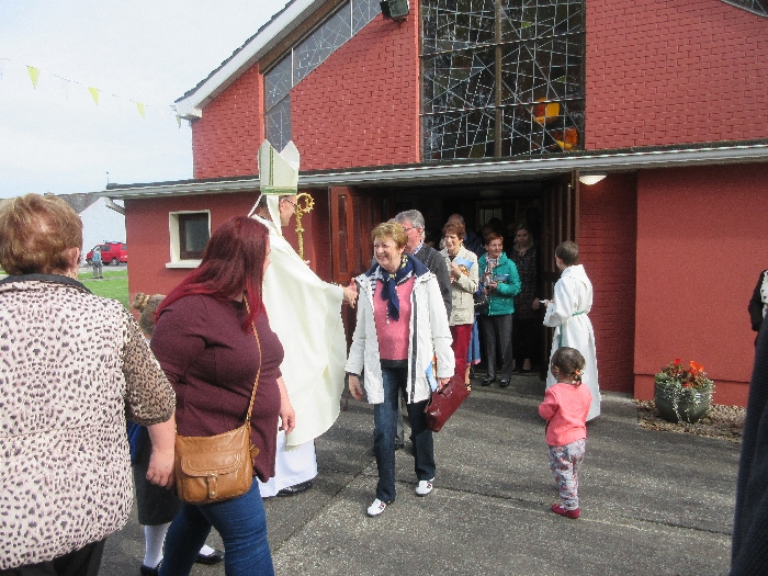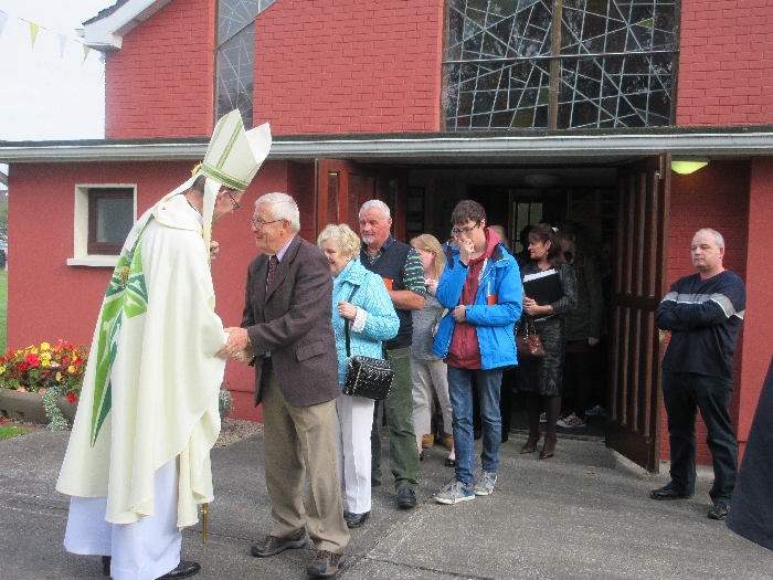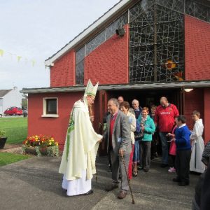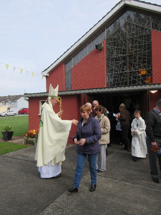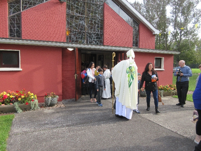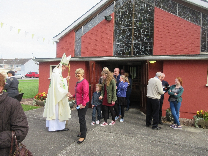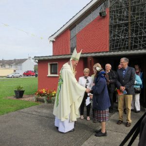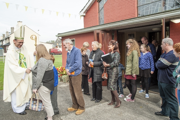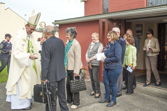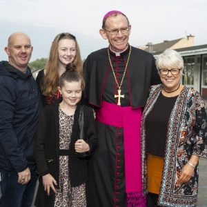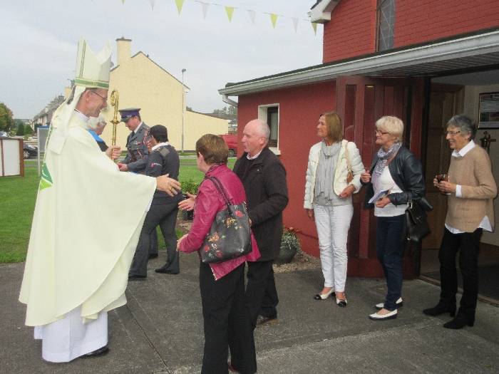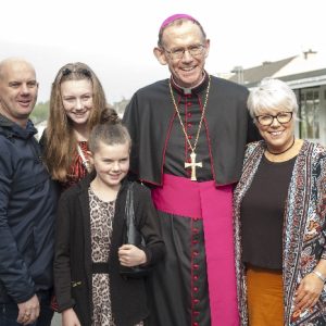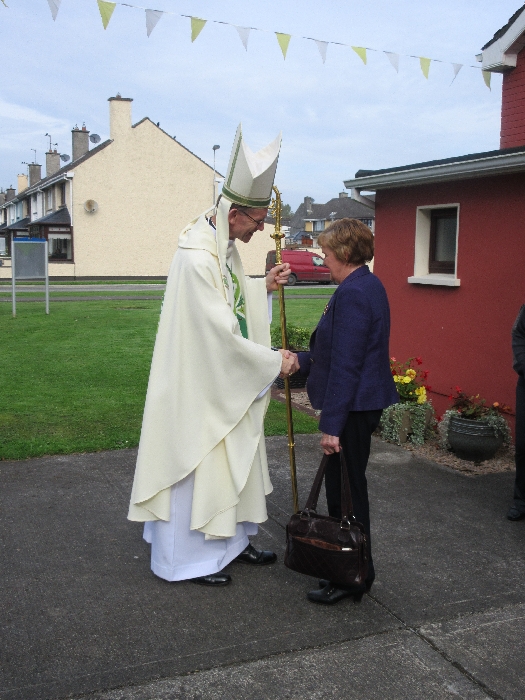 An important milestone in the history of Shannon took place on the Sunday 9th October when the newly ordained Bishop of Killaloe, Bishop Fintan Monahan, on his first visit to the Parish since his ordination on 25th September, celebrated the 11am Mass in Mary Immaculate Church. It was 50 years to the weekend when the Church was first blessed and dedicated. In its fifty years of service to the community, two priests have been ordained in the Church,Pat Byrne SVD from De Lacey Park and Fergal O’Neill, Ballycaseymore Hill. Both Fr Pat & Fr Fergal joined the priests of the parish, Fr Tom, Canon Brendan and Fr Arnold in celebrating the Mass of Thanksgiving with Bishop Fintan.