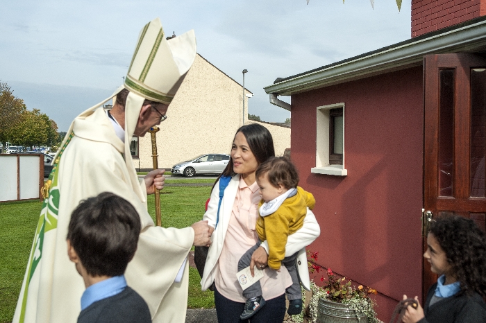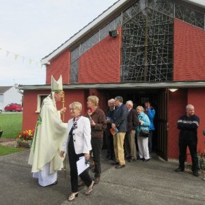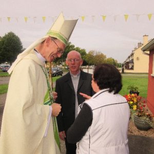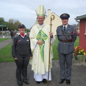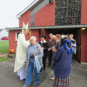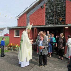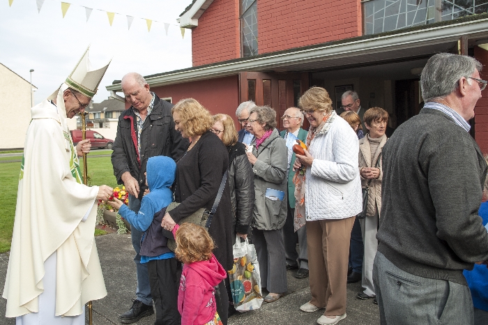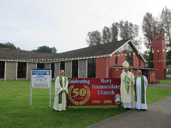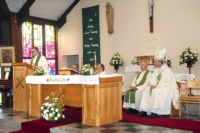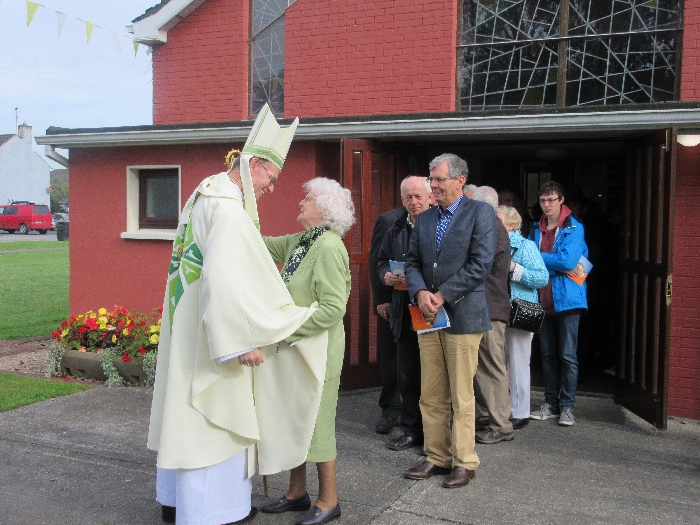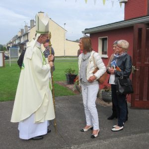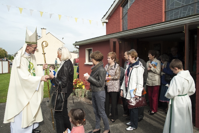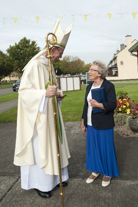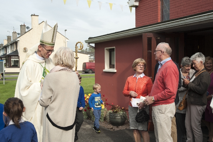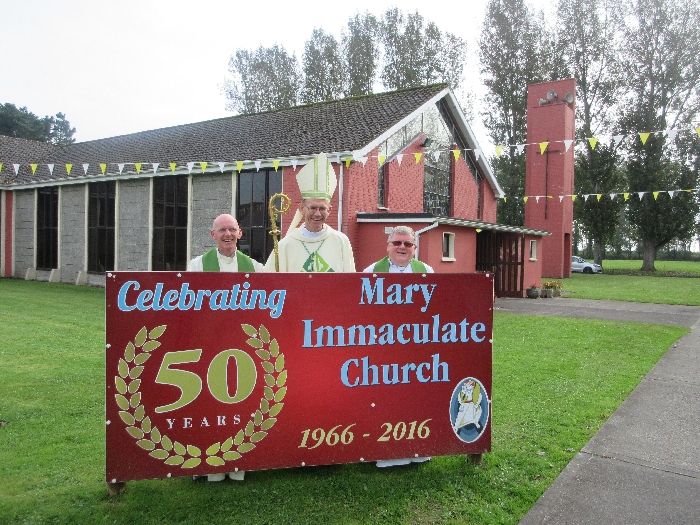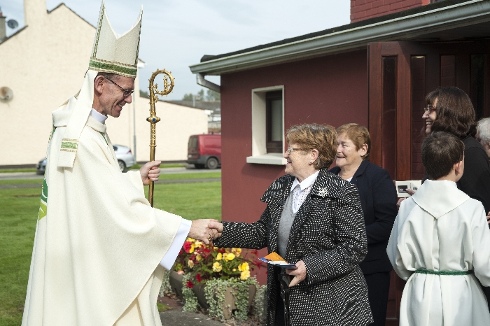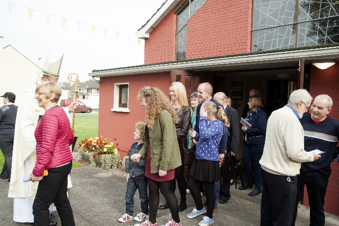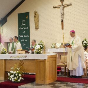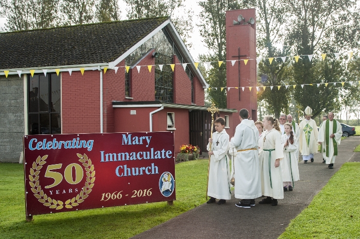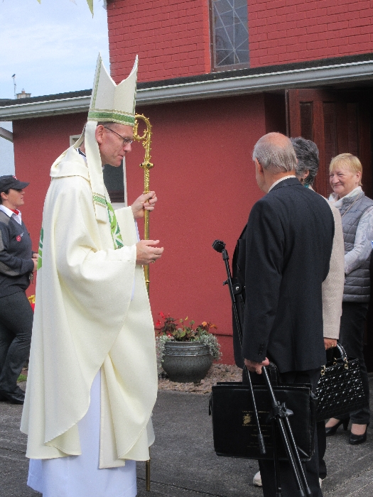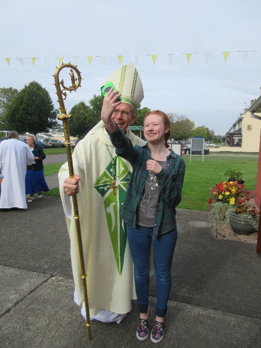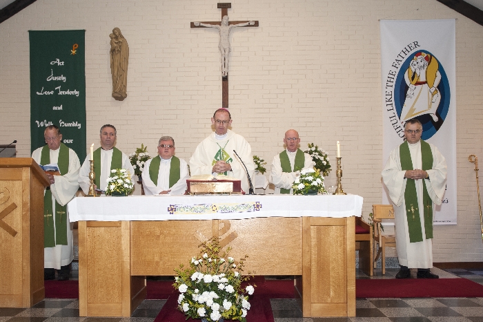An important milestone in the history of Shannon took place on the Sunday 9th October when the newly ordained Bishop of Killaloe, Bishop Fintan Monahan, on his first visit to the Parish since his ordination on 25th September, celebrated the 11am Mass in Mary Immaculate Church. It was 50 years to the weekend when the Church was first blessed and dedicated. In its fifty years of service to the community, two priests have been ordained in the Church,Pat Byrne SVD from De Lacey Park and Fergal O’Neill, Ballycaseymore Hill. Both Fr Pat & Fr Fergal joined the priests of the parish, Fr Tom, Canon Brendan and Fr Arnold in celebrating the Mass of Thanksgiving with Bishop Fintan.