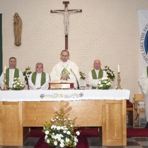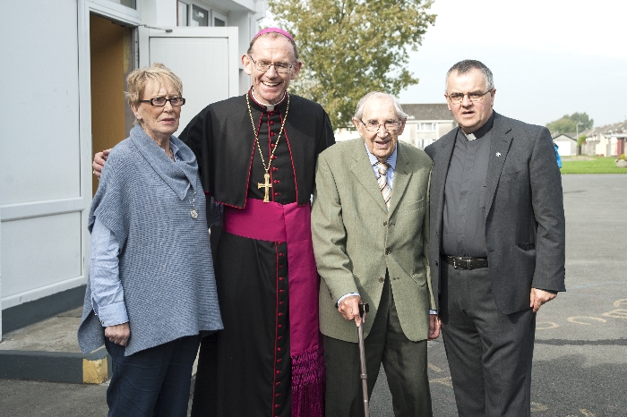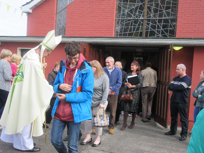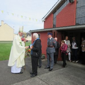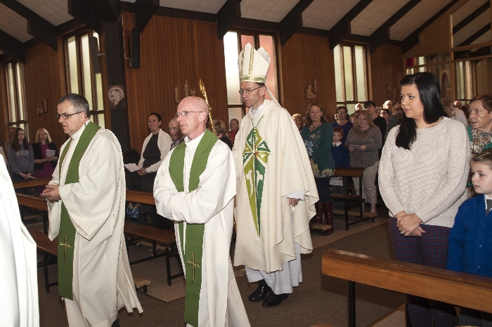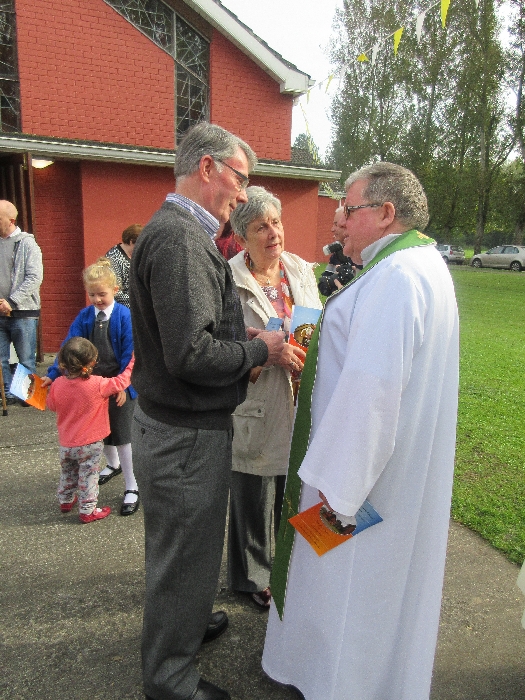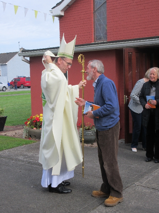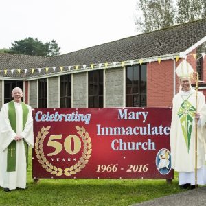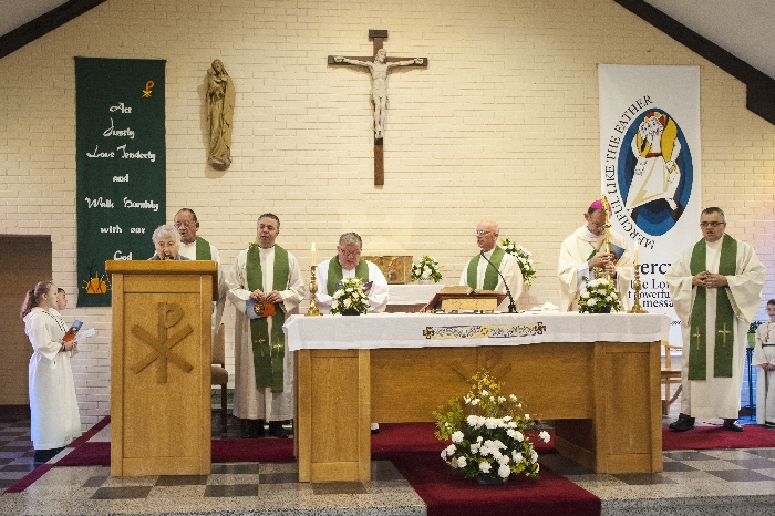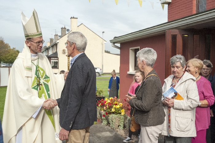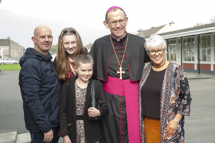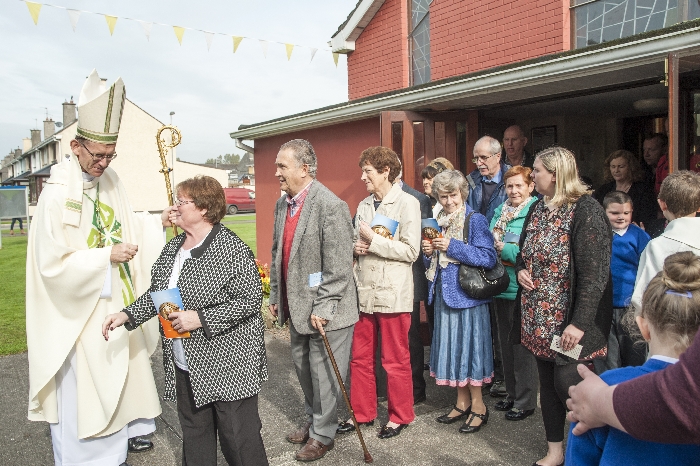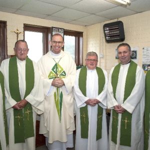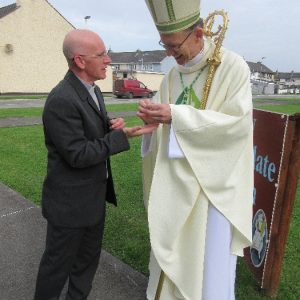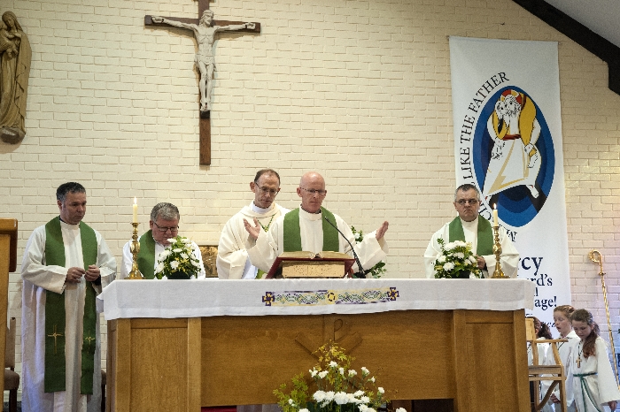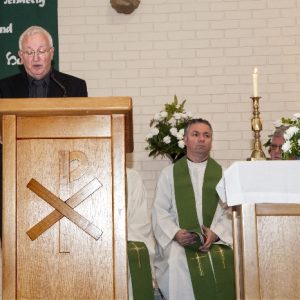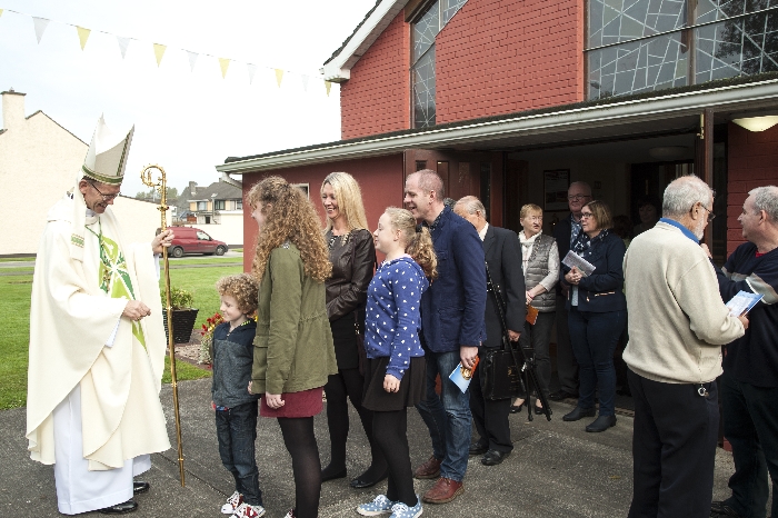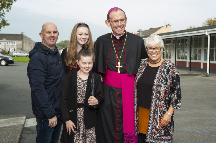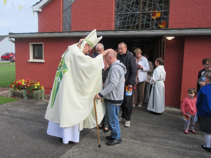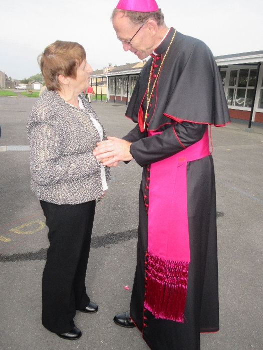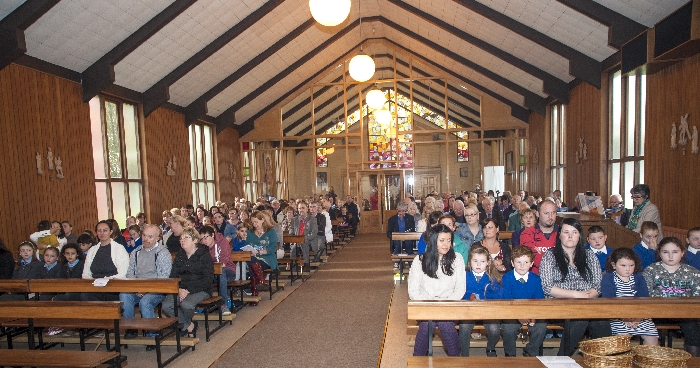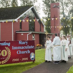An important milestone in the history of Shannon took place on the Sunday 9th October when the newly ordained Bishop of Killaloe, Bishop Fintan Monahan, on his first visit to the Parish since his ordination on 25th September, celebrated the 11am Mass in Mary Immaculate Church. It was 50 years to the weekend when the Church was first blessed and dedicated. In its fifty years of service to the community, two priests have been ordained in the Church,Pat Byrne SVD from De Lacey Park and Fergal O’Neill, Ballycaseymore Hill. Both Fr Pat & Fr Fergal joined the priests of the parish, Fr Tom, Canon Brendan and Fr Arnold in celebrating the Mass of Thanksgiving with Bishop Fintan.