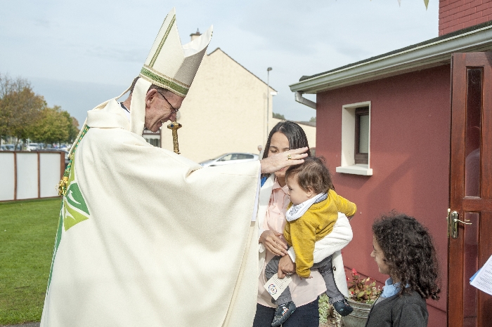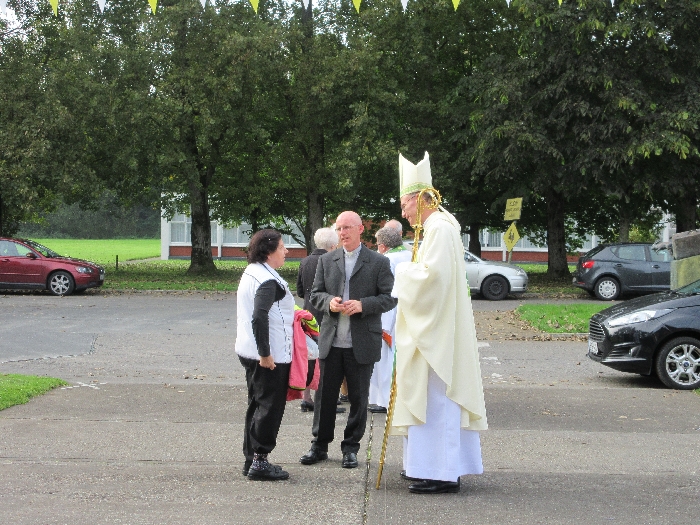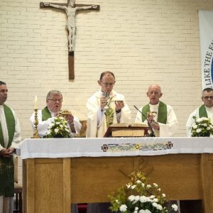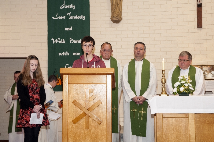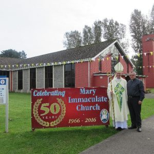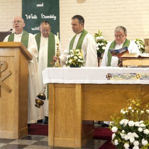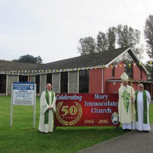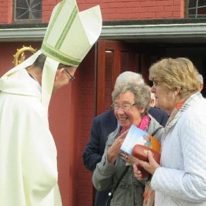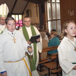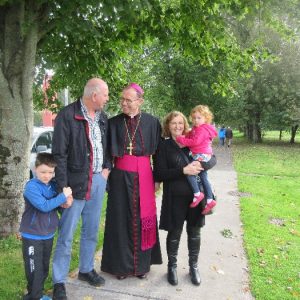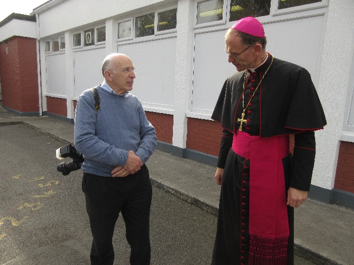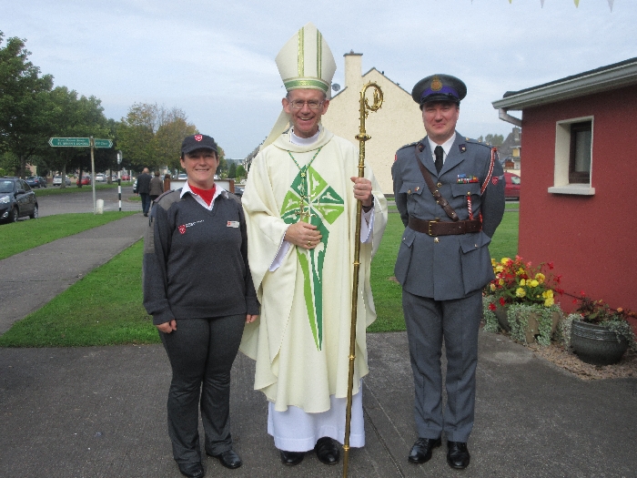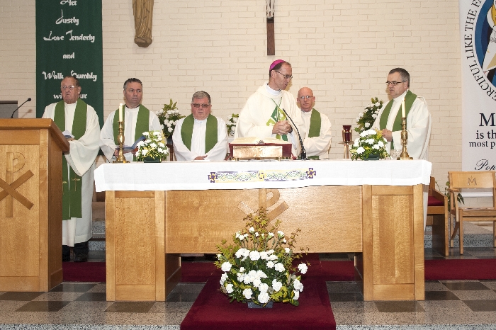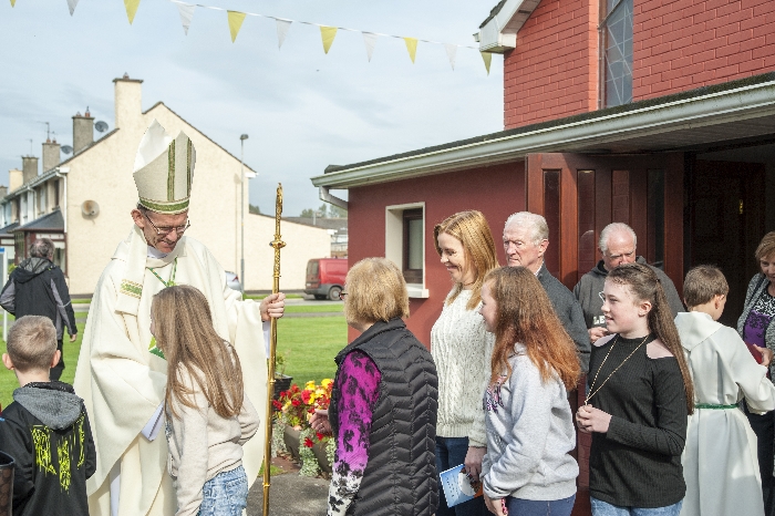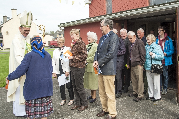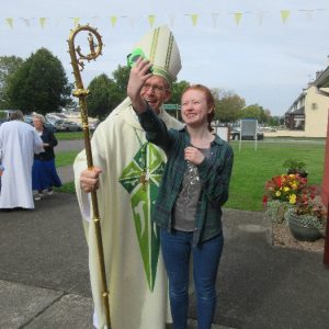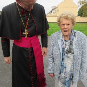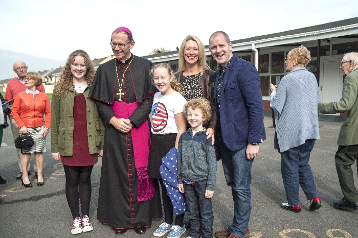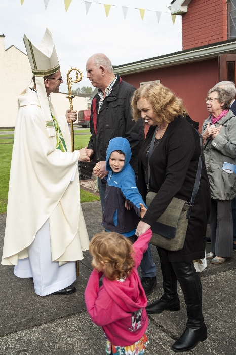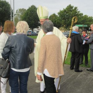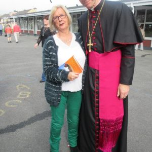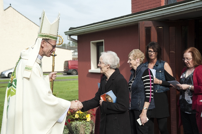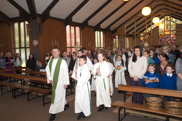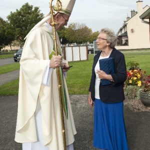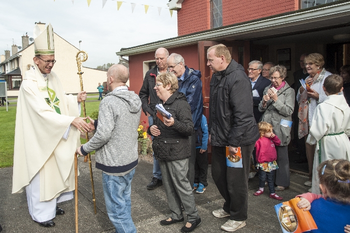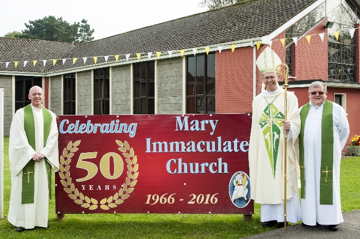 An important milestone in the history of Shannon took place on the Sunday 9th October when the newly ordained Bishop of Killaloe, Bishop Fintan Monahan, on his first visit to the Parish since his ordination on 25th September, celebrated the 11am Mass in Mary Immaculate Church. It was 50 years to the weekend when the Church was first blessed and dedicated. In its fifty years of service to the community, two priests have been ordained in the Church,Pat Byrne SVD from De Lacey Park and Fergal O’Neill, Ballycaseymore Hill. Both Fr Pat & Fr Fergal joined the priests of the parish, Fr Tom, Canon Brendan and Fr Arnold in celebrating the Mass of Thanksgiving with Bishop Fintan.