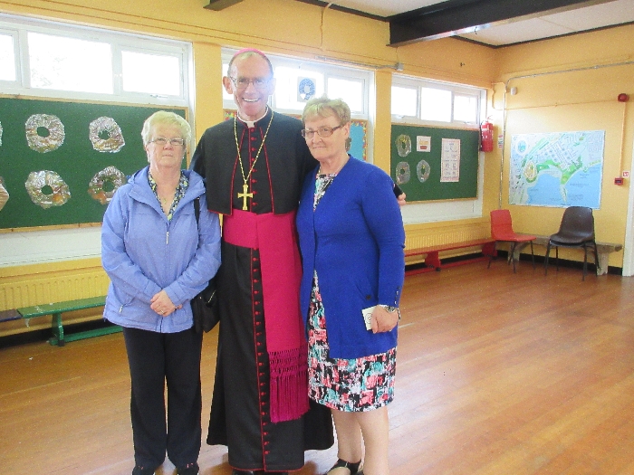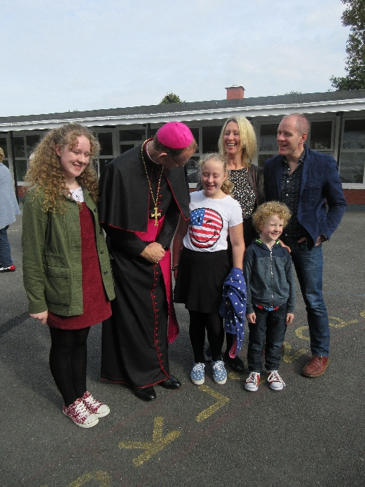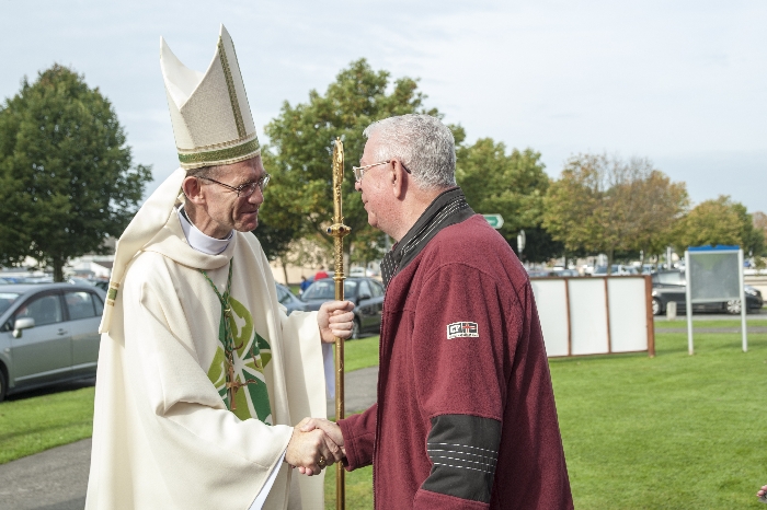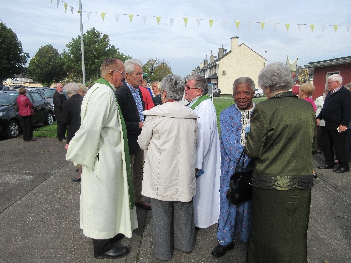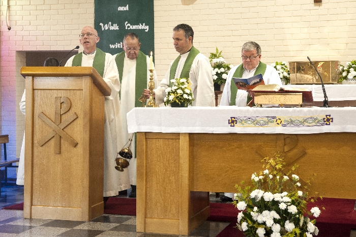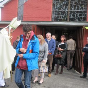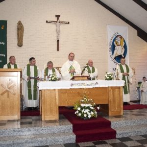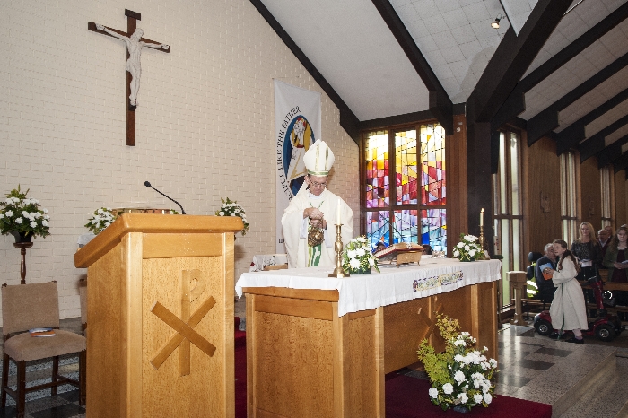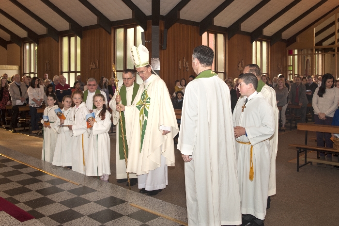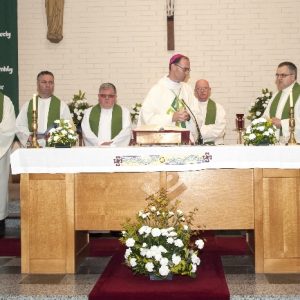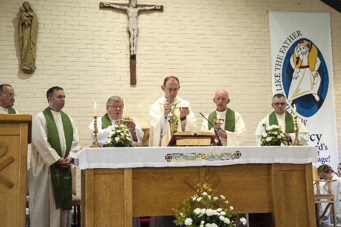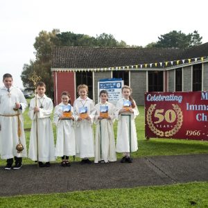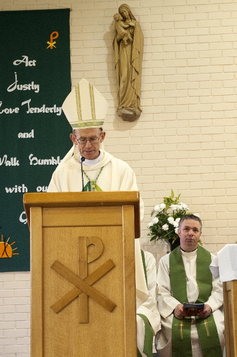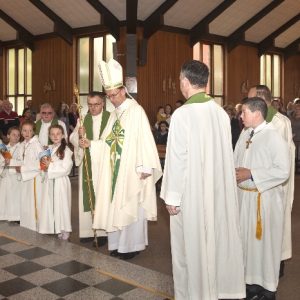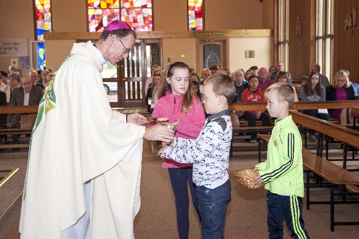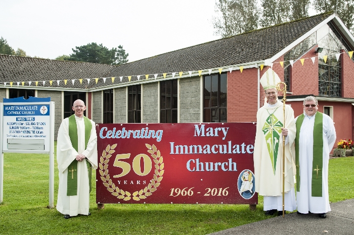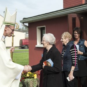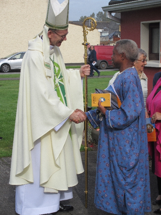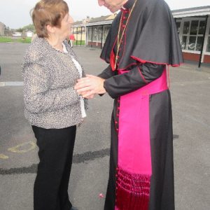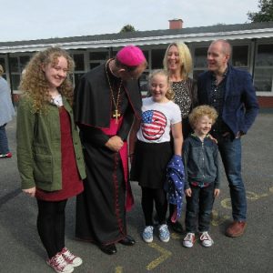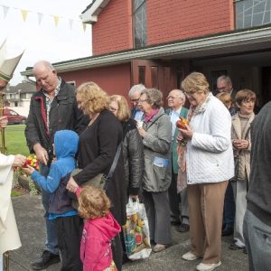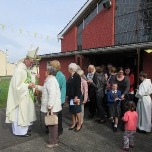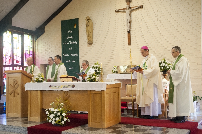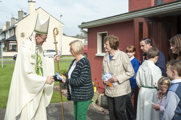 An important milestone in the history of Shannon took place on the Sunday 9th October when the newly ordained Bishop of Killaloe, Bishop Fintan Monahan, on his first visit to the Parish since his ordination on 25th September, celebrated the 11am Mass in Mary Immaculate Church. It was 50 years to the weekend when the Church was first blessed and dedicated. In its fifty years of service to the community, two priests have been ordained in the Church,Pat Byrne SVD from De Lacey Park and Fergal O’Neill, Ballycaseymore Hill. Both Fr Pat & Fr Fergal joined the priests of the parish, Fr Tom, Canon Brendan and Fr Arnold in celebrating the Mass of Thanksgiving with Bishop Fintan.
