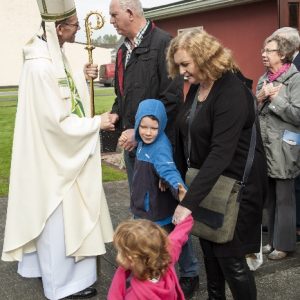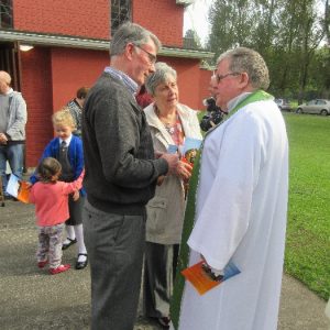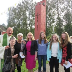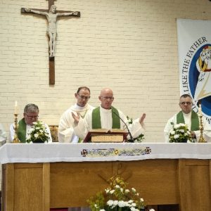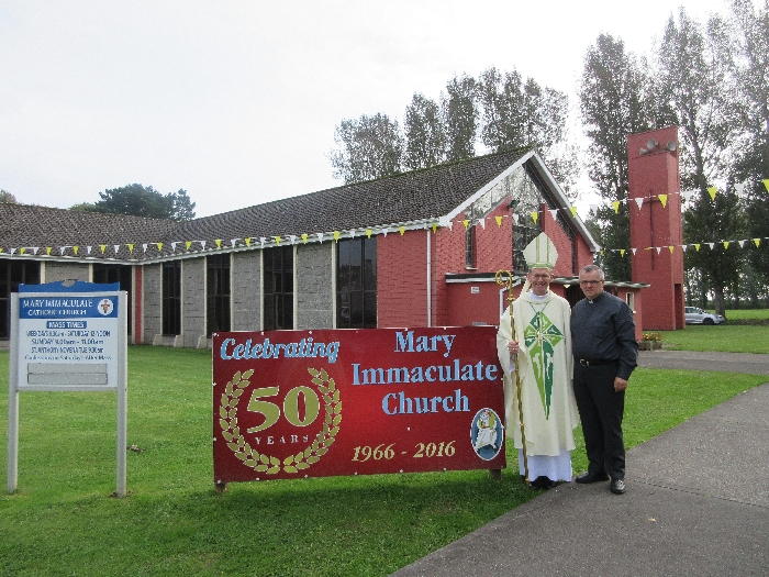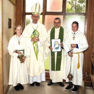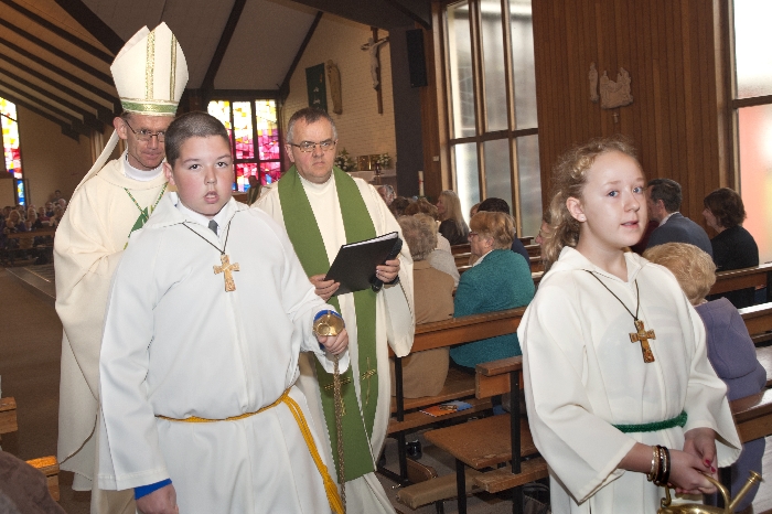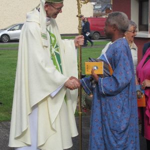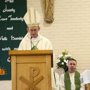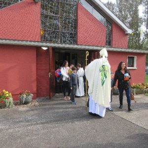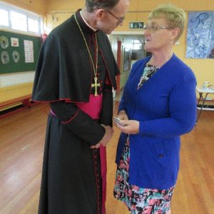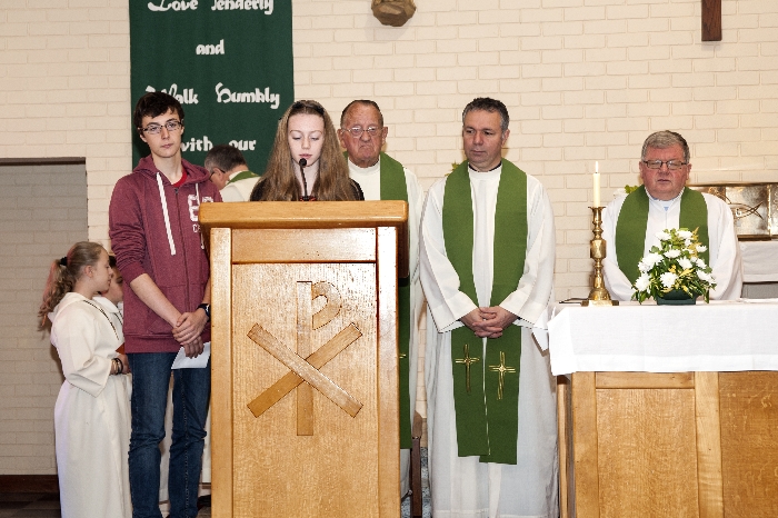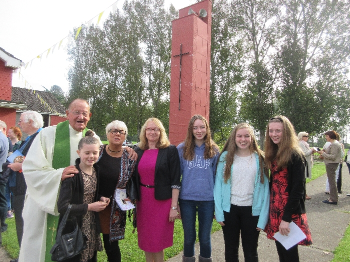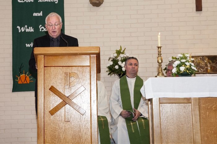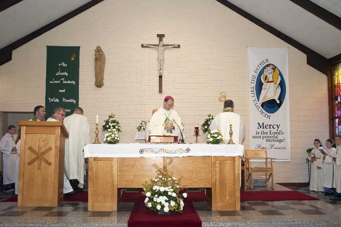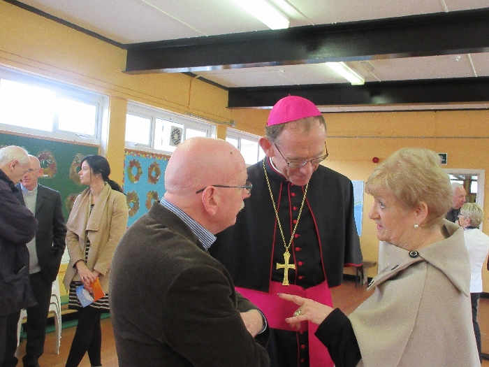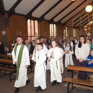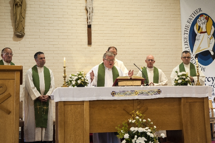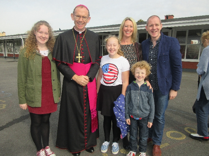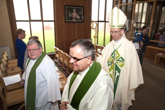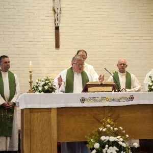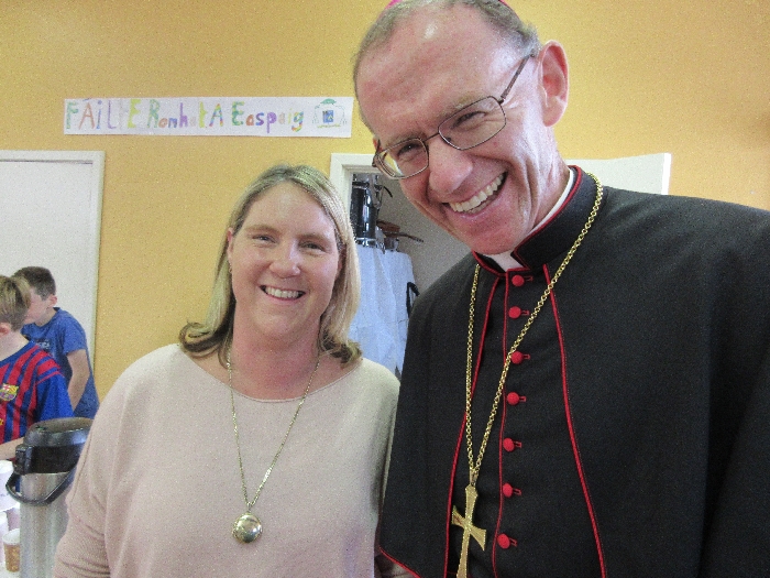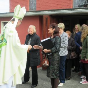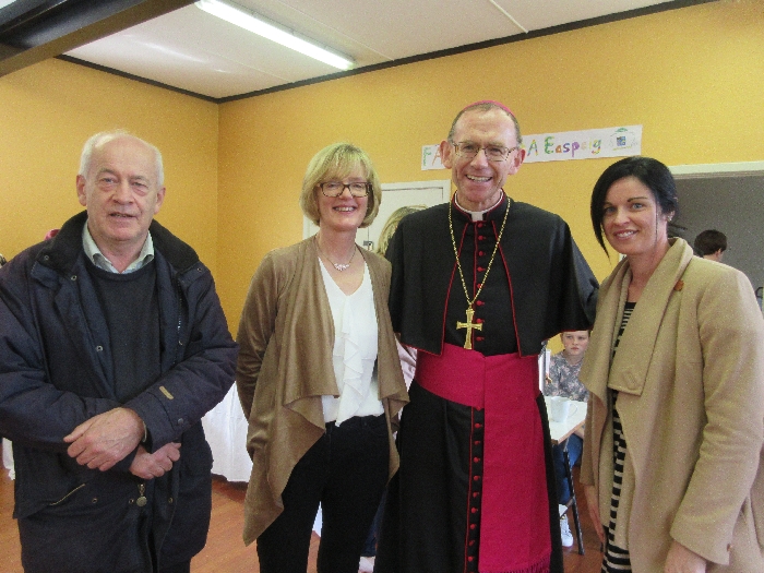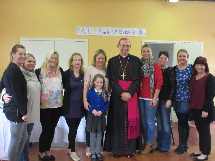 An important milestone in the history of Shannon took place on the Sunday 9th October when the newly ordained Bishop of Killaloe, Bishop Fintan Monahan, on his first visit to the Parish since his ordination on 25th September, celebrated the 11am Mass in Mary Immaculate Church. It was 50 years to the weekend when the Church was first blessed and dedicated. In its fifty years of service to the community, two priests have been ordained in the Church,Pat Byrne SVD from De Lacey Park and Fergal O’Neill, Ballycaseymore Hill. Both Fr Pat & Fr Fergal joined the priests of the parish, Fr Tom, Canon Brendan and Fr Arnold in celebrating the Mass of Thanksgiving with Bishop Fintan.