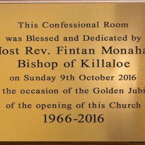 As part of the celebrations in this Year of Mercy and the Golden Jubilee of the Church, the Room of Mercy, Seomra na Trócaire, was officially blessed and dedicated by Bishop Fintan. This Room of Mercy, Seomra na Trócaire, will facilitate the celebration of the Sacrament of Reconciliation. Our thanks to Seamus O’Donoghue & Fr. Tom for the photos.