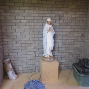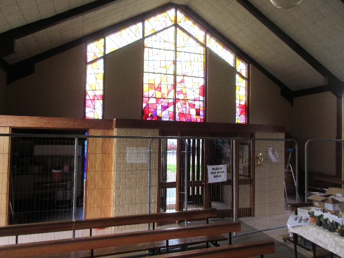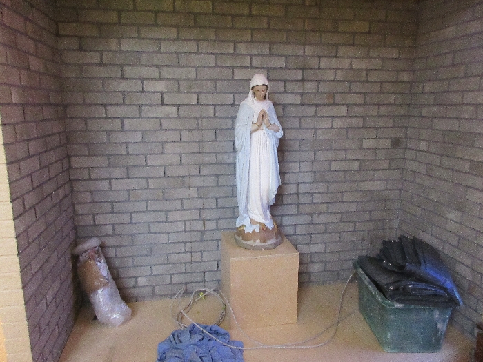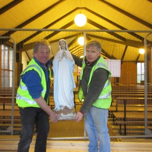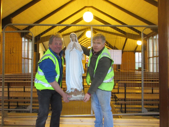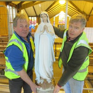 Work began on Tuesday 30th January in Mary Immaculate Church on the construction of a shrine in honour of Mary the Mother of God. This is to acknowledge the Golden Jubilee of the church which is dedicated to Mary Mother of God. The new shrine will be located in the old Confessional Box on the Boyne Park side of the Church. In addition more space is being provided to store equipment needed in the Liturgy as well as electrical and other improvements. While the work is in progress access to the Church will be through the centre aisle and the church continues to be open daily for Mass, prayer and visits. Our thanks to Michael Clancy who is carrying out the work.