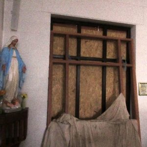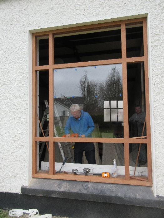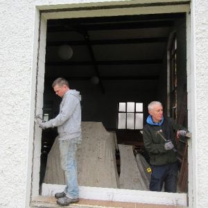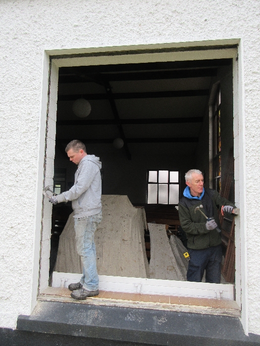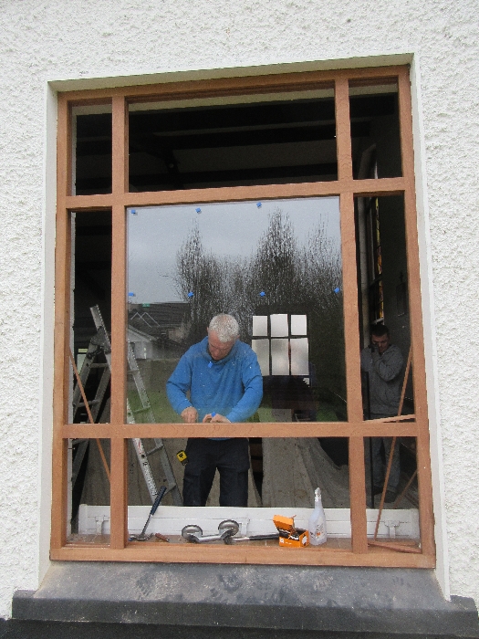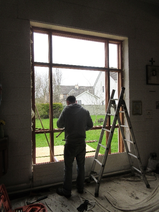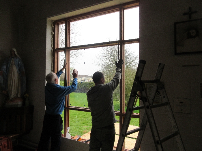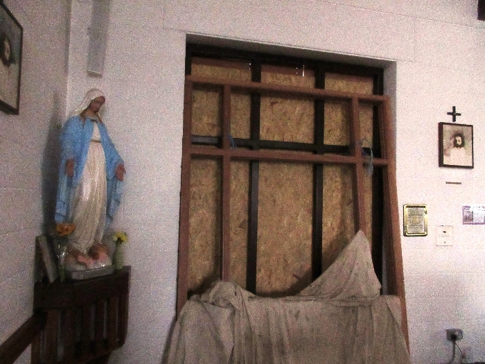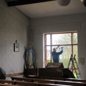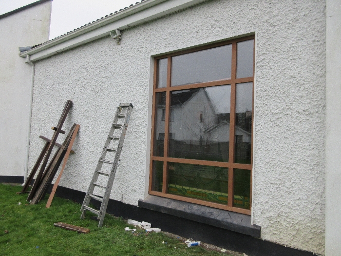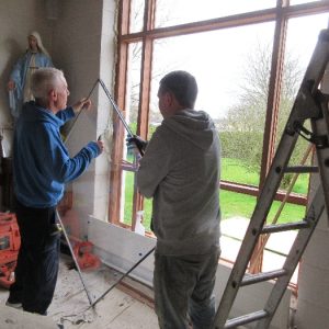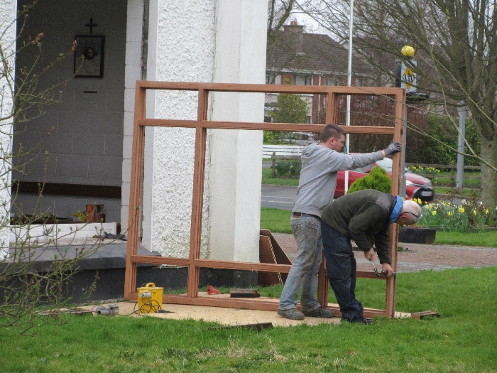 The work was created by a Derry City Art Glass Company. The photograph is the work of the late Padraig O’Reilly from Fergus Drive, Shannon, and he took it on his first assignment as a freelance photographer for the Clare Champion newspaper. His wife Mary and son Padraig attended the dedication with Bishop Fintan. We acknowledge the support we have received from the staff of Art Glass Ireland, Christy Collins who painted the frame of the window, The O’Reilly family who gave us permission to use the photograph and the many people who have made donations and contributions to date towards the cost involved. Thanks to Joe Buckley and Padraig O’Reilly for the photos.
