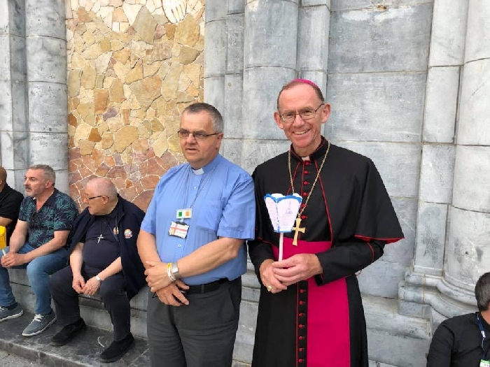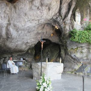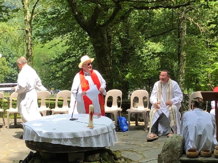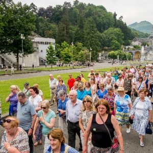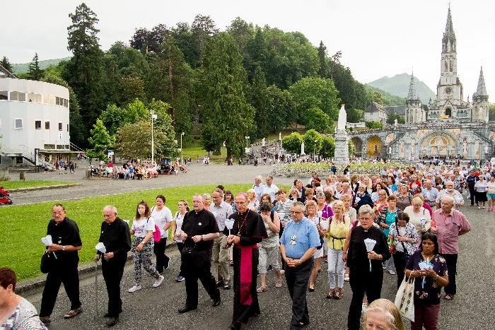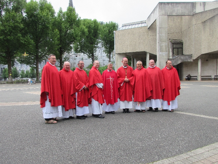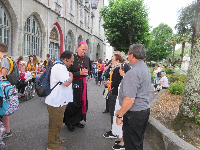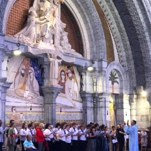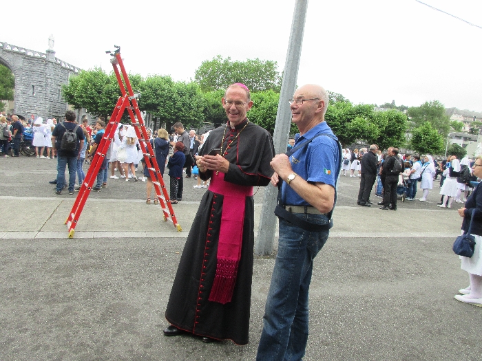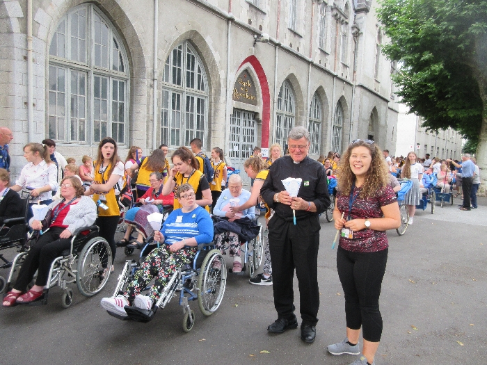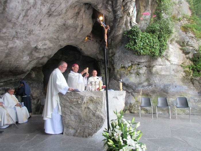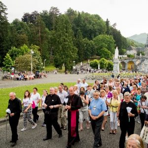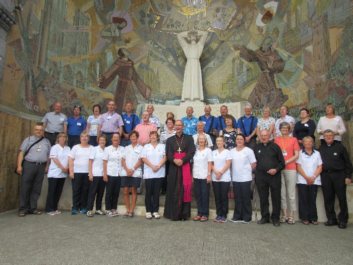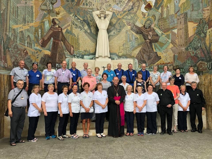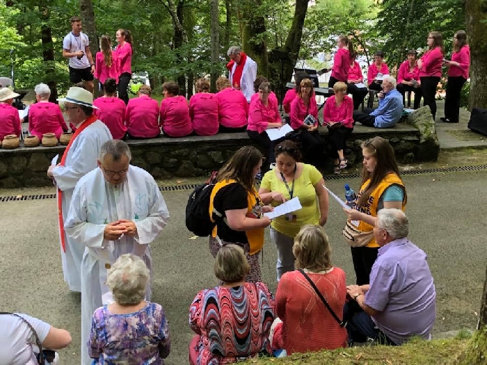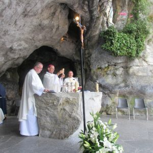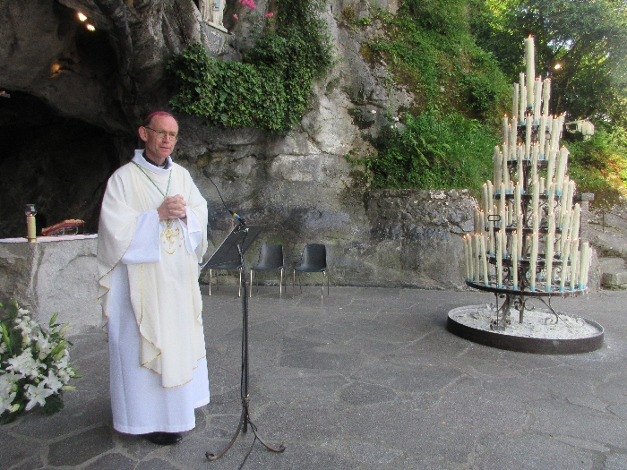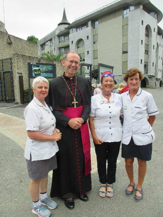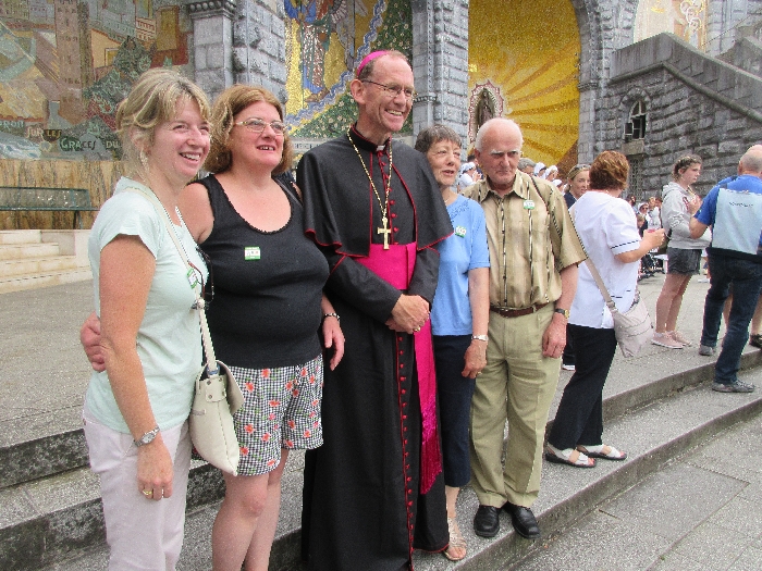 In his homily Bishop Fintan welcomed all of the pilgrims who were part of our Diocesan family and invited them to find a focus for their pilgrimage. He invited us to enter “that space of listening where we might need to unclutter some things, to free ourselves from what often distracts us, to focus on what is deep, what is meaningful, what is spiritual and special in our lives. In doing so our time here in Lourdes will be most fruitful and we will return home better people, bringing a renewed Gospel message to all we meet, love and care for.” During the apparitions a miraculous spring appeared in the Grotto and Mary asked Bernadette to go and bathe in it.