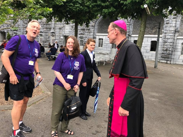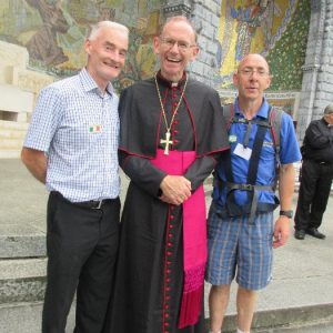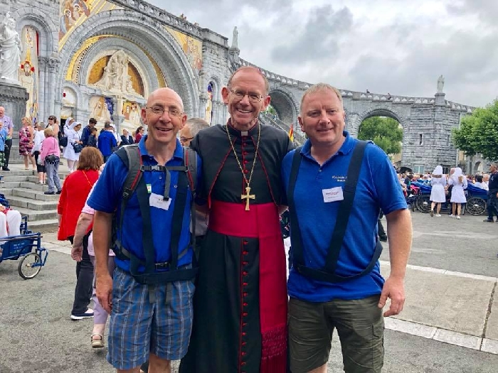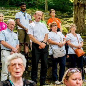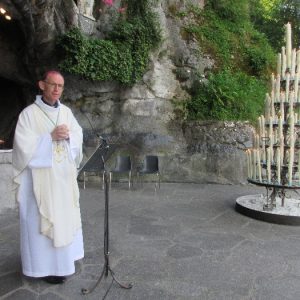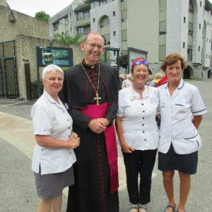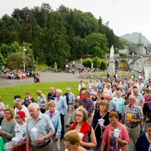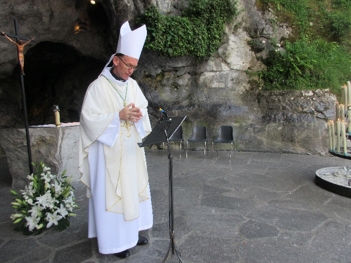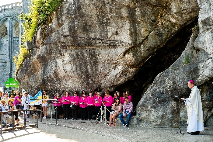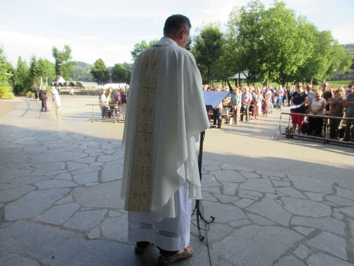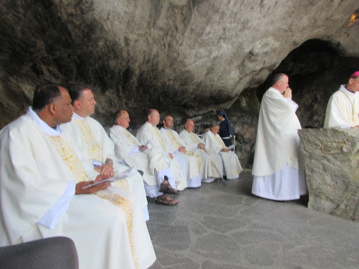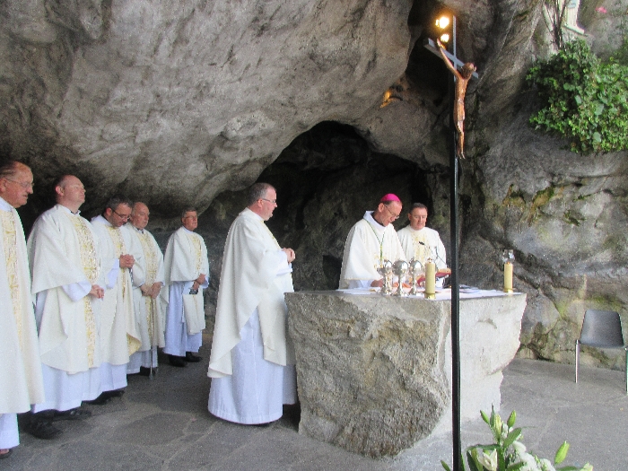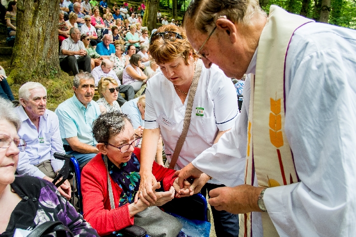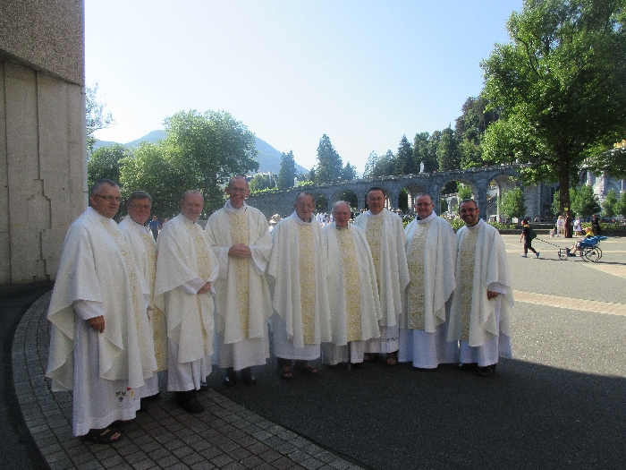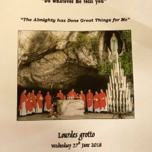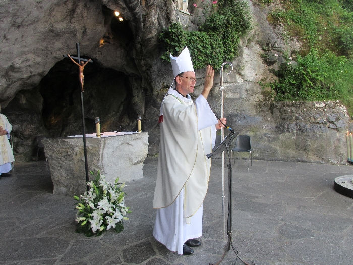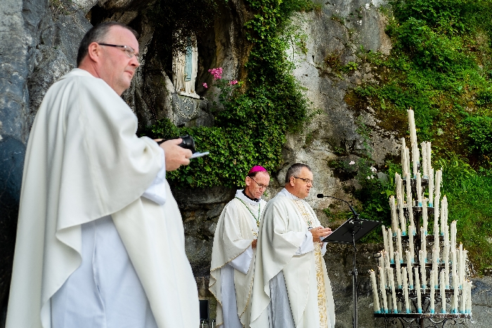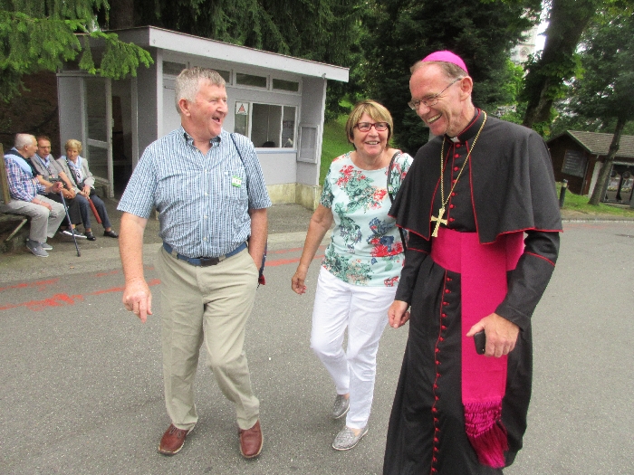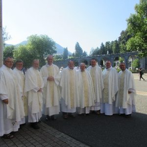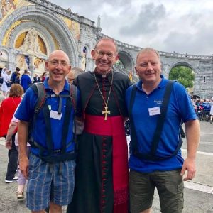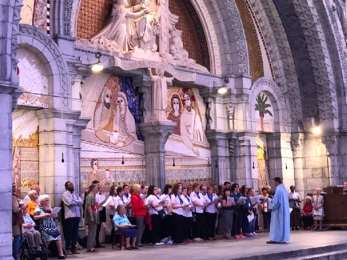 In his homily Bishop Fintan welcomed all of the pilgrims who were part of our Diocesan family and invited them to find a focus for their pilgrimage. He invited us to enter “that space of listening where we might need to unclutter some things, to free ourselves from what often distracts us, to focus on what is deep, what is meaningful, what is spiritual and special in our lives. In doing so our time here in Lourdes will be most fruitful and we will return home better people, bringing a renewed Gospel message to all we meet, love and care for.” During the apparitions a miraculous spring appeared in the Grotto and Mary asked Bernadette to go and bathe in it.