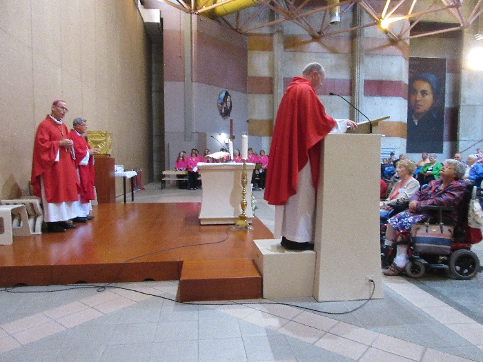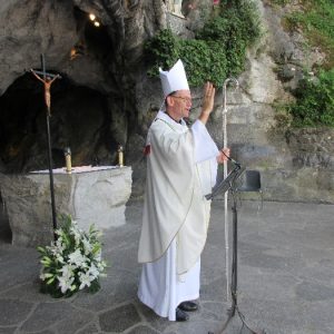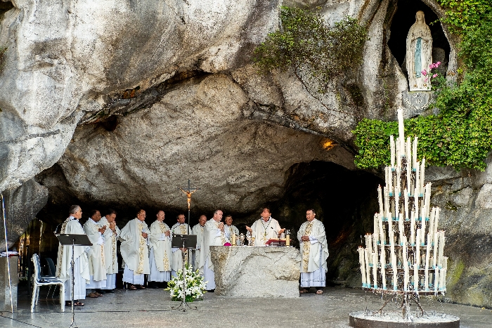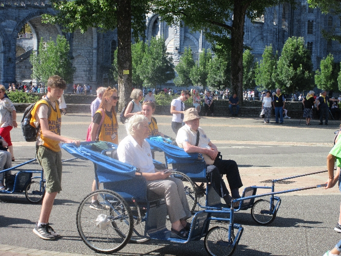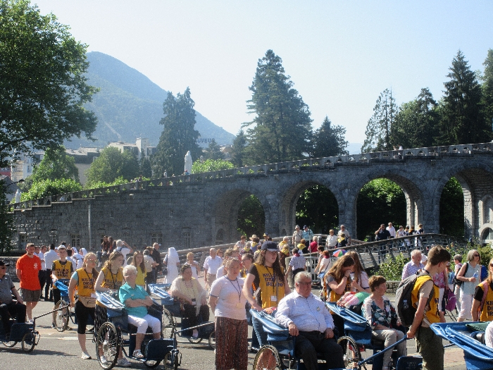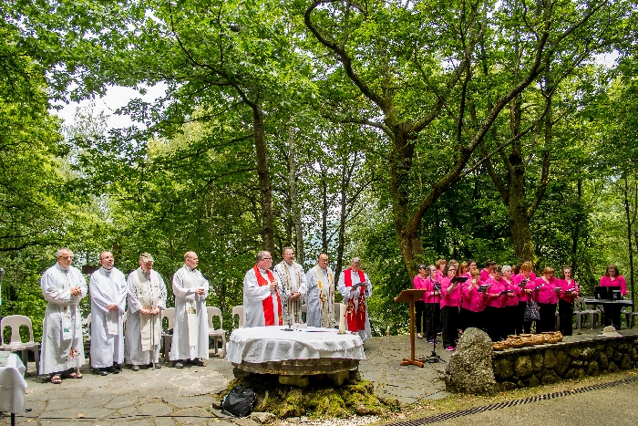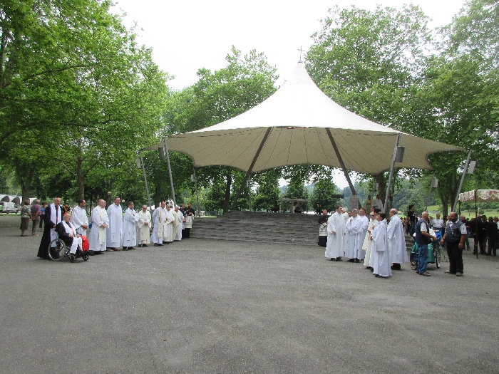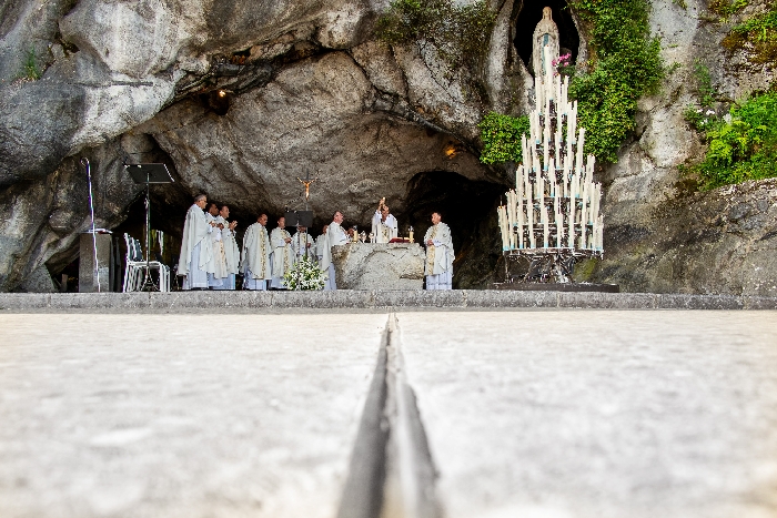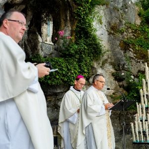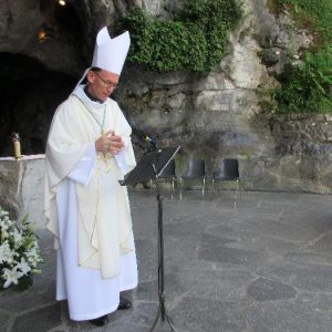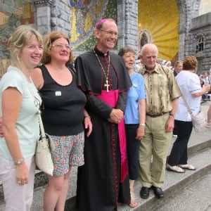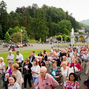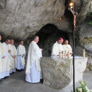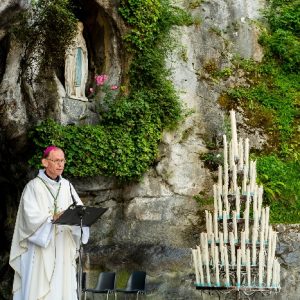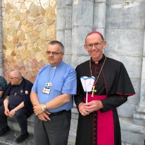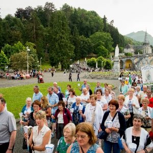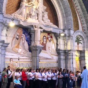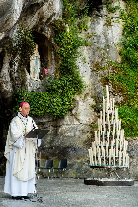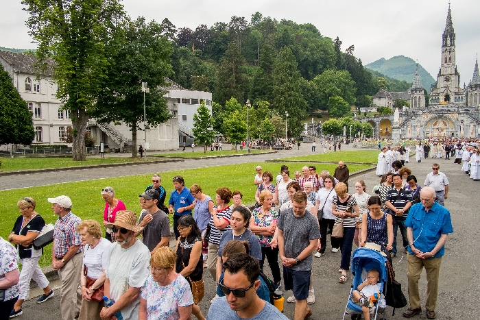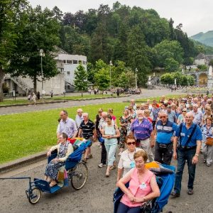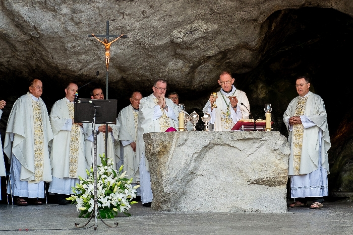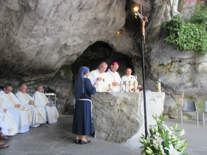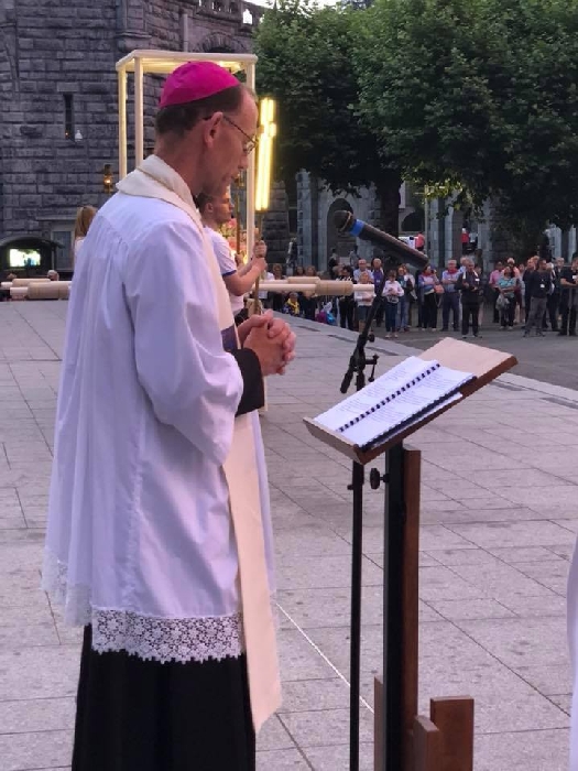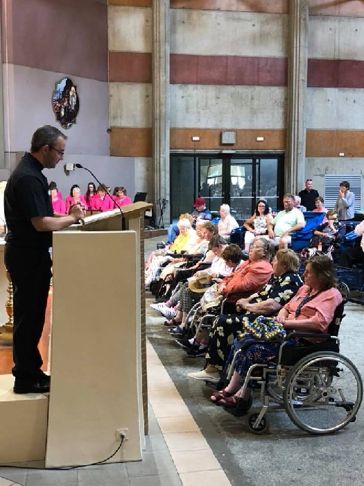 In his homily Bishop Fintan welcomed all of the pilgrims who were part of our Diocesan family and invited them to find a focus for their pilgrimage. He invited us to enter “that space of listening where we might need to unclutter some things, to free ourselves from what often distracts us, to focus on what is deep, what is meaningful, what is spiritual and special in our lives. In doing so our time here in Lourdes will be most fruitful and we will return home better people, bringing a renewed Gospel message to all we meet, love and care for.” During the apparitions a miraculous spring appeared in the Grotto and Mary asked Bernadette to go and bathe in it.