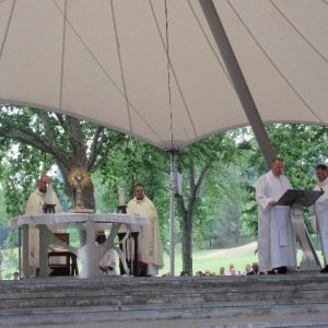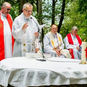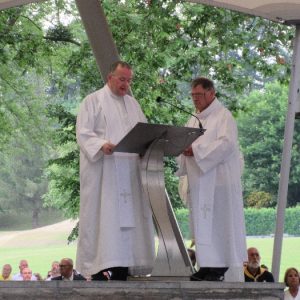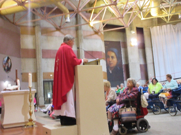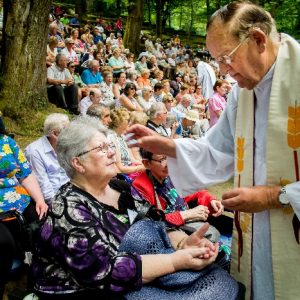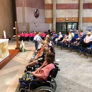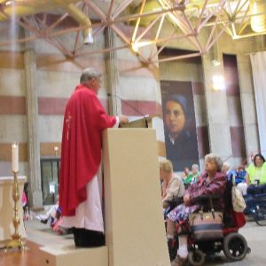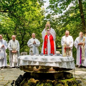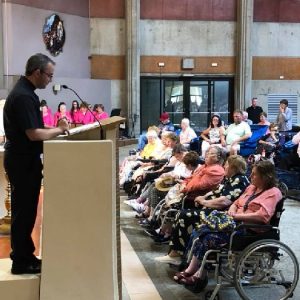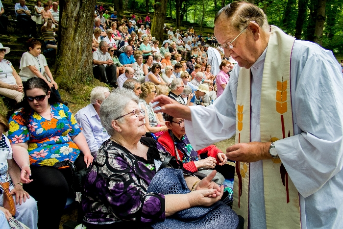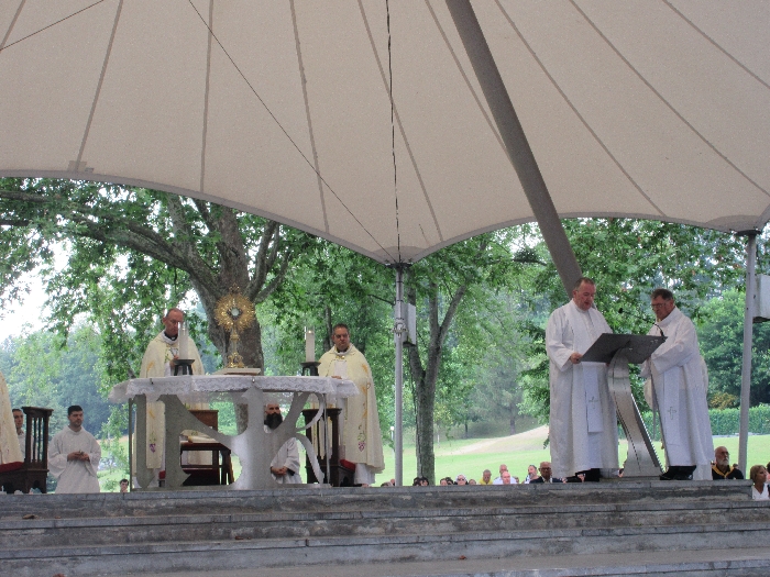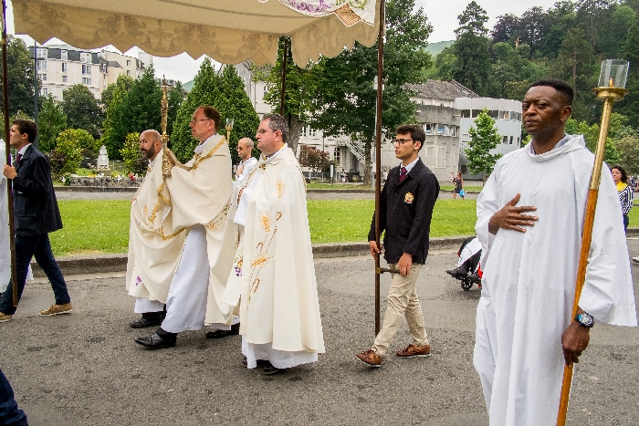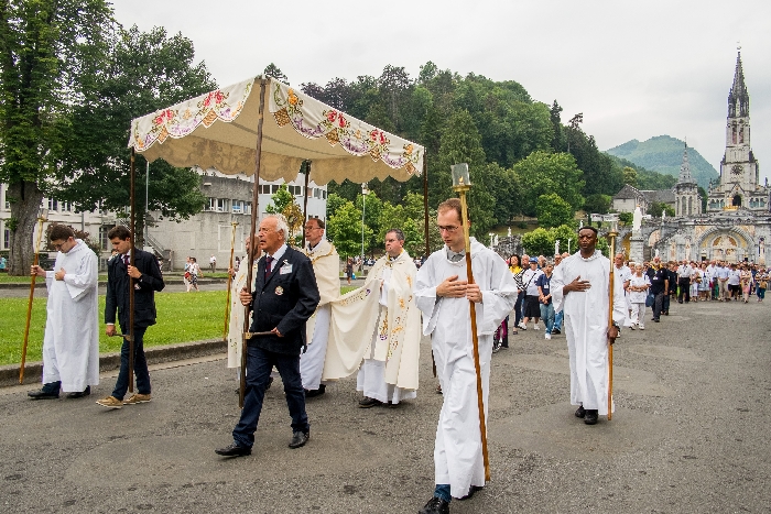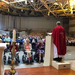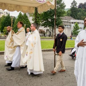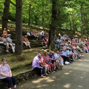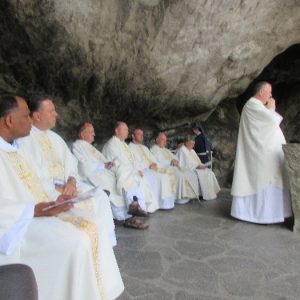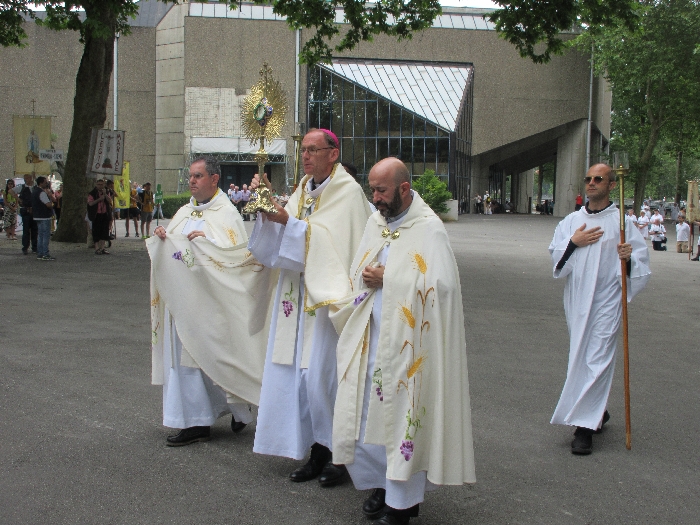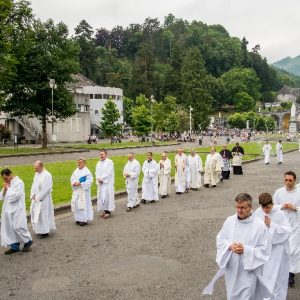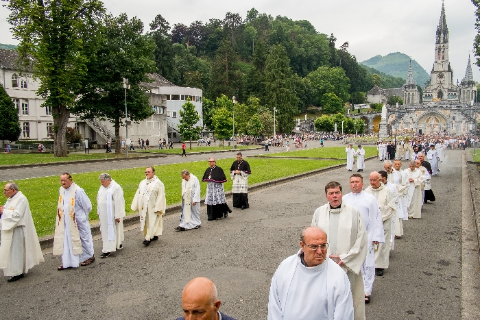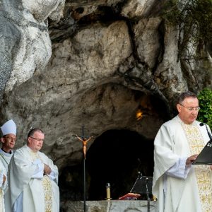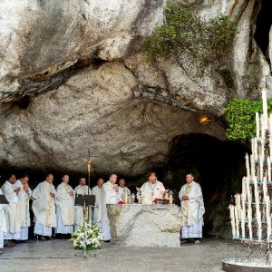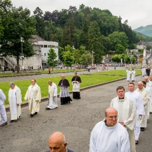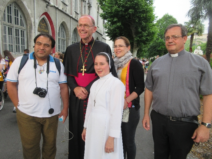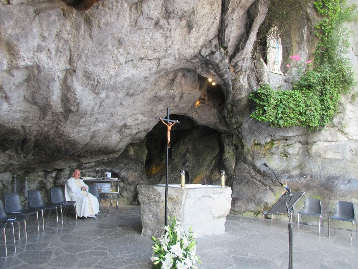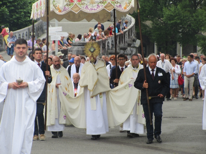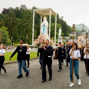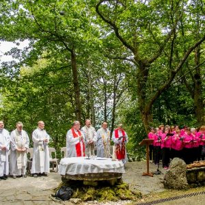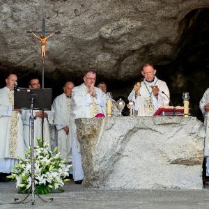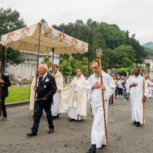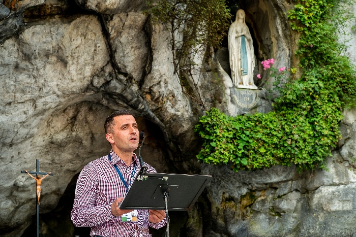 In his homily Bishop Fintan welcomed all of the pilgrims who were part of our Diocesan family and invited them to find a focus for their pilgrimage. He invited us to enter “that space of listening where we might need to unclutter some things, to free ourselves from what often distracts us, to focus on what is deep, what is meaningful, what is spiritual and special in our lives. In doing so our time here in Lourdes will be most fruitful and we will return home better people, bringing a renewed Gospel message to all we meet, love and care for.” During the apparitions a miraculous spring appeared in the Grotto and Mary asked Bernadette to go and bathe in it.
