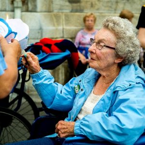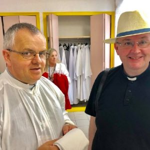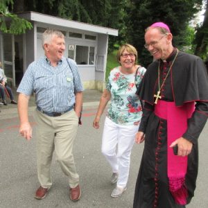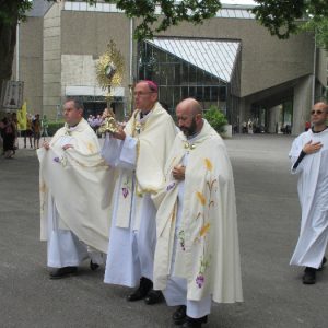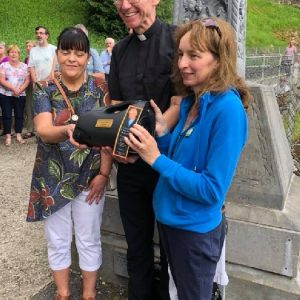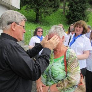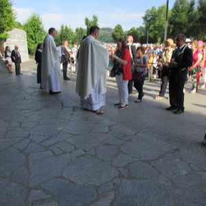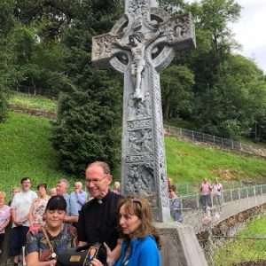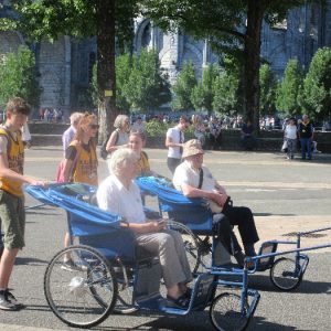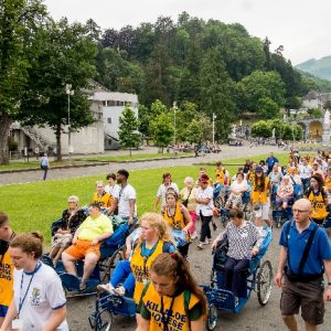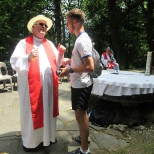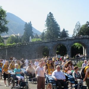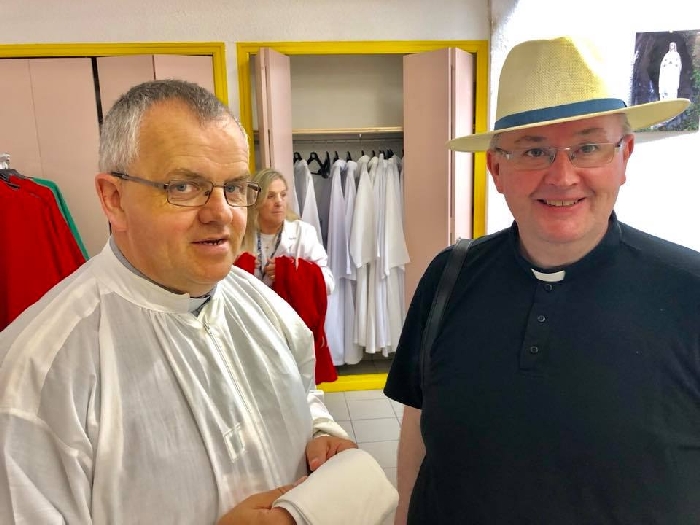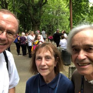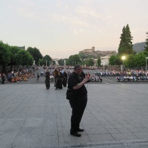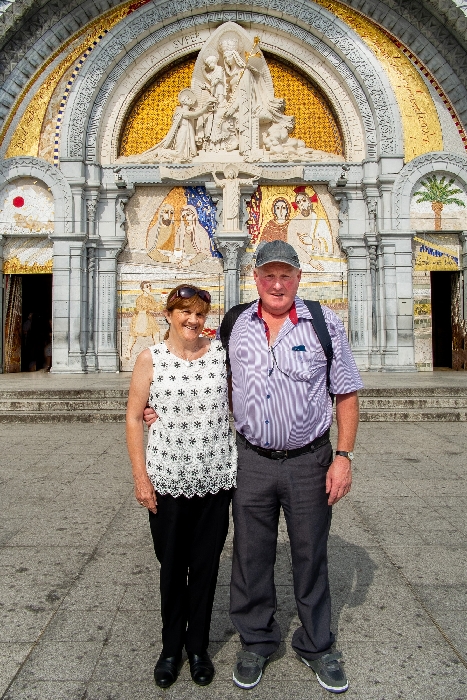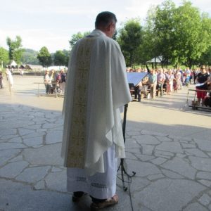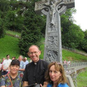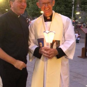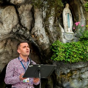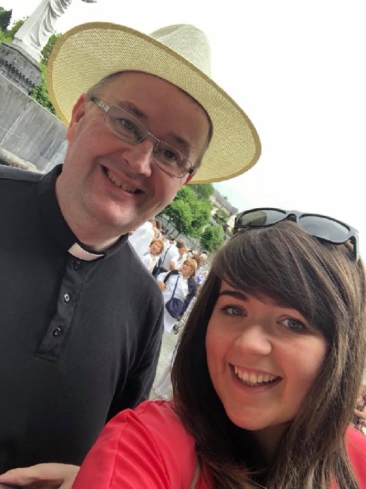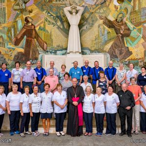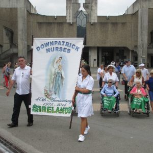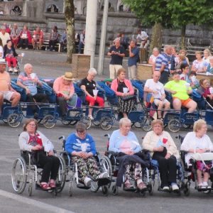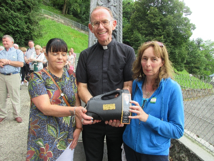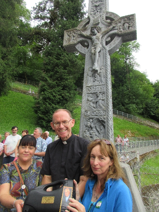 There’s the solitary moments before the grotto or in the presence of the Blessed Sacrament where the most earnest prayers are whispered. The Eucharistic healing hour led by Fr. Ger Jones of Nenagh and the Penitential service led by Fr. Pat Larkin of Kilmaley will have touched the hearts and spirits of many. A feature of our pilgrimage this year were the lives of two priests of the Diocese. The newly ordained Fr. Martin Shanahan shared the story of his vocations; first to marriage and then to priesthood and all were delighted to receive his First Blessing. Remembered in a special way this year was Fr. Frank Meehan of Shinrone parish who left us unexpectedly last November. He was a devoted servant of the Killaloe Diocesan Pilgrimage to Lourdes as well as being a missionary for it. Many of our pilgrims come again and again having been first encouraged by Fr. Frank. In his memory a portable amplifier and microphone were presented for the leading of the Stations of the Cross, a duty he fulfilled many times. Lux perpetua luceat eis, Domine.