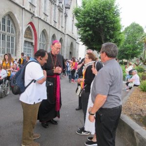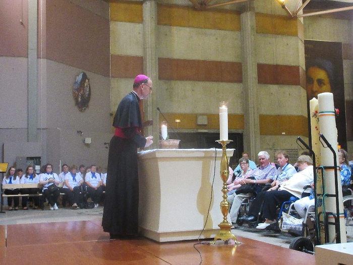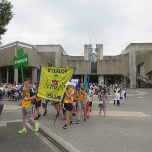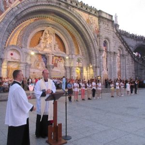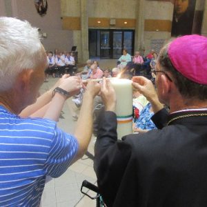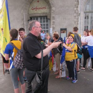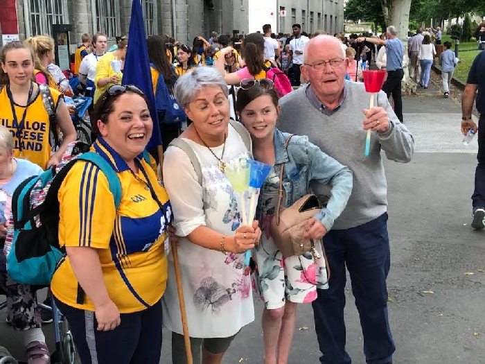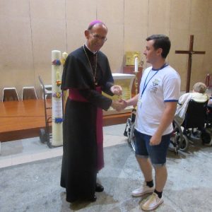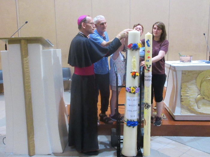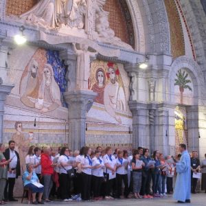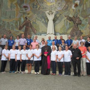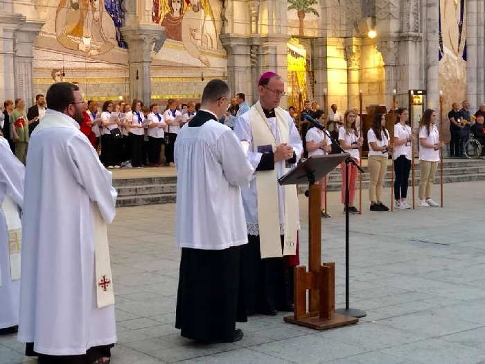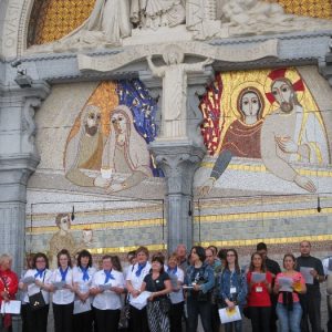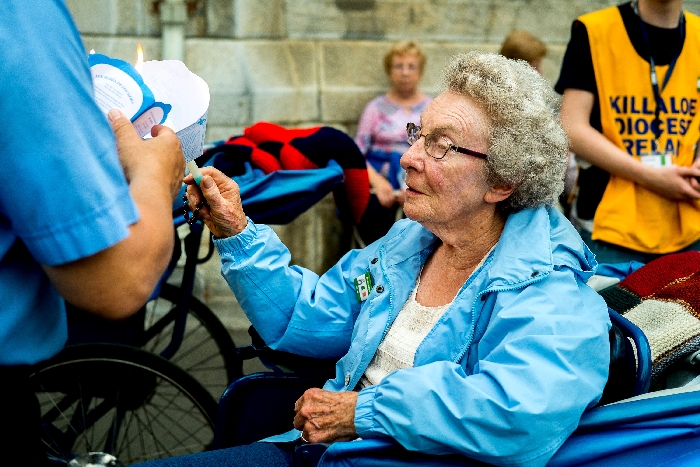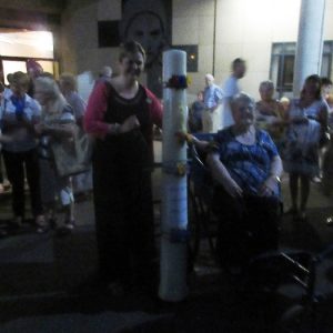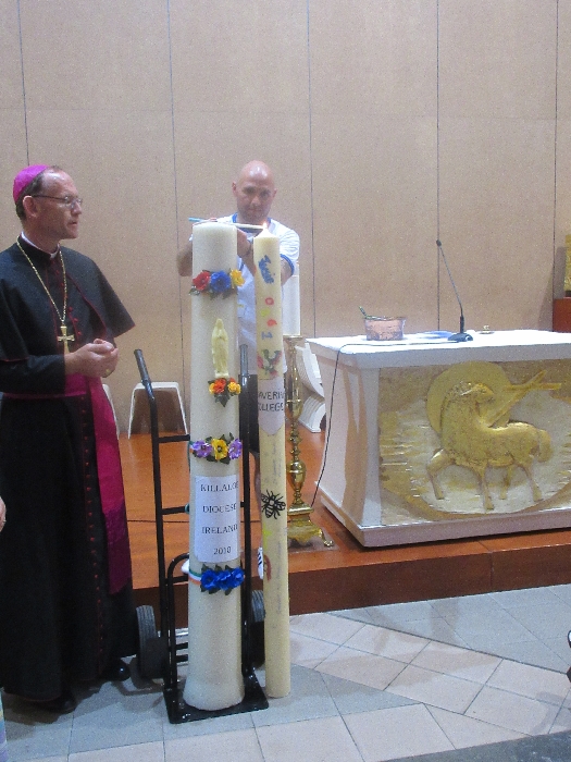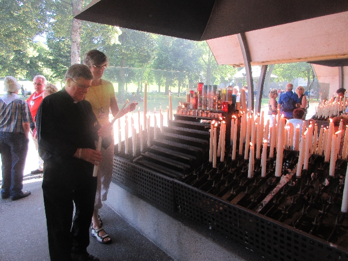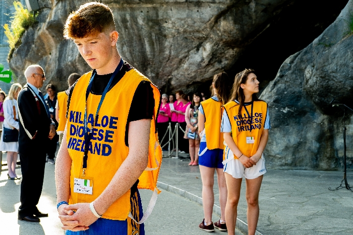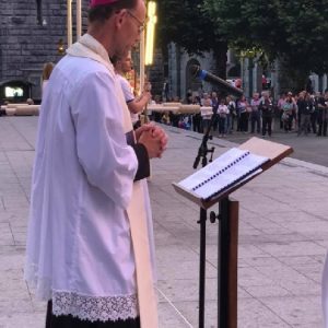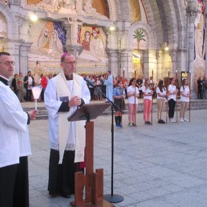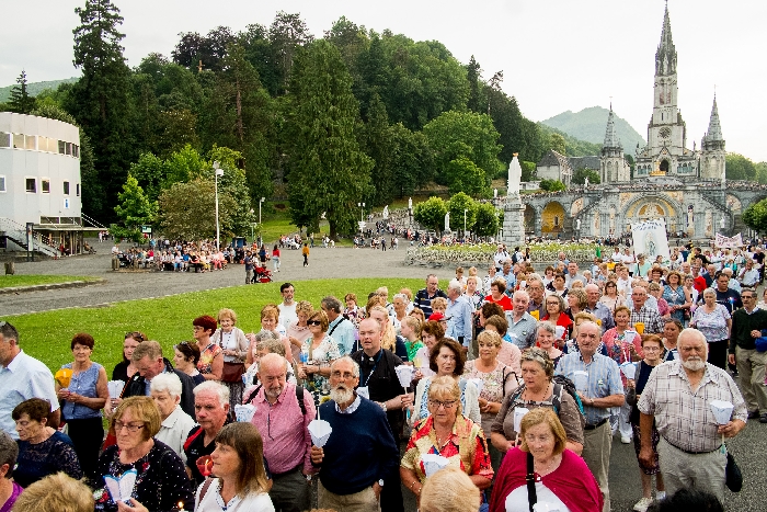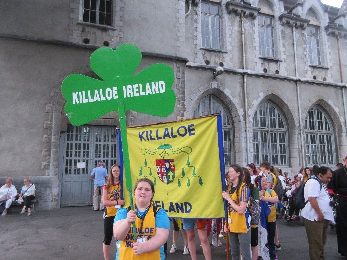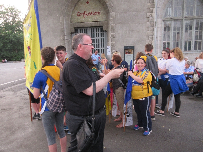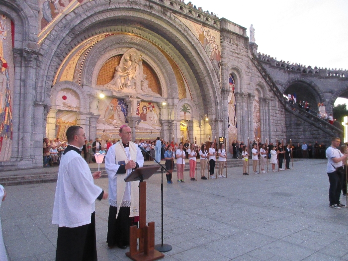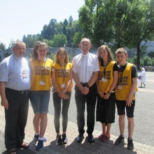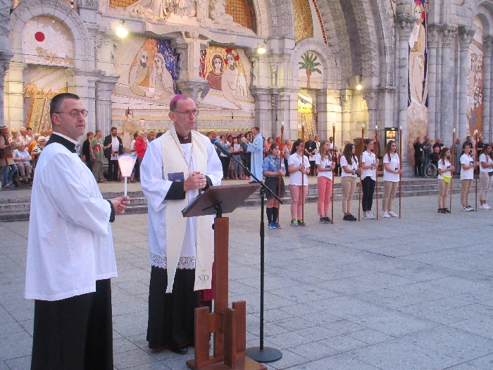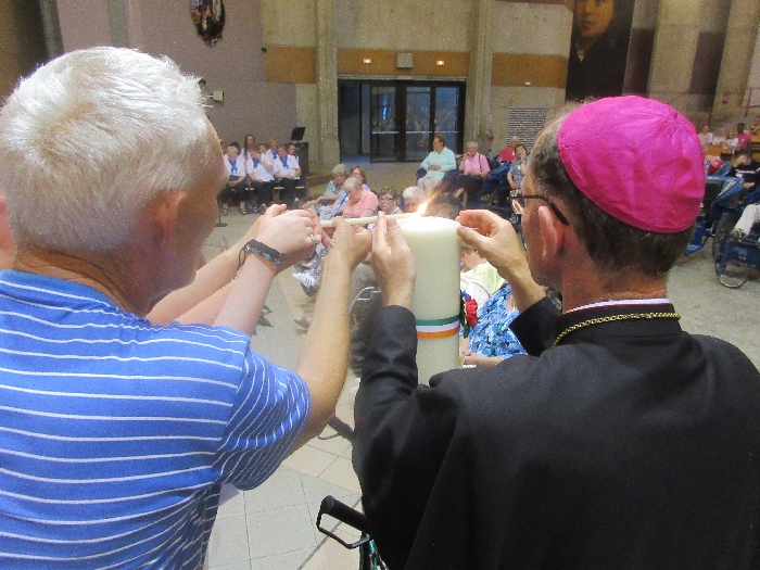 The joyful hearts and generous spirits of our young people was a source of great joy for all of us. No task was too much trouble as they faithfully carried out their roles in supporting our sick and assisted pilgrims. Experience tells us that these days will be a defining moment in the lives, growth and maturity of these young people. Their service in Lourdes will be a constant reminder of not taking for granted the ways in which they have been blessed with health and life. Their participation in the prayers and liturgies will remind them that faith and worship do have a value in a world that has become increasingly deaf to the call of the spirit of God. Later this year Pope Francis has called a Synod to explore how best the Church can minister to young people. The Shrine authorities here in Lourdes invited our young people from Killaloe Diocese to participate in a preparatory meeting for that Synod. Our young people participated with enthusiasm and can have the confidence of knowing that the opinions they expressed will form part of the deliberations of the Synod that will take place in Rome next October. At the closing ceremony on the last night of the pilgrimage baptismal promises were renewed, religious articles were blessed and our pilgrimage candle was blessed and lit.
