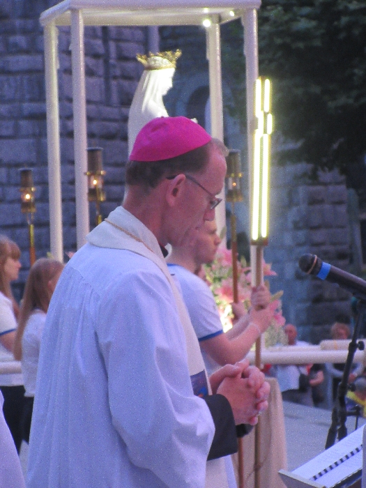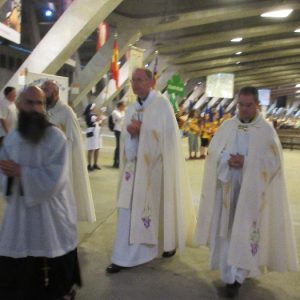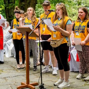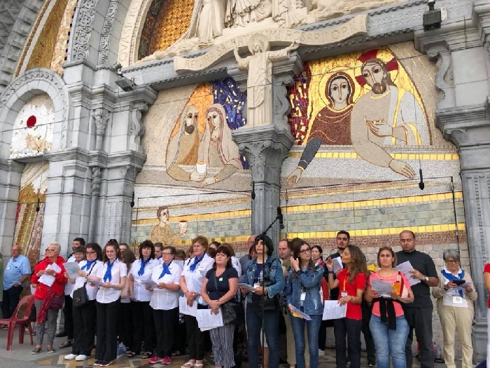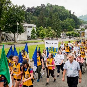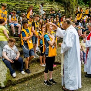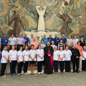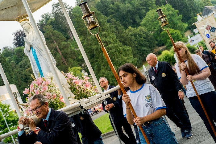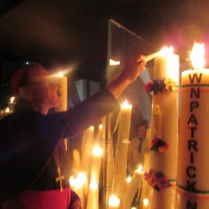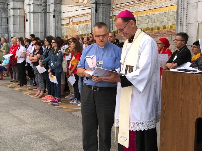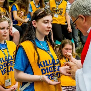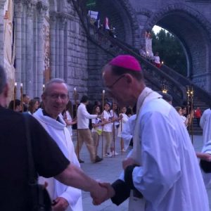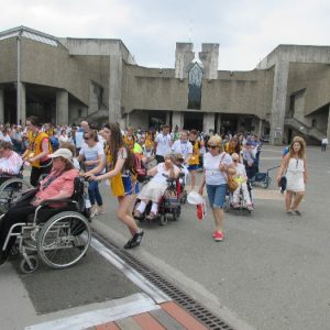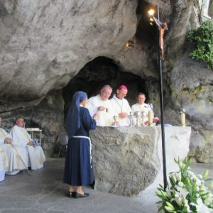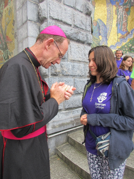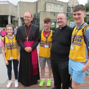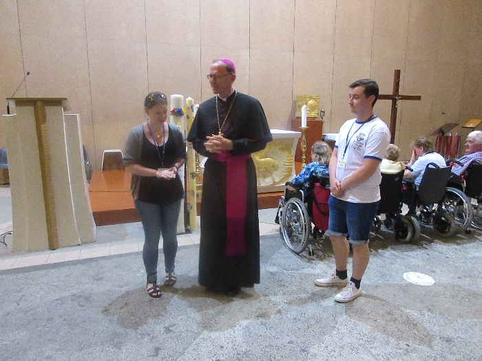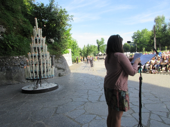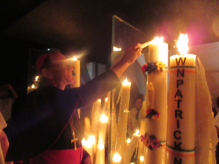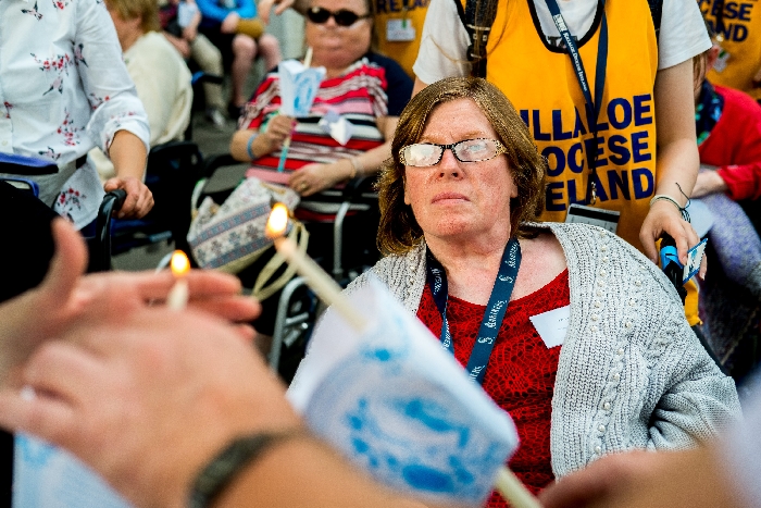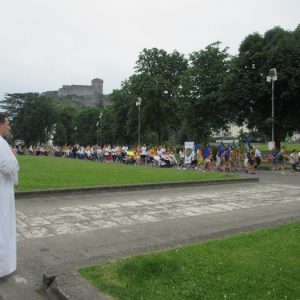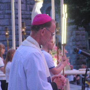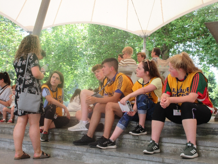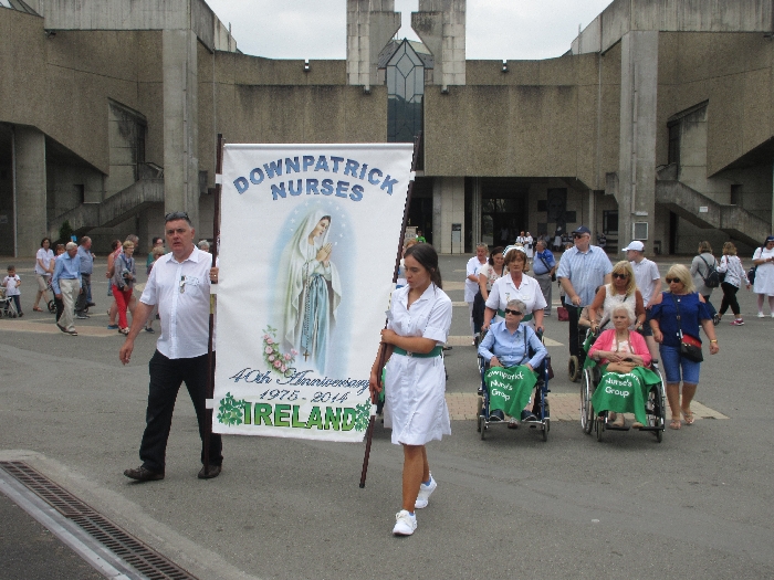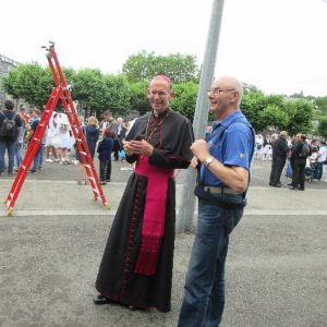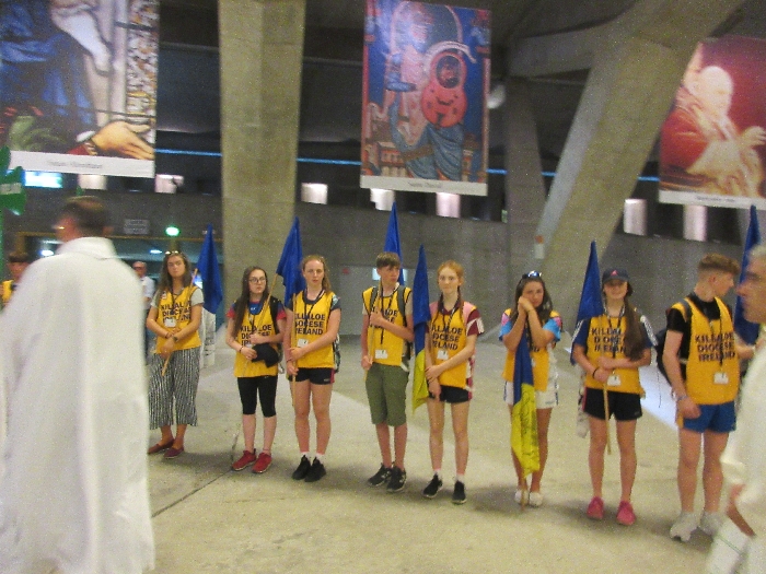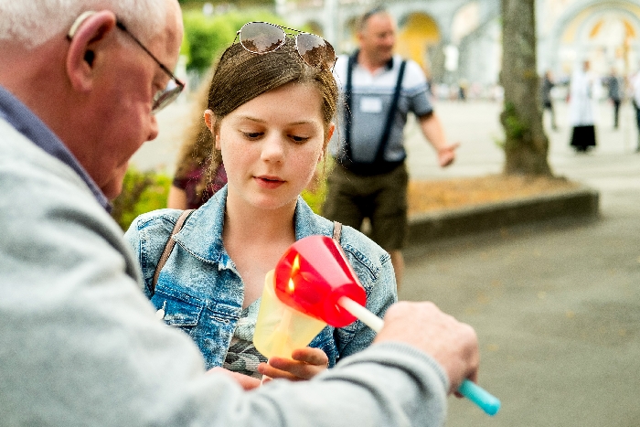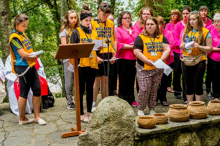 The joyful hearts and generous spirits of our young people was a source of great joy for all of us. No task was too much trouble as they faithfully carried out their roles in supporting our sick and assisted pilgrims. Experience tells us that these days will be a defining moment in the lives, growth and maturity of these young people. Their service in Lourdes will be a constant reminder of not taking for granted the ways in which they have been blessed with health and life. Their participation in the prayers and liturgies will remind them that faith and worship do have a value in a world that has become increasingly deaf to the call of the spirit of God. Later this year Pope Francis has called a Synod to explore how best the Church can minister to young people. The Shrine authorities here in Lourdes invited our young people from Killaloe Diocese to participate in a preparatory meeting for that Synod. Our young people participated with enthusiasm and can have the confidence of knowing that the opinions they expressed will form part of the deliberations of the Synod that will take place in Rome next October. At the closing ceremony on the last night of the pilgrimage baptismal promises were renewed, religious articles were blessed and our pilgrimage candle was blessed and lit.