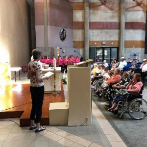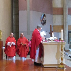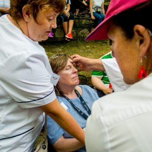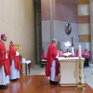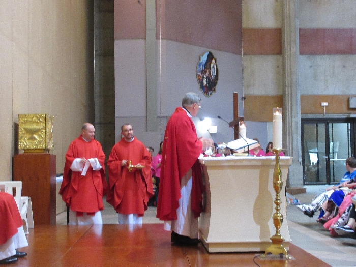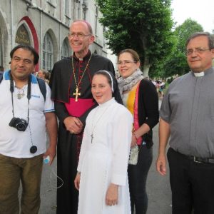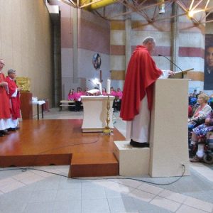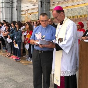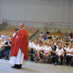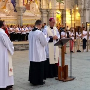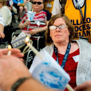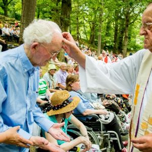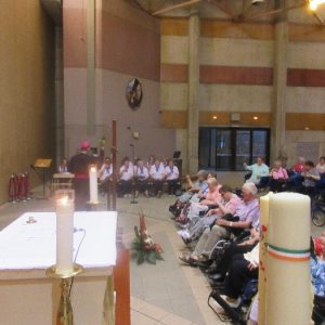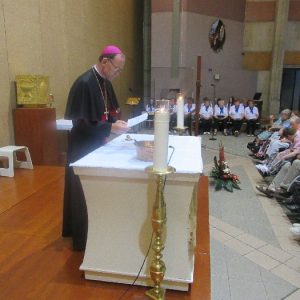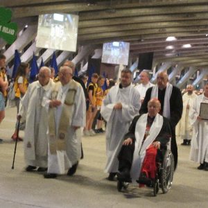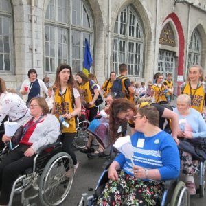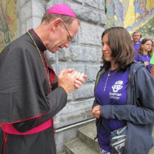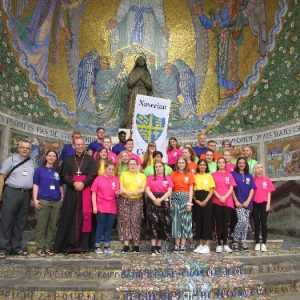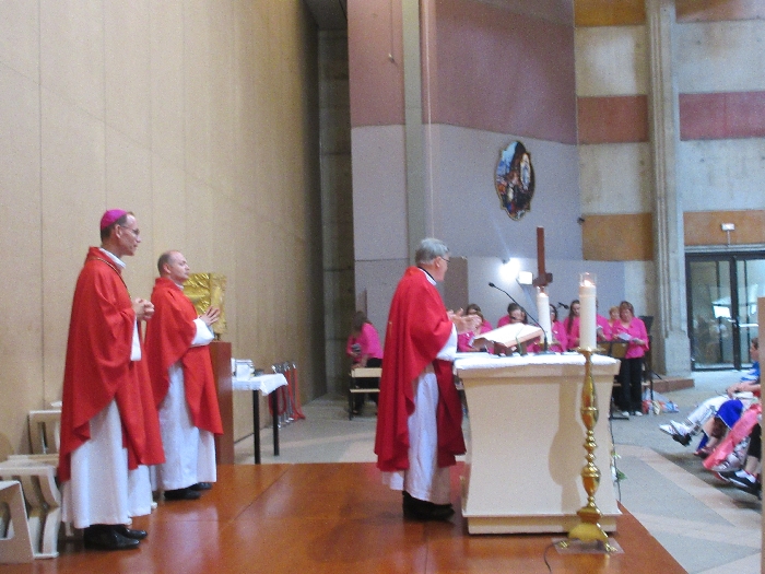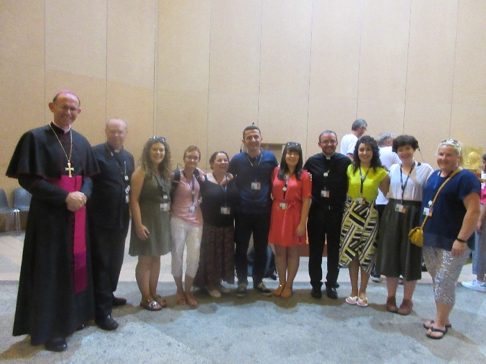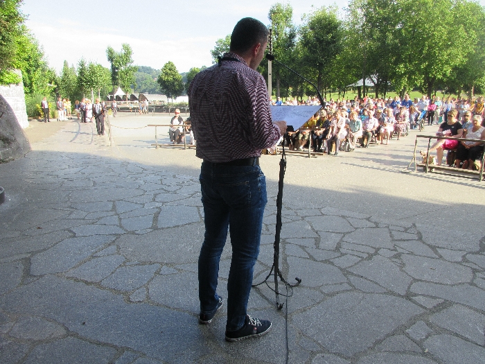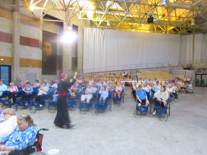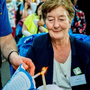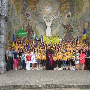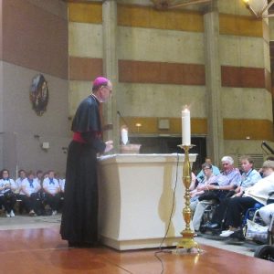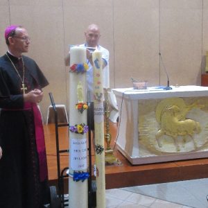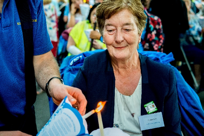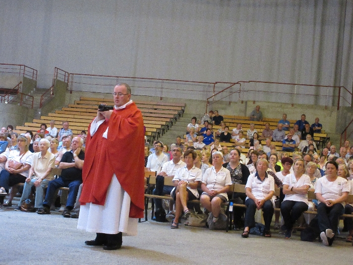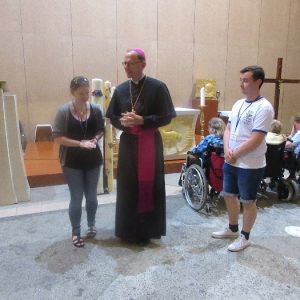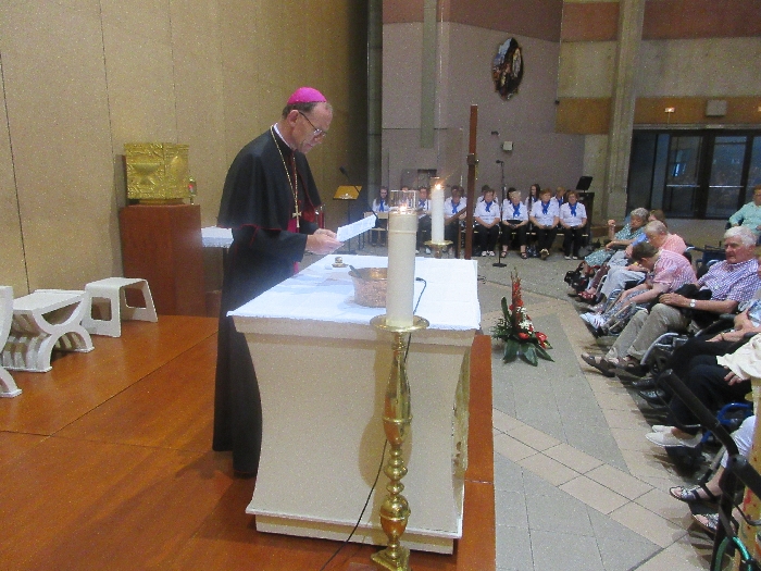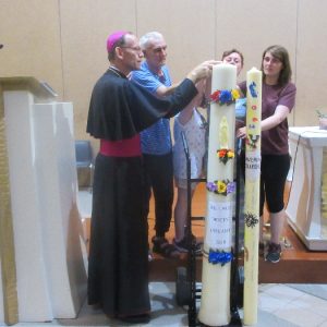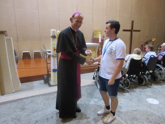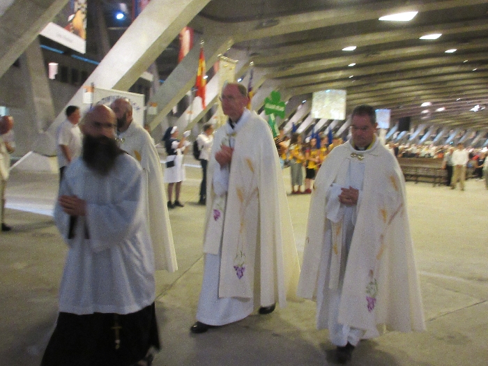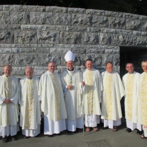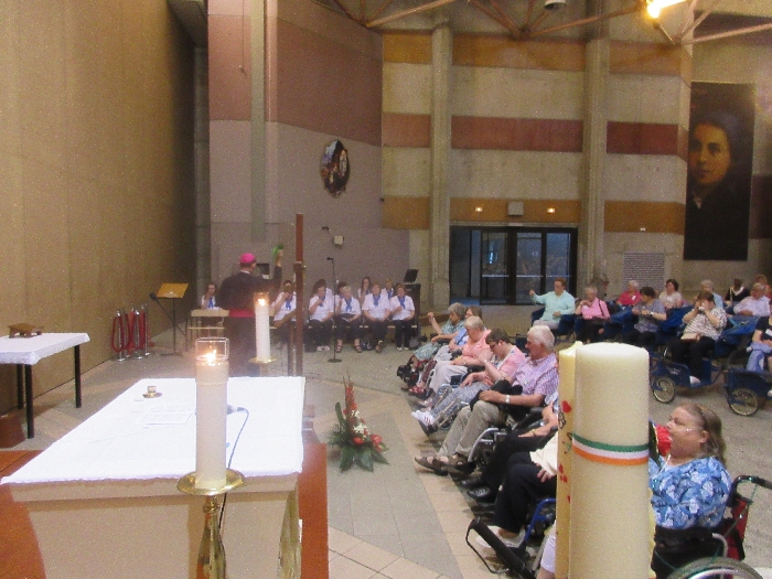 The joyful hearts and generous spirits of our young people was a source of great joy for all of us. No task was too much trouble as they faithfully carried out their roles in supporting our sick and assisted pilgrims. Experience tells us that these days will be a defining moment in the lives, growth and maturity of these young people. Their service in Lourdes will be a constant reminder of not taking for granted the ways in which they have been blessed with health and life. Their participation in the prayers and liturgies will remind them that faith and worship do have a value in a world that has become increasingly deaf to the call of the spirit of God. Later this year Pope Francis has called a Synod to explore how best the Church can minister to young people. The Shrine authorities here in Lourdes invited our young people from Killaloe Diocese to participate in a preparatory meeting for that Synod. Our young people participated with enthusiasm and can have the confidence of knowing that the opinions they expressed will form part of the deliberations of the Synod that will take place in Rome next October. At the closing ceremony on the last night of the pilgrimage baptismal promises were renewed, religious articles were blessed and our pilgrimage candle was blessed and lit.