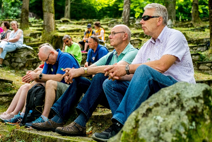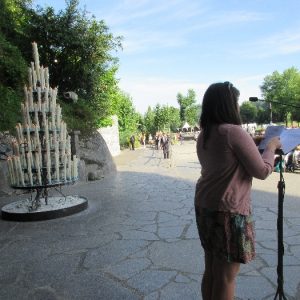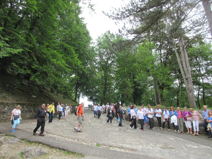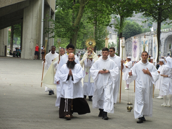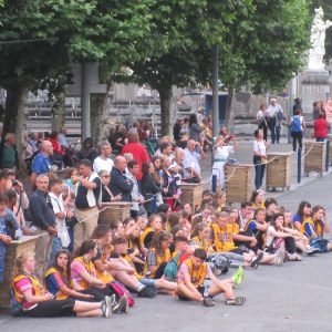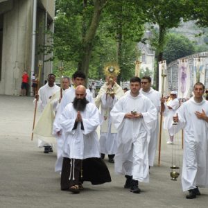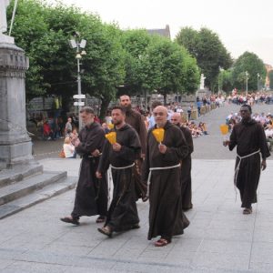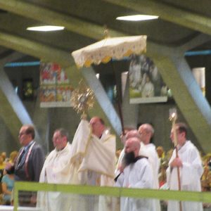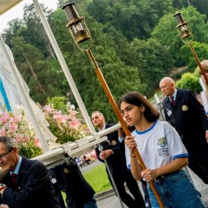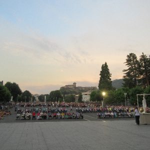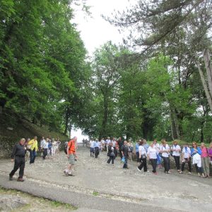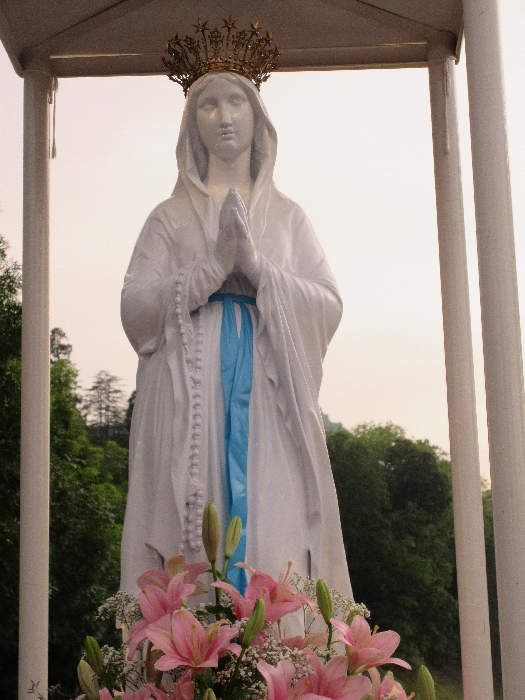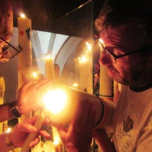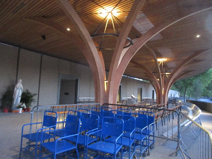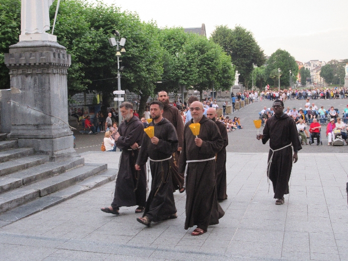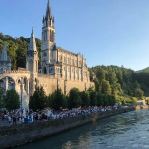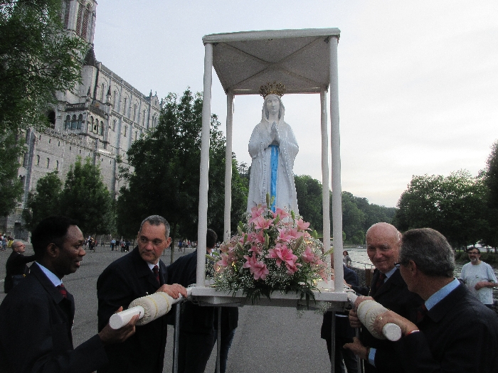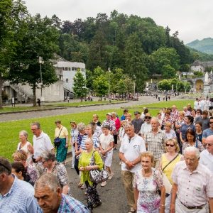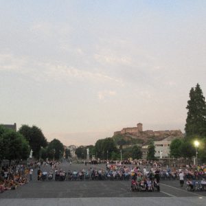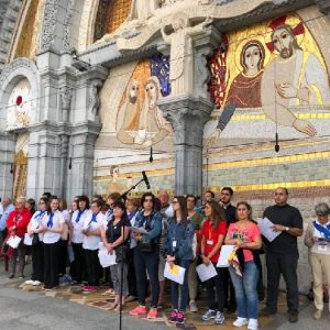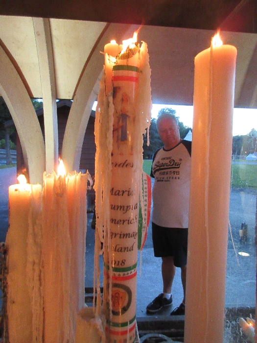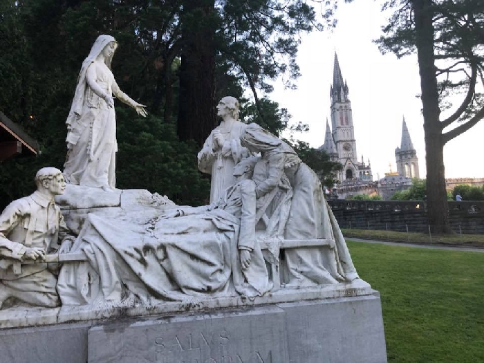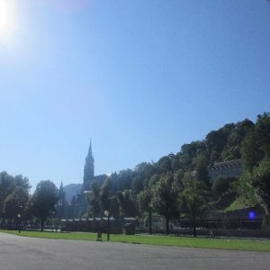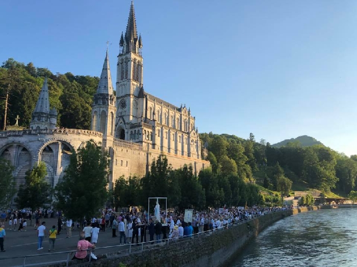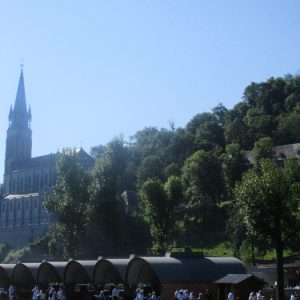 That spring still flows today and fills the baths in which the pilgrims of today still bathe as part of their journey. The Killaloe pilgrims did just that in advance of leading the Eucharistic Procession in the afternoon. Each night of the pilgrimage concluded with a praying of the rosary by candlelight before the grotto. During this restful time many will have recalled those for whom they were asked to pray and the needs that they carried in their hearts. Certainly there were busy and active times on this journey. The day in Lourdes is hinged by two great processions. The procession of the Eucharist in the afternoon and the great Marian Torchlight procession as the shadows of evening fall are attended by many thousands of visitors. We had the opportunity to lead both and carried our banners high. But there are the quiet and reflective moments too when real healing of the spirit can take place.