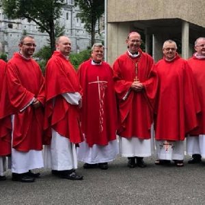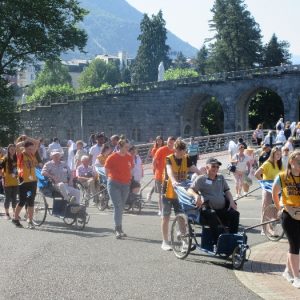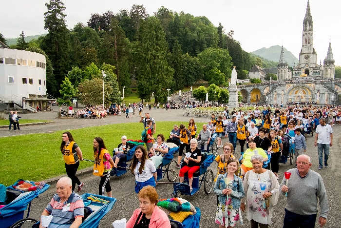 Over 450 pilgrims from across the Diocese boarded three aircraft in Shannon Airport on Tuesday 26th June departing for Lourdes airport in the south of France. By late on Tuesday all the pilgrims and their luggage had arrived safely in the foothills of the Pyrenees mountains to begin the 62nd annual Killaloe Diocesan Pilgrimage to the International Marian Shrine at Lourdes. Among those travelling were 60 assisted and sick pilgrims as well as almost 50 young people between the ages of 16 and 18 representing schools and parishes from all parts of the Diocese. Since the Virgin Mary appeared here to the young Bernadette Soubirous in 1858, countless pilgrims have made their way to this place from all corners of the world to pray and seek for healing and peace.