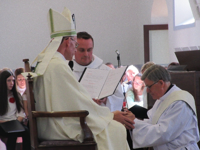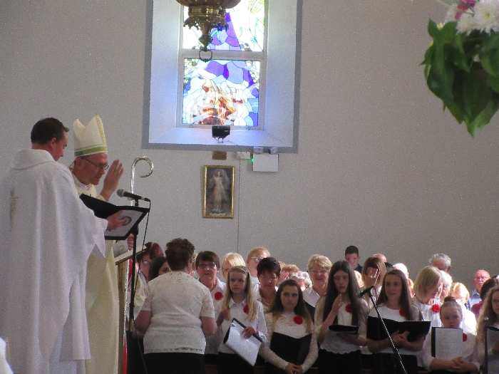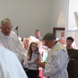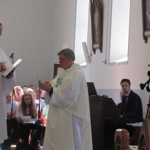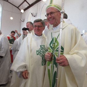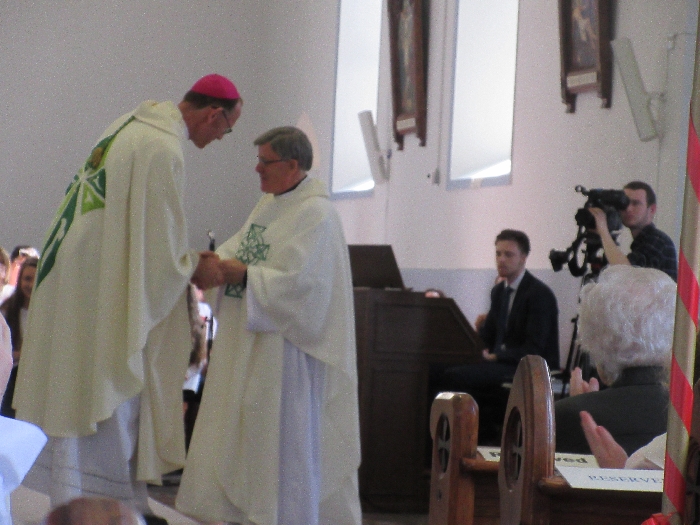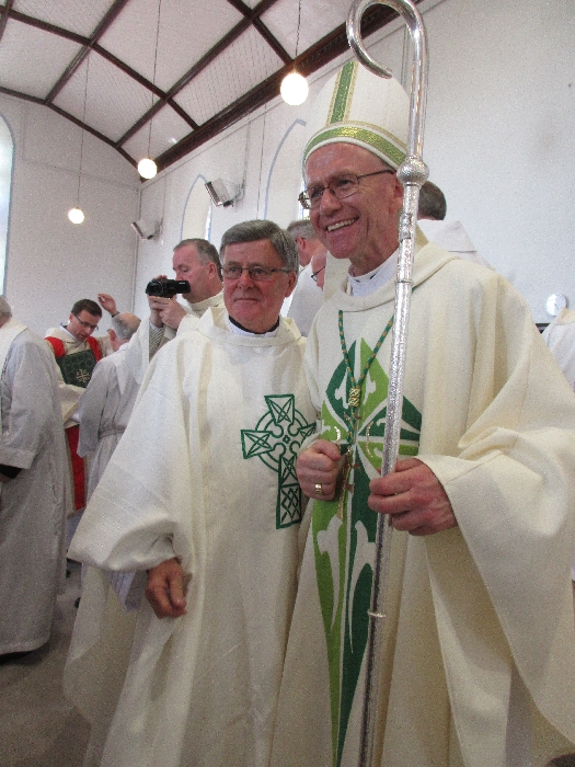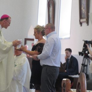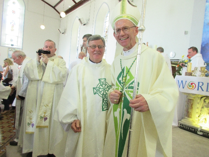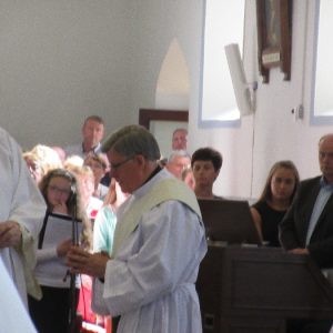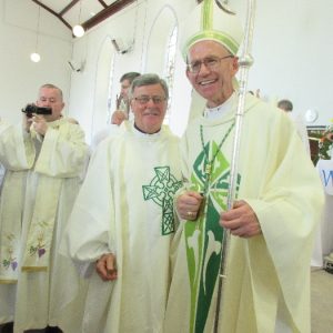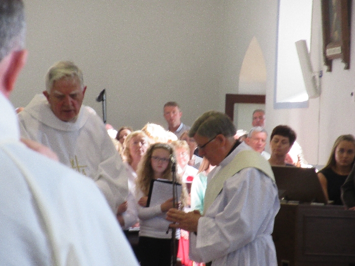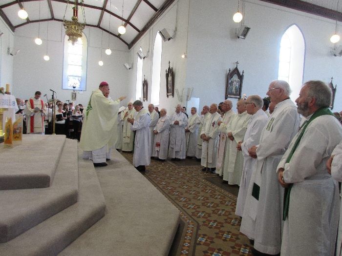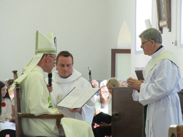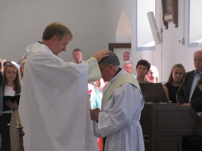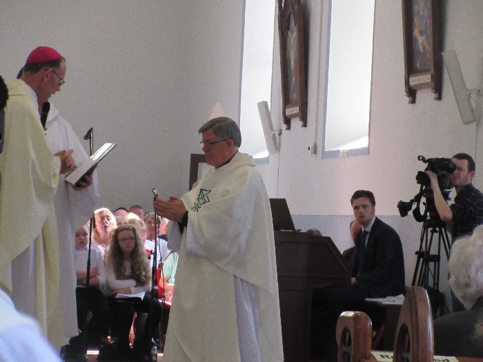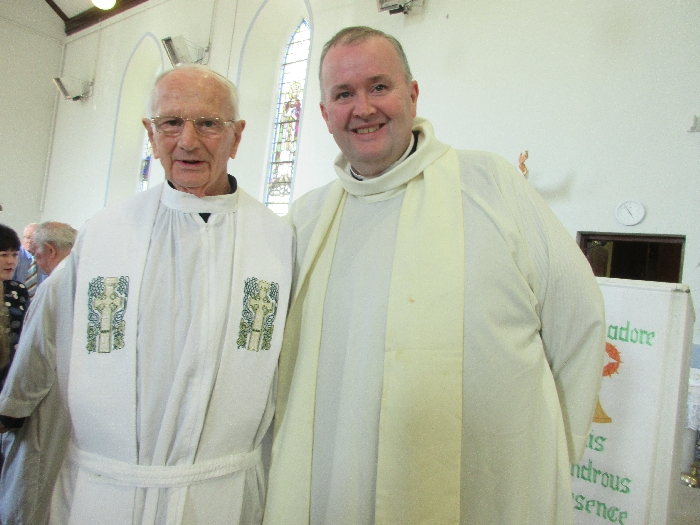 Rev. Martin Shanahan was ordained to the priesthood for the Diocese of Killaloe by Bishop Fintan Monahan in St. Mary’s Church, Mullagh, Co. Clare on Sunday 3rd June 2018 at 3.00pm, (the Feast of Corpus Christi). In his homily Bishop Fintan focused on the centrality of the Eucharist in the life of the priest. He reminded the congregation of Martin’s great work in spearheading the renewal of Eucharistic Adoration in many parishes throughout the Diocese of Killaloe saying; “The diocese is deeply indebted to him for the outstanding service offered in promoting this powerful prayer apostolate. His work has a long lasting and continuing legacy of prayerfulness and communion with God in such a special way.” Bishop Fintan also expressed gratitude for the experience that Martin brings to the priesthood from his working and family life. Martin’s wife, Mary Margaret, who died in 2011, was especially remembered during the ordination ceremony and their son Eoin was the organist for today’s ceremony.