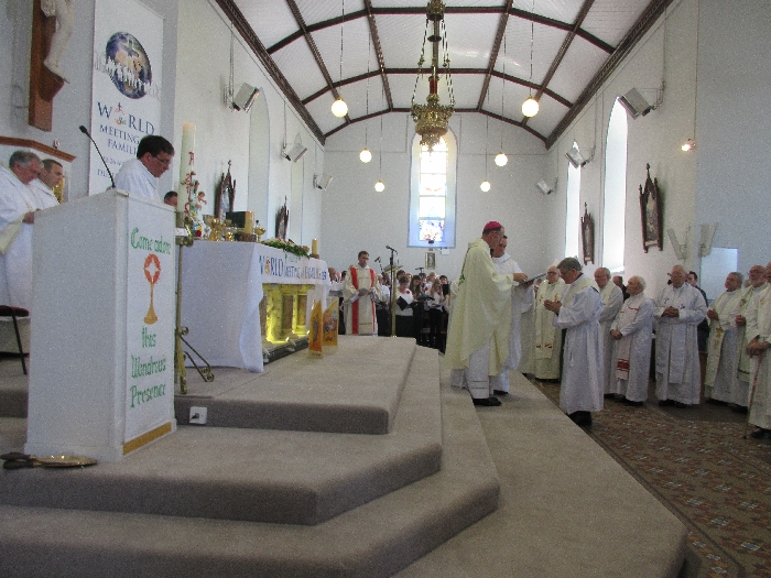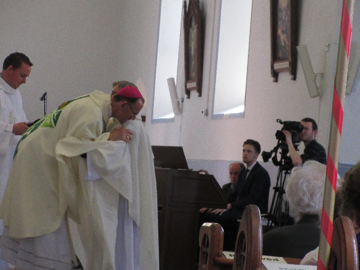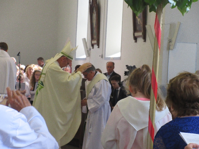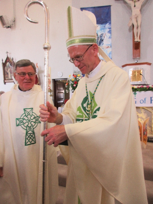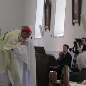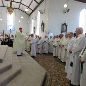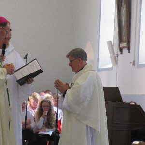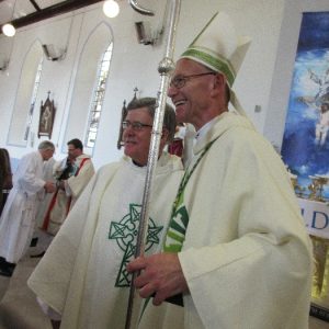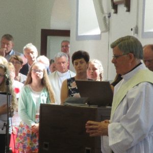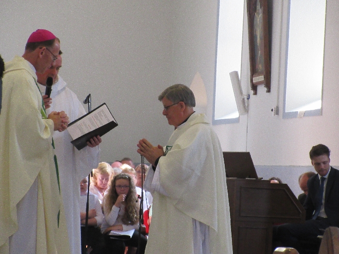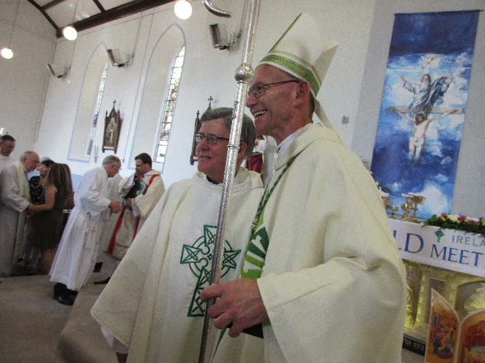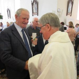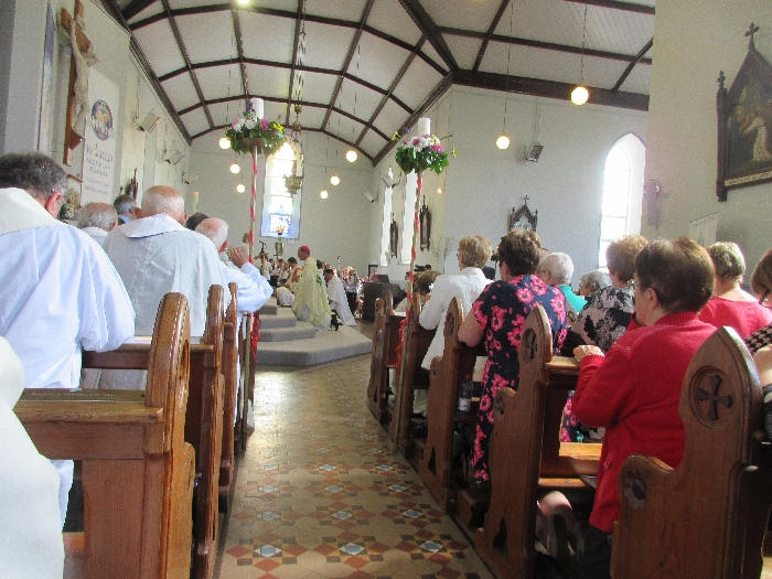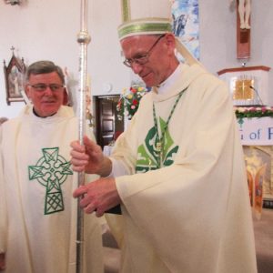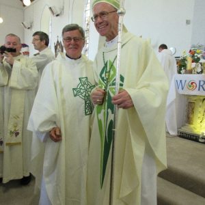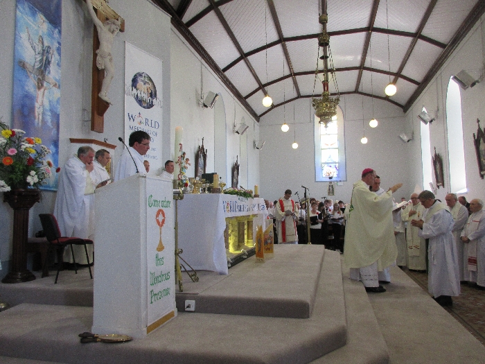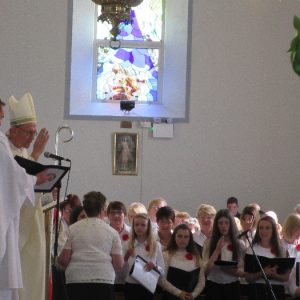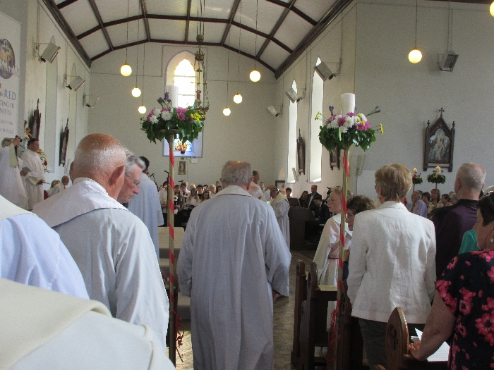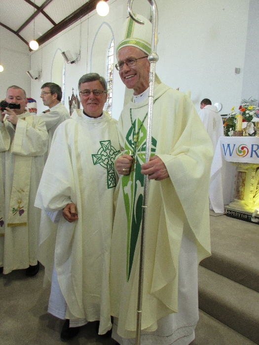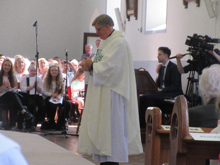 Rev. Martin Shanahan was ordained to the priesthood for the Diocese of Killaloe by Bishop Fintan Monahan in St. Mary’s Church, Mullagh, Co. Clare on Sunday 3rd June 2018 at 3.00pm, (the Feast of Corpus Christi). In his homily Bishop Fintan focused on the centrality of the Eucharist in the life of the priest. He reminded the congregation of Martin’s great work in spearheading the renewal of Eucharistic Adoration in many parishes throughout the Diocese of Killaloe saying; “The diocese is deeply indebted to him for the outstanding service offered in promoting this powerful prayer apostolate. His work has a long lasting and continuing legacy of prayerfulness and communion with God in such a special way.” Bishop Fintan also expressed gratitude for the experience that Martin brings to the priesthood from his working and family life. Martin’s wife, Mary Margaret, who died in 2011, was especially remembered during the ordination ceremony and their son Eoin was the organist for today’s ceremony.