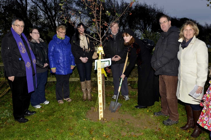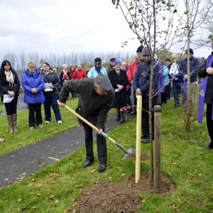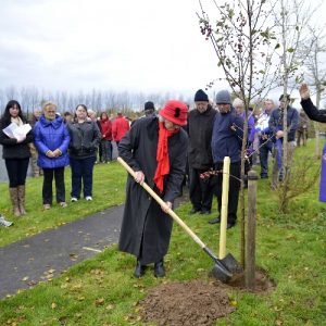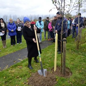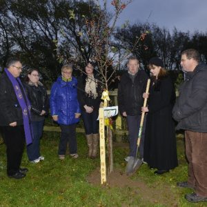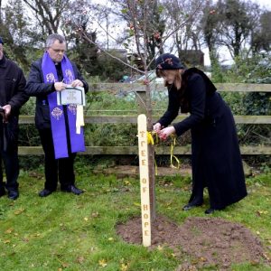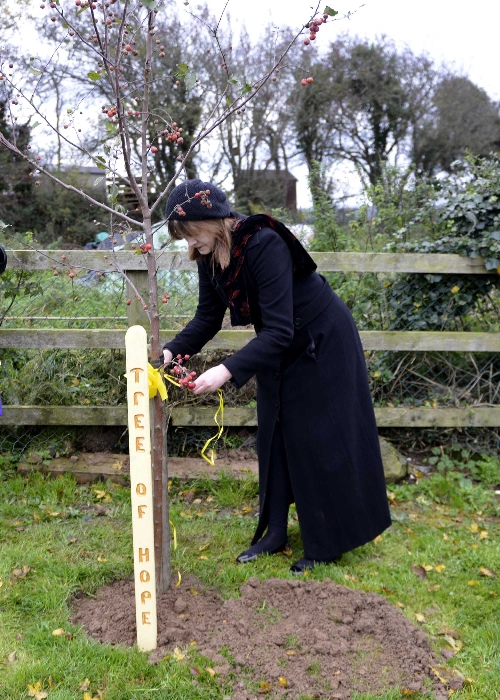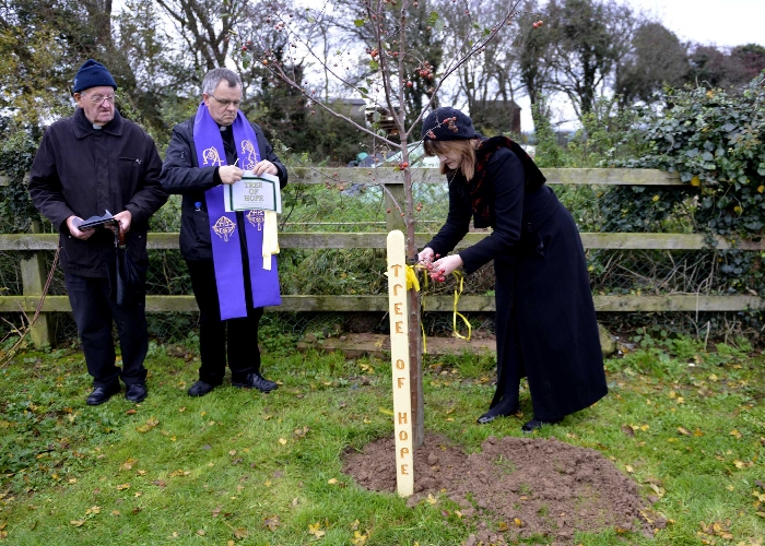 Planting a Tree of Hope is intended to show support and to provide a place of comfort for those who have been bereaved by suicide or who are living with mental health issues such as depression. The Pastoral Council were approached with a request that a Tree of Hope be planted in Shannon Parish and Noreen Bracken planted the tree, a crab tree, next to the statue in Illaunmanagh Cemetery on Sunday 2nd November, All Souls Day. Balloons were then released in honour of those that we were thinking of. The planting of the Tree of Hope was the first to take place outside of Dublin. Our thanks to Niall & Noreen Fulham for providing all of the information required and for the hand carved stake for the tree, and also to Noreen Bracken for the suggestion. Visit the Facebook page https://facebook.com//TreesOfHope for further information. Our thanks to Joe Buckley for the photographs.