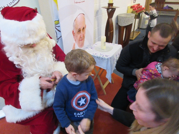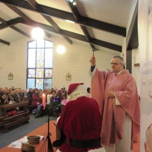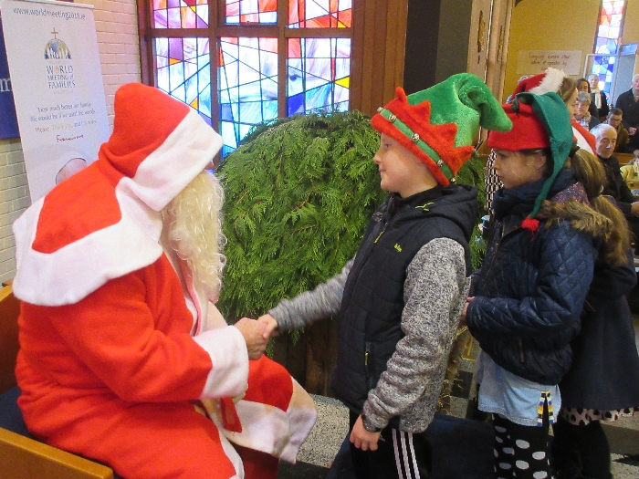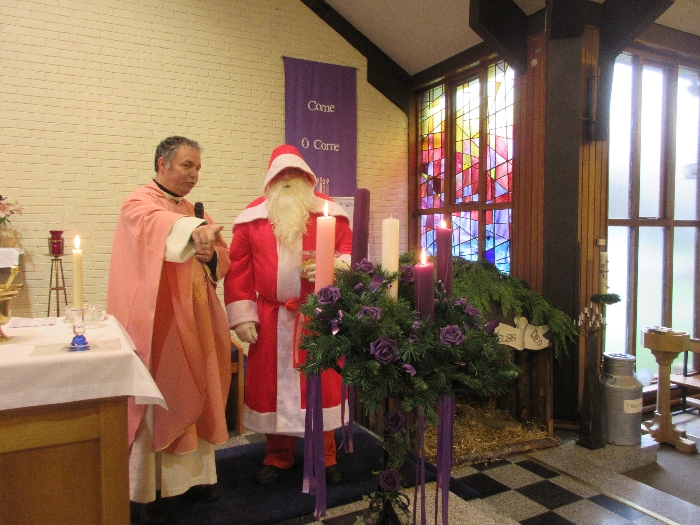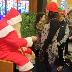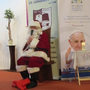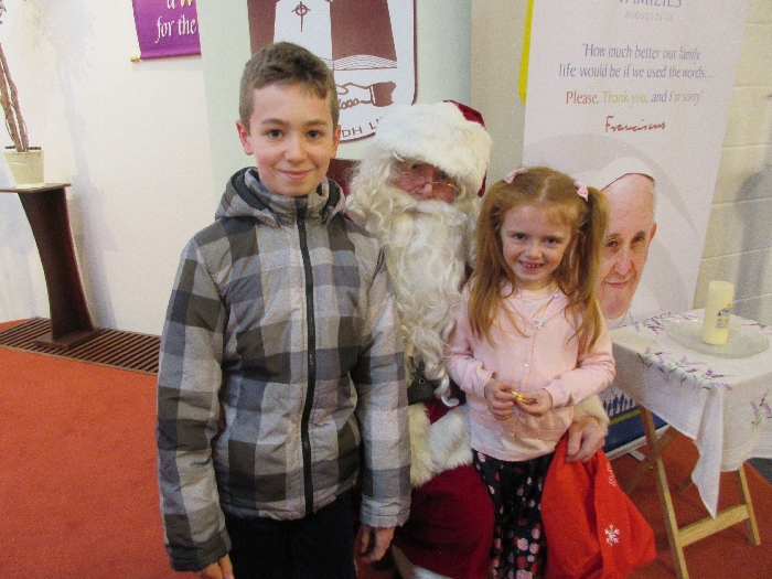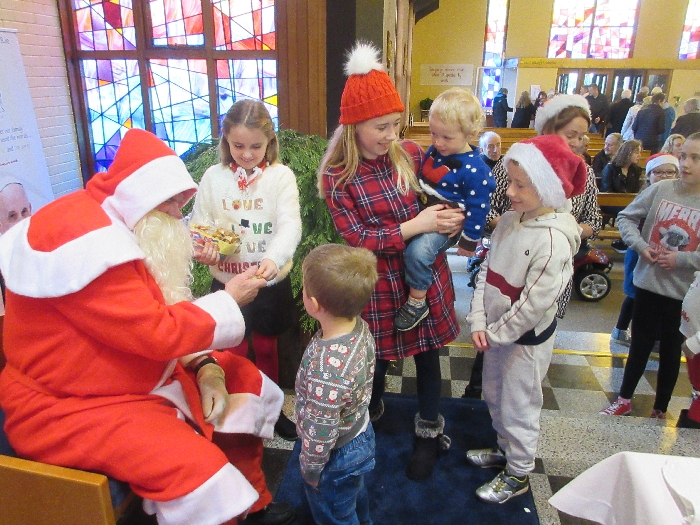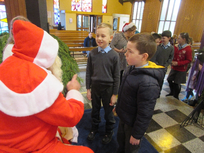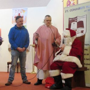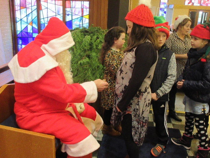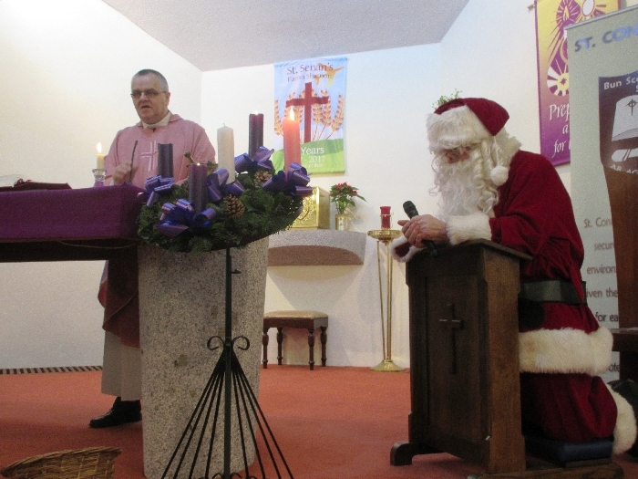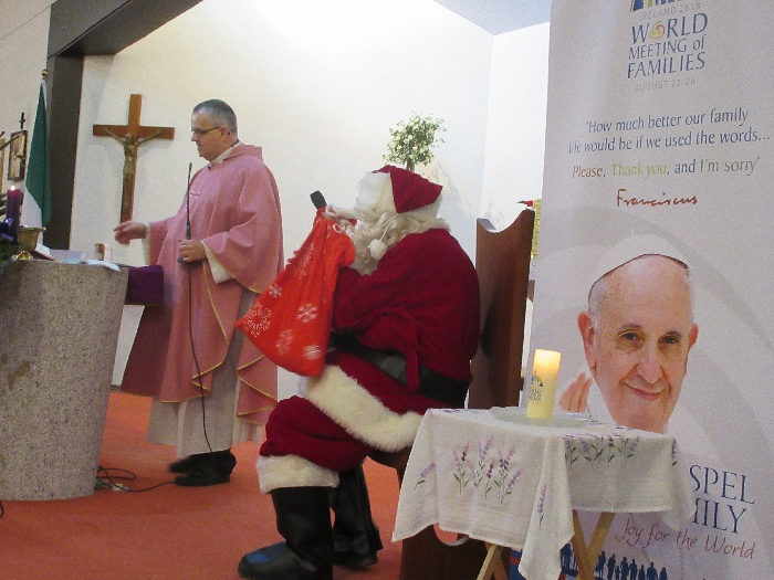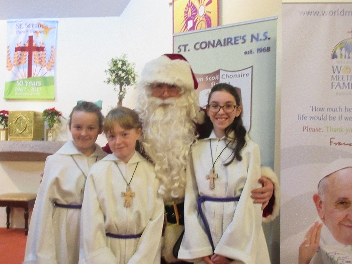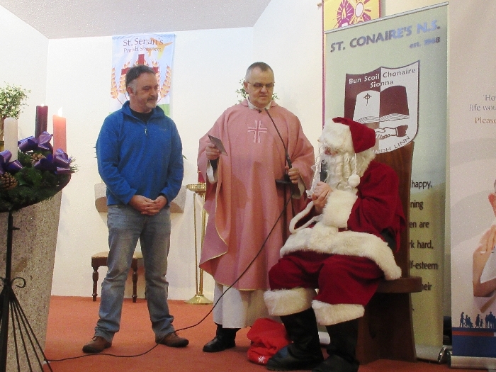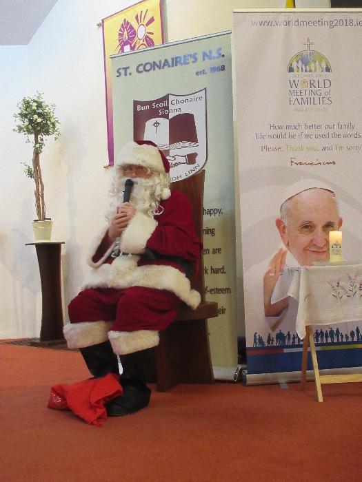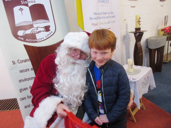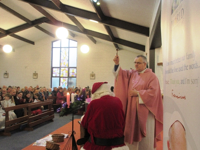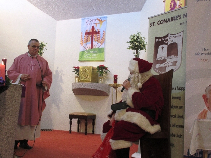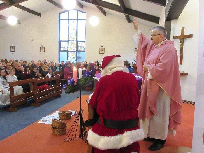 Shannon Parish was privileged to welcome Santa to two Masses on Sunday in which children were preparing for First Holy Communion. It was Bambinelli Sunday, The Sunday in Advent that people bring the figure of baby Jesus to Church to have it blessed. Santa brought his figure of baby Jesus for a blessing so that his crib at home in the North Pole would be ready for Christmas Eve. Santa spoke with the children and reassured them that he would be back on Christmas Eve. Our thanks to Michelle Justice for the photos.
