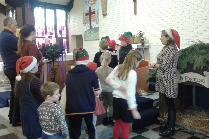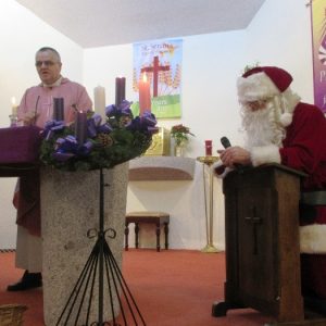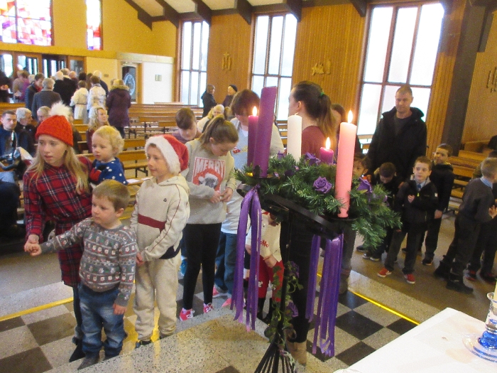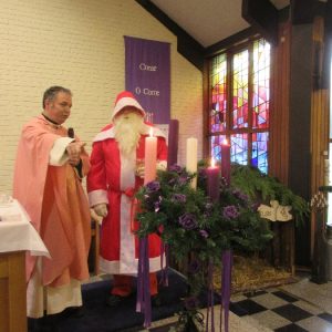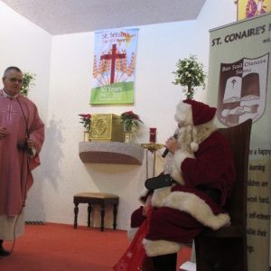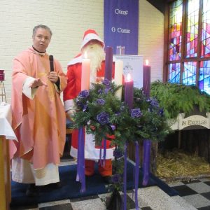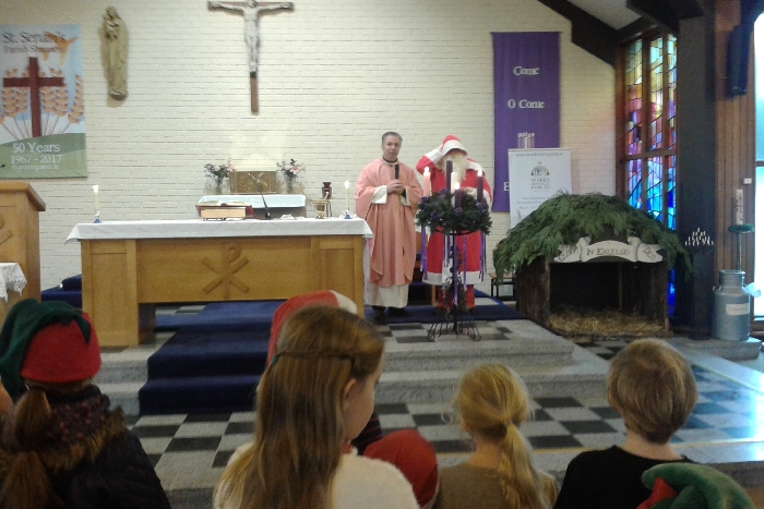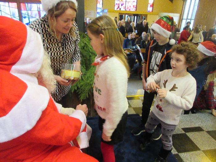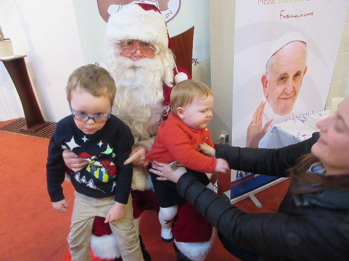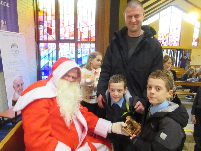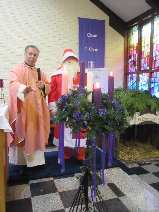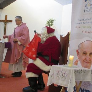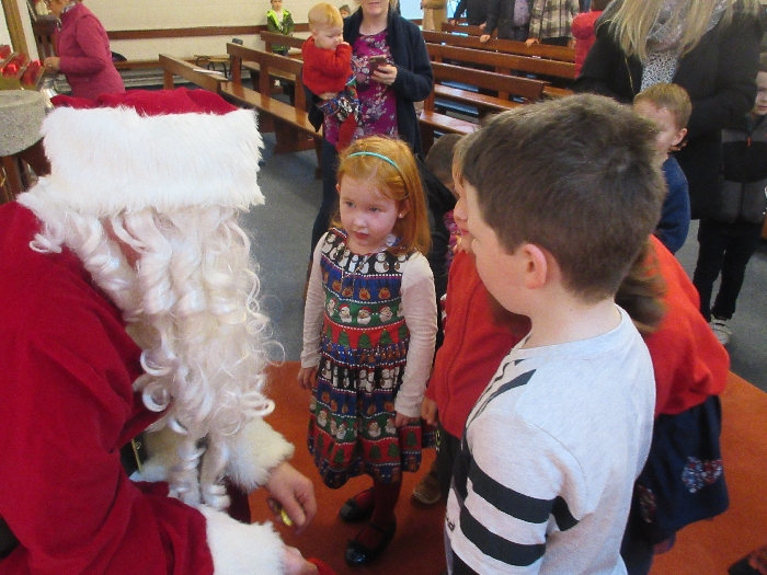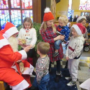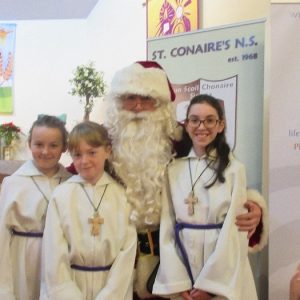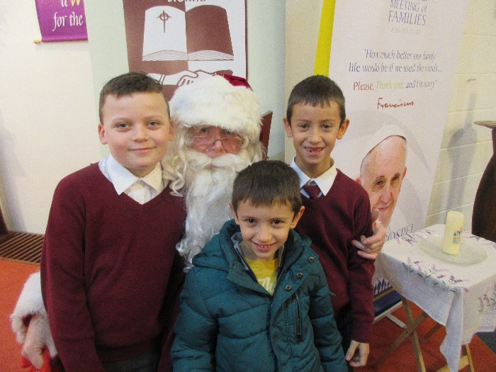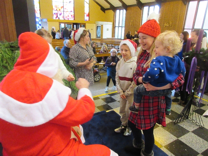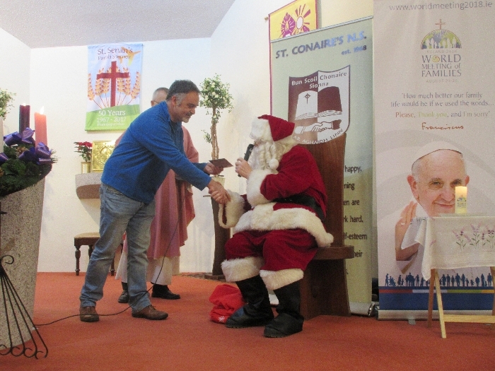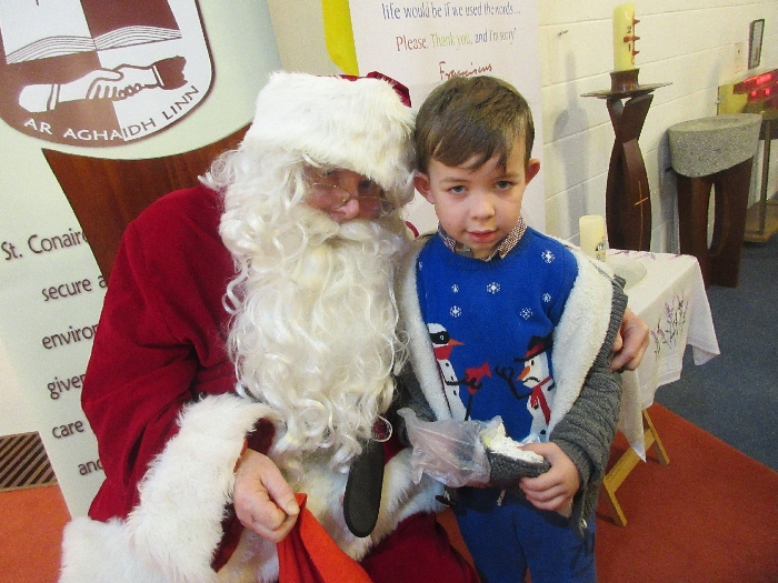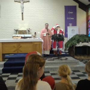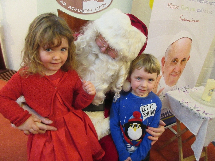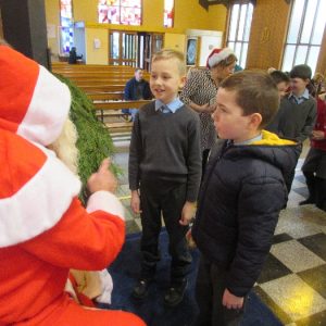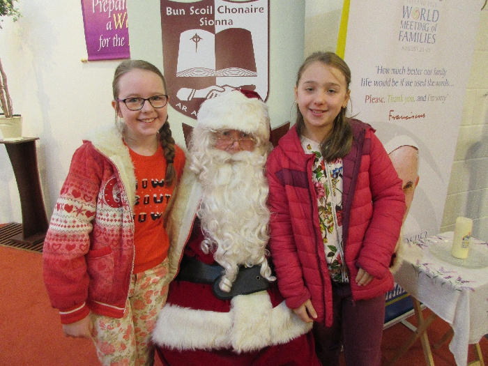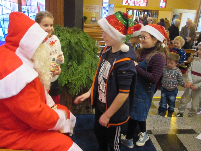 Shannon Parish was privileged to welcome Santa to two Masses on Sunday in which children were preparing for First Holy Communion. It was Bambinelli Sunday, The Sunday in Advent that people bring the figure of baby Jesus to Church to have it blessed. Santa brought his figure of baby Jesus for a blessing so that his crib at home in the North Pole would be ready for Christmas Eve. Santa spoke with the children and reassured them that he would be back on Christmas Eve. Our thanks to Michelle Justice for the photos.