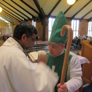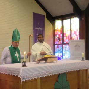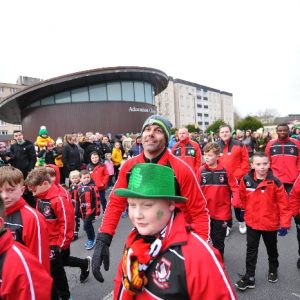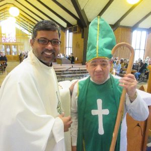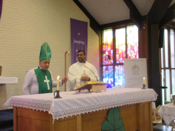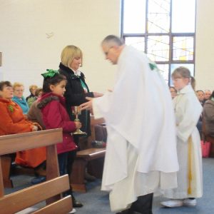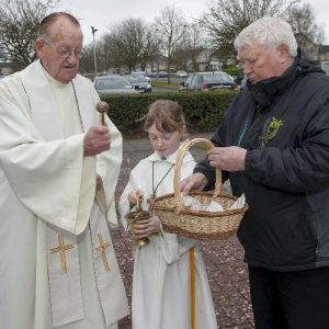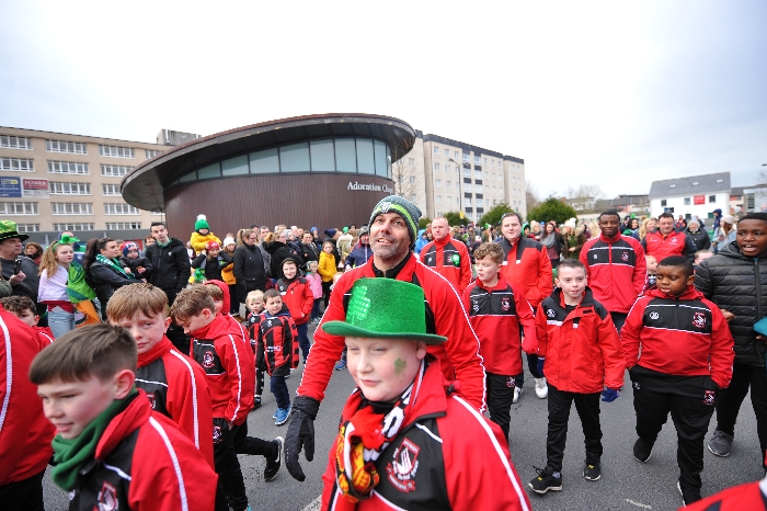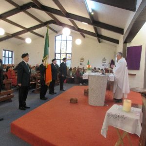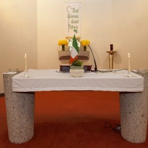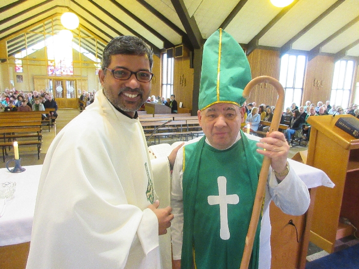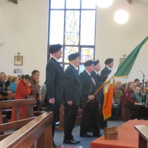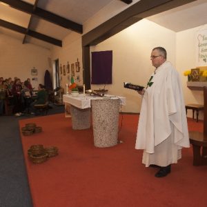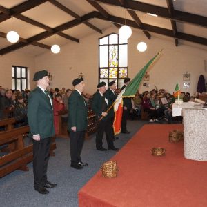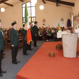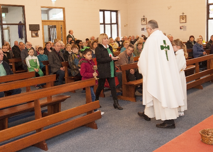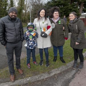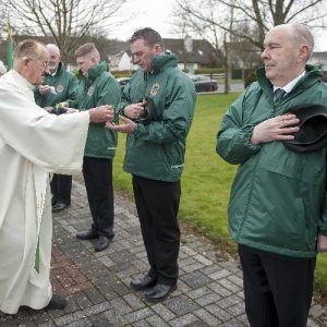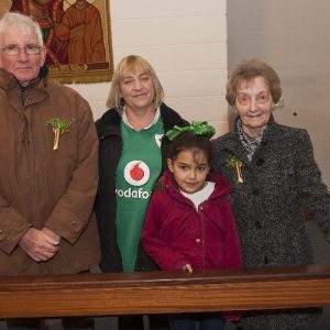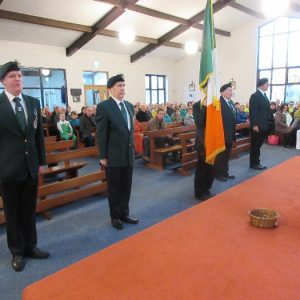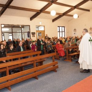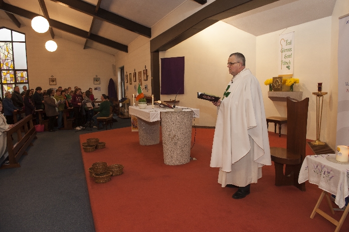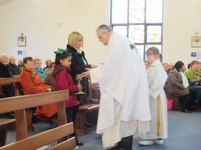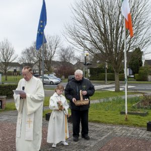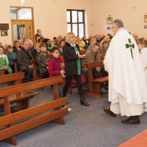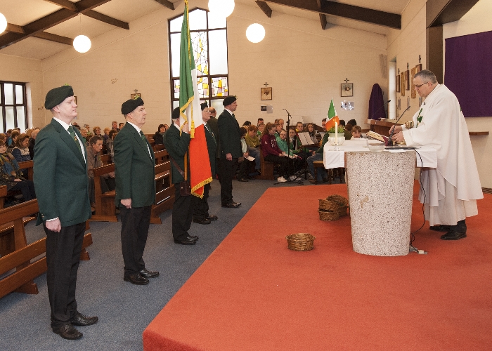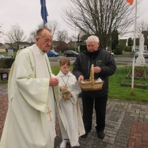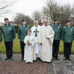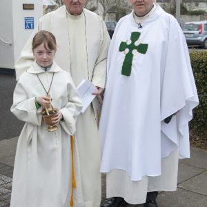 The celebrations for the Feast of St. Patrick began with the traditional Blessing of the Shamrock in the Jubilee Garden of SS John & Paul Church before the 10am Mass. Members of the 22nd Battalion Association provided military honours at Mass. Fr Francis Xavier celebrated his first St Patrick’s Day in Ireland at the 11am Mass. At Mass we met St Patrick himself in the person of Pat Fitzgerald from O’Brien Park who was celebrating his 60th birthday.