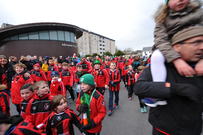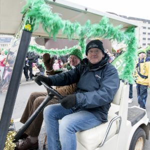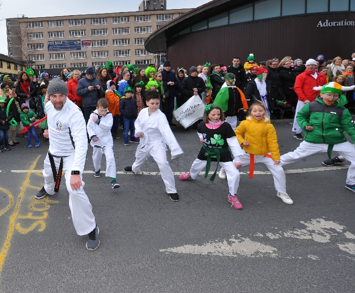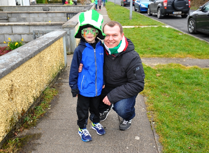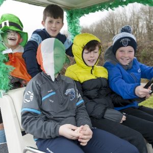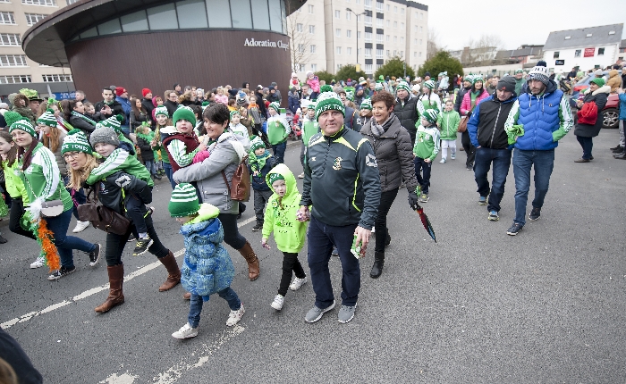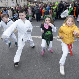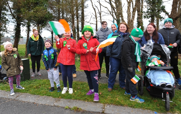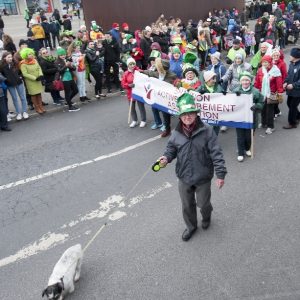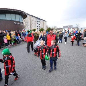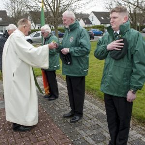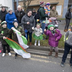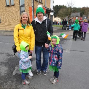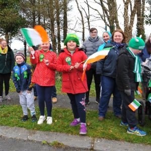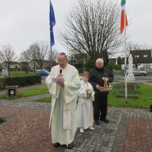 Fr Francis Xavier gave Pat a Blessing for the day. Fr. Arnold celebrated the last Mass of the day at 12.15pm in both Irish and English. In the afternoon the celebrations moved to the Town Centre for the parade. Our thanks to Michelle Justice & Joe Buckley for photos.