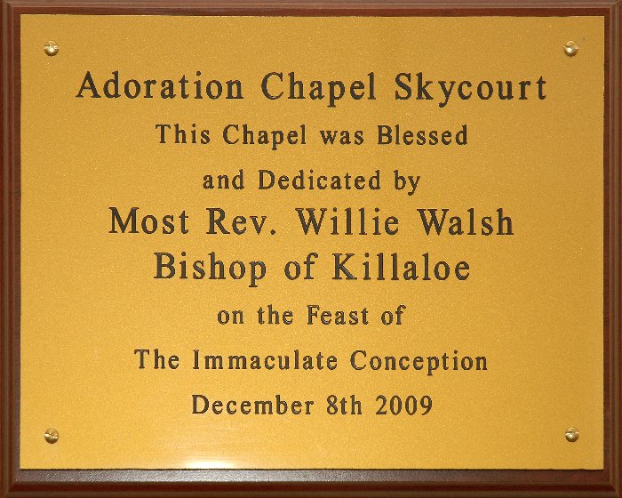 The Eucharistic Adoration Chapel, Skycourt Shopping Centre, Shannon On Tuesday 8th December 2009, the Adoration Chapel in Skycourt was officially opened and blessed by Bishop Walsh. back to gallery back to gallery