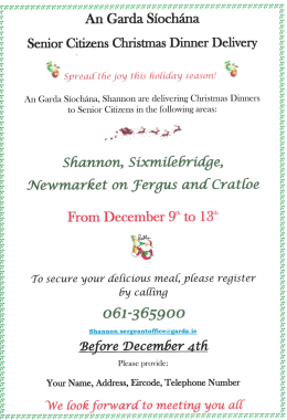An Garda Síochána Shannon, Senior Citizens Christmas Dinner Delivery.