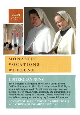 The Cistercian community of 27 nuns living out the monastic way of life at Glencairn Abbey since 1932 are hosting an upcoming Monastic Vocations Weekend to promote vocations to the Cistercian monastic way of life.