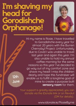 Rosie had to think outside the box and come up with something novel and new! So… she decided to go drastic and shave her head on 12th June!!! Rosie has such a longterm and emotional connection with the children in the Orphanage and she has missed them dearly in the last two years. Her longtime goal is to create a purpose built Sensory Room to provide physical and mental stimulus for the children who are suffering from physical disabilities, developmental delays and sensory impairments. It can help their sight, sound, touch and hearing, as well as encouraging independence. So, let’s support Rosie in such a worthwhile cause! You can donate via the iDonate link or on Revolut (DM for details). www.idonate/Rosie Byrne