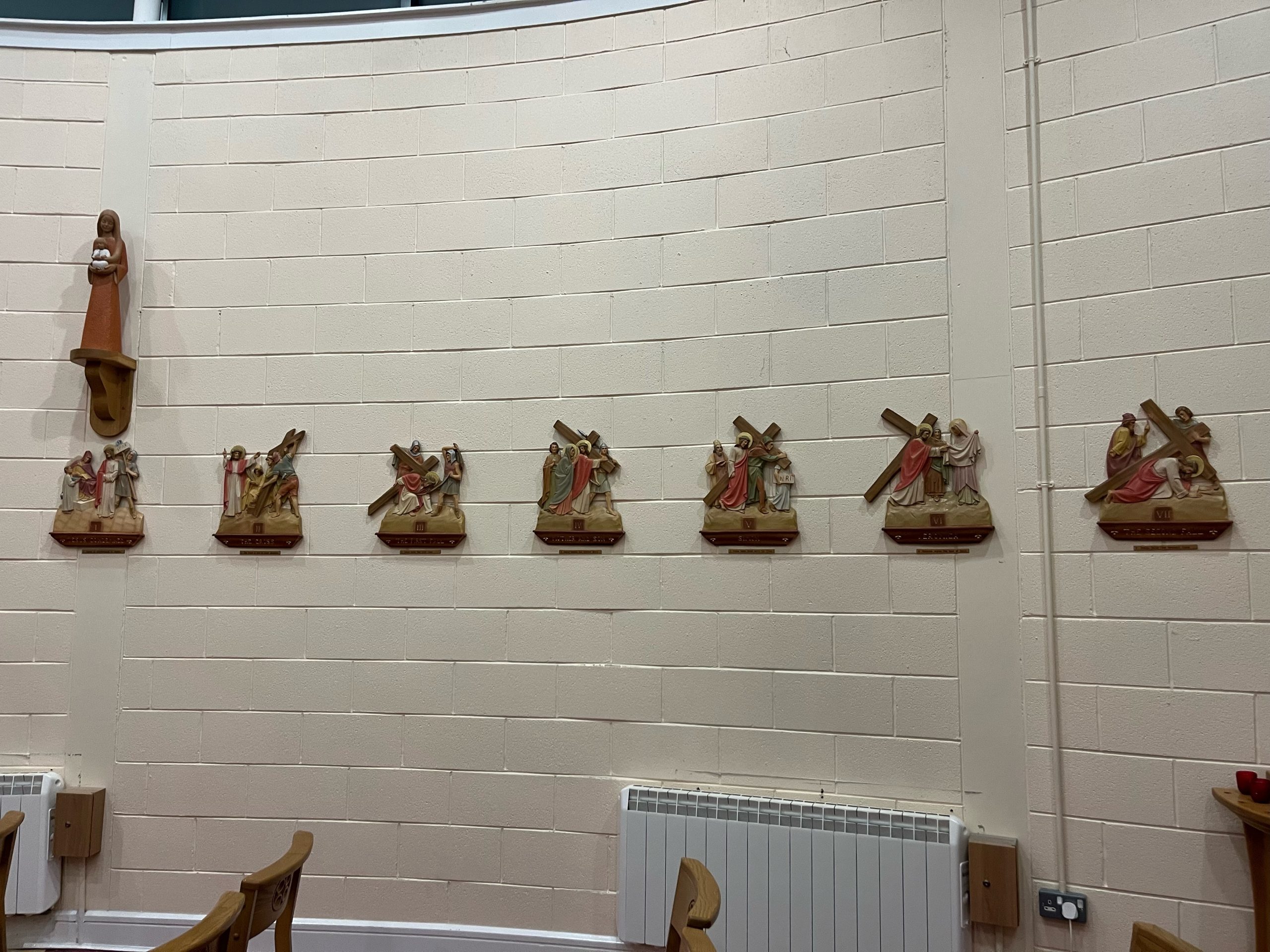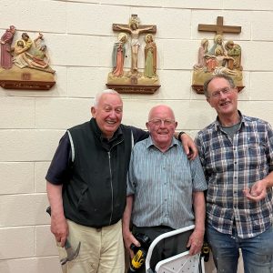 When the Airport Oratory closed its doors for the final time, the beautiful Stations of the Cross that were on the walls needed to find a new home. They are now displayed in the Adoration Chapel. Please drop by to spend some time with the Lord in adoration and pray the stations in your own time. A huge thanks to the three wise men; TJ, Eugene and Jimmy for the long hours spent putting the stations in place.